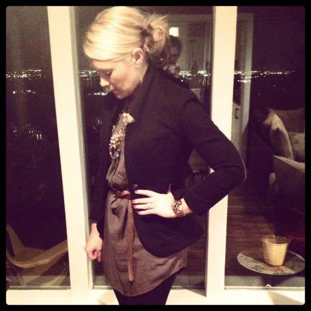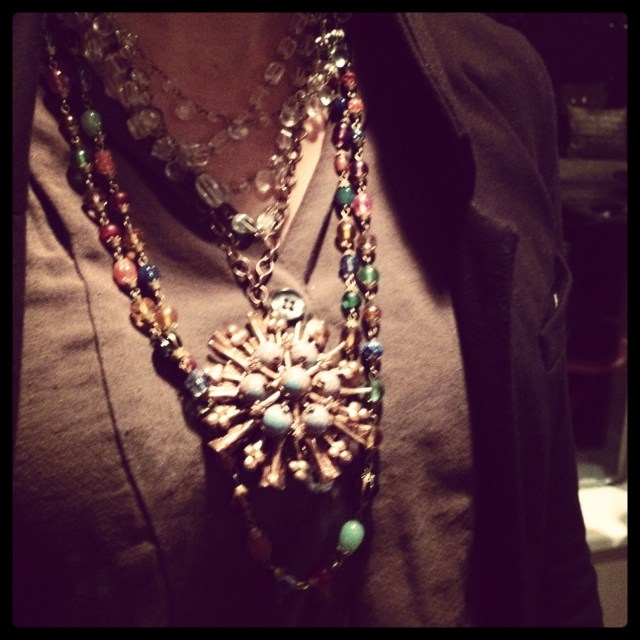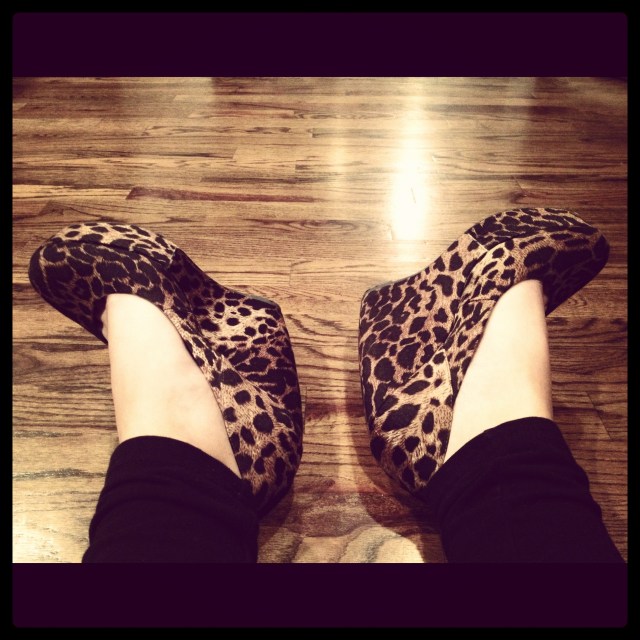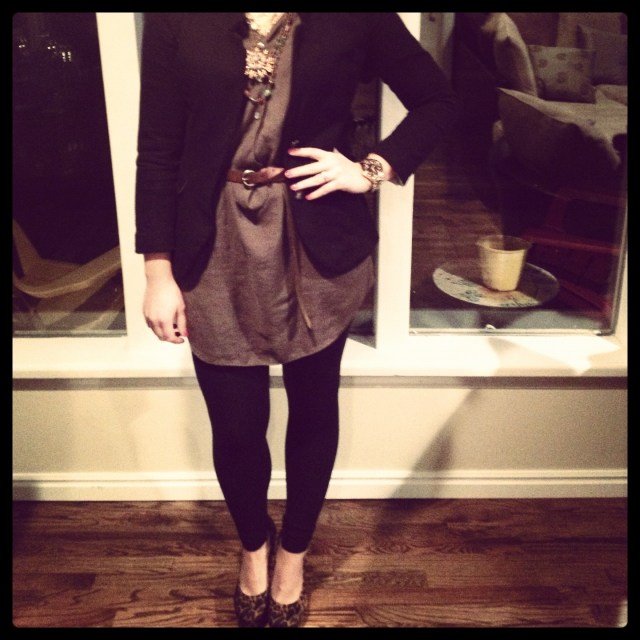 Let me tell you, it has been one heck of a week. It might be only Wednesday, but I have already logged close to 40 hours at the office and might even be going a little cross-eyed from staring at my computer for hours on end. Super early mornings and absurdly late nights have made me a bit somber the last couple of days, so when I got dressed (in the dark!) this morning, I was drawn to a more earthy ensemble complete with leopard wedges, suede elbow patches on a comfy jersey blazer, and some pretty vintage jewelry courtesy of my beloved Grandma.