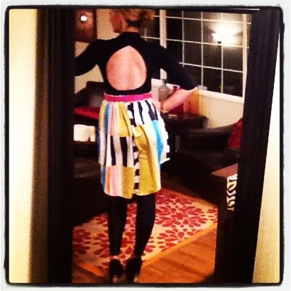And then one day, when I was working in the new Macy’s store that we are opening (THIS WEEK!!!!), I overheard two sales associates talking about “mullet” skirts. It took me a minute to realize what a mullet skirt was and then of course I realized they were talking about hi-low skirts. And in that moment, I knew I had to have one. I mean, really? A skirt named after the raddest hair style known to man kind? Who wouldn’t want one???