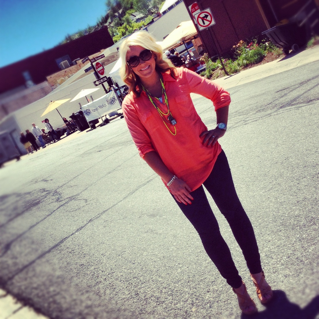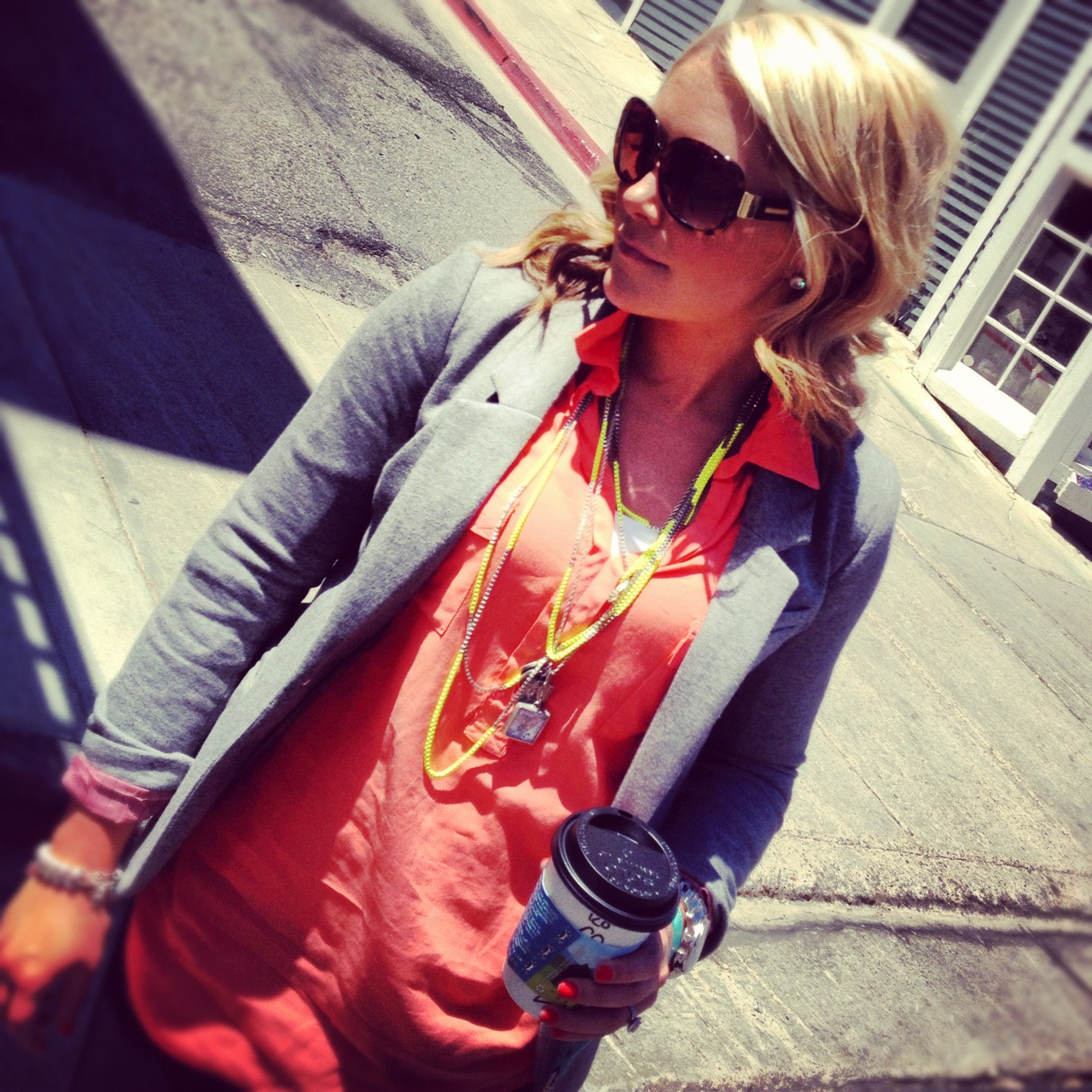However, we had a cold snap last weekend, so when I saw that the weather in PC was only 48 degrees, I was at a loss as to what to wear!  I already put away all of my jackets and boots for the season, so while I had the brilliant idea of substituting one of my heavier blazers for a coat, it was my little tootsies were going to have to brave the cold.   And brave it they did.  🙂