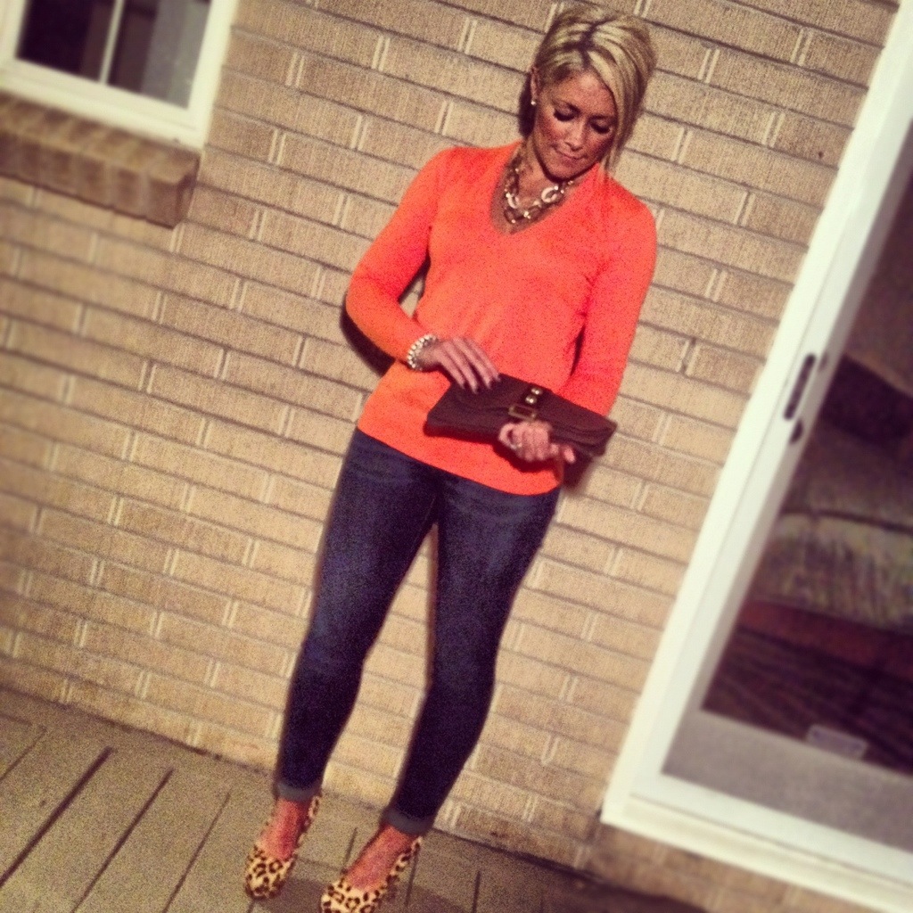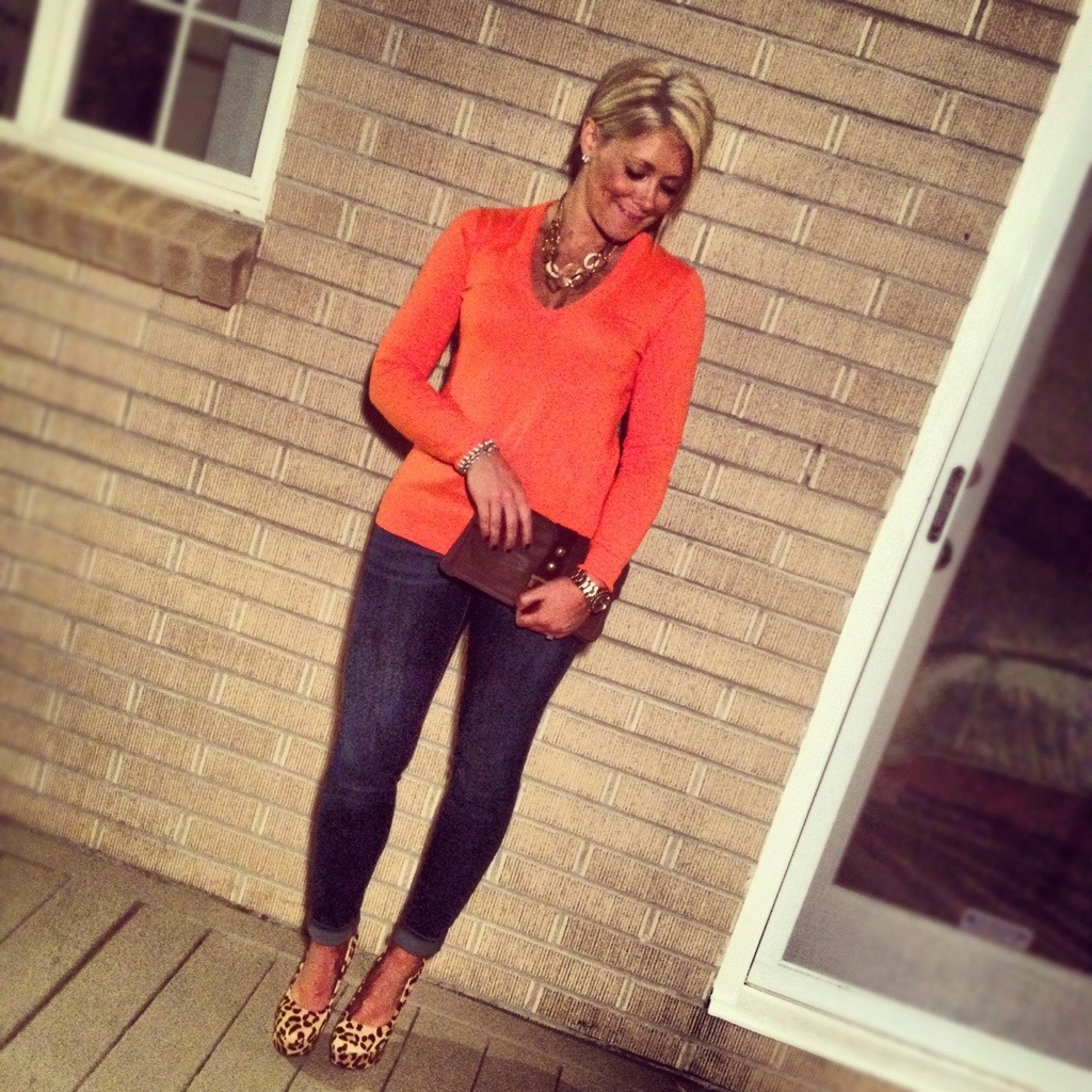 I love all things fall, and I especially love all things pumpkin. In fact, I finally caved and had my first pumpkin spice latte of the season last week, which always signifies the “official” start of fall for me. And while it’s still too warm for cozy sweaters and boots, it is just cool enough in the evenings that lightweight sweaters and pumps will suffice. So when I was recently perusing my closet for something to wear, I couldn’t help but to put the below outfit together in honor of my declaration of the beginning of fall…