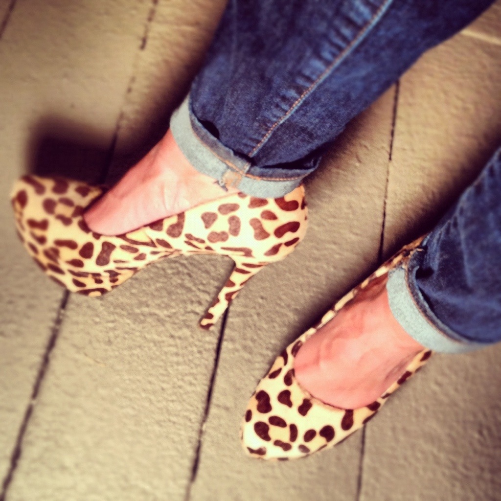 So while a colored blazer should be at the top of your fall wish list, an embellished pair of pumps or flats should also be pretty darn close to the top.  There are so many fun shoes out there this season from fun animal prints, to  jewel encrusted detailing, to spikes (my favorite!),  to florlas-lots, and lots to choose from.  So just be sure and choose something!  An interesting pair of shoes is not only fun, but also a great way to add interest to an old or simple outfit!!