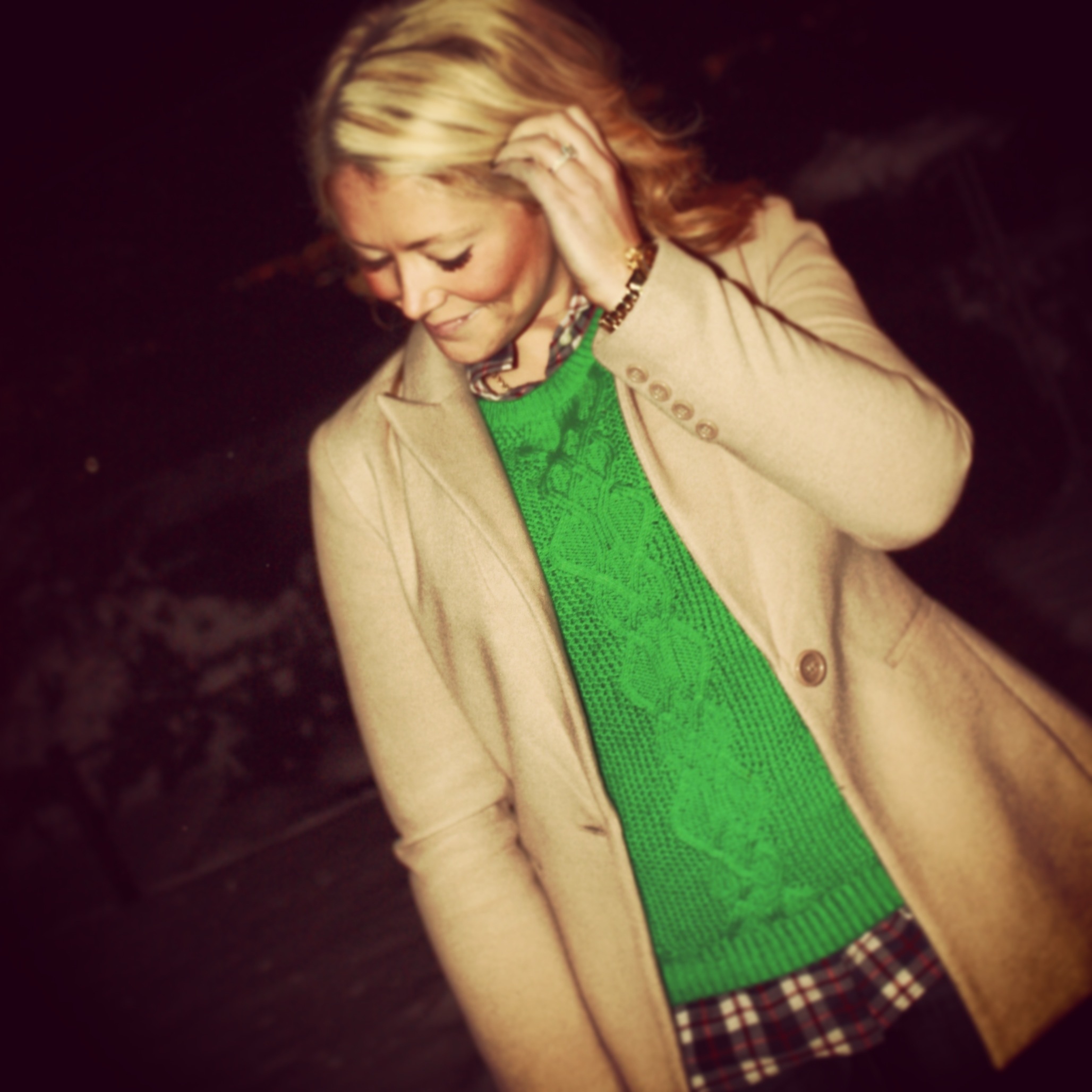 I love that this outfit is festive without being too overdone. I think it’s perfectly acceptable (and even encouraged!) to wear red and green during the Christmas season. My only word of advice is not to pair the colors too literally. My green sweater is more of a spring green than a Christmas green, and my red button down has a lot of navy in it, balancing the two. So while it’s still a red and green combo, it doesn’t feel forced or make me look like a Christmas tree.