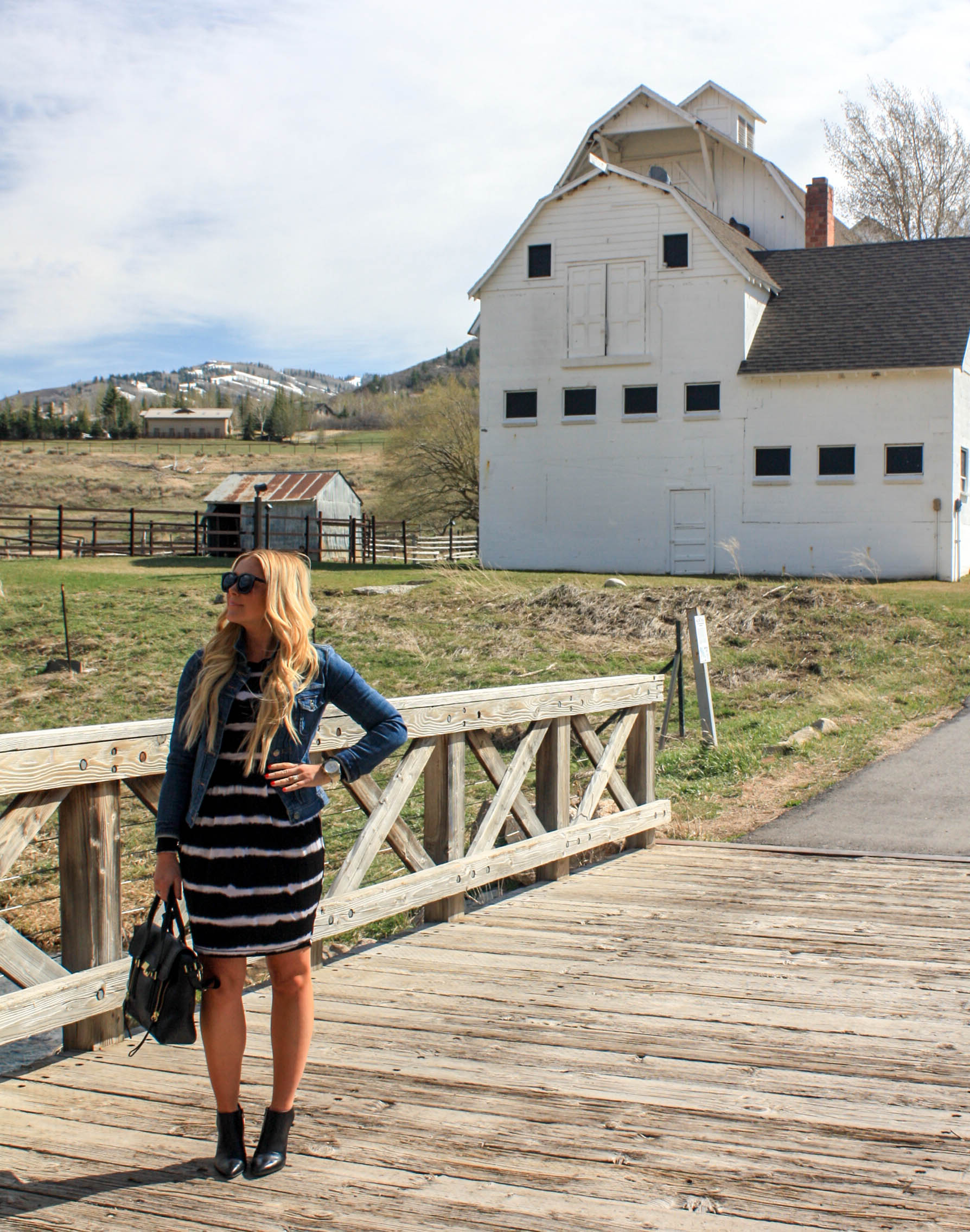 Two of my favorite things?  A comfy knit dress, and this gorgeous white barn up in Park City!!!  I have been consciously trying to incorporate long sleeve casual dresses into my wardrobe this year.  Not only are they incredibly comfortable, but they are great for so many different occasions-especially when you want to be a little dressed up without being overdone.  They are a great alternative to jeans, and of course pair perfectly back to your favorite denim jacket!  Be sure to scroll to the bottom of the post to shop my favorites below…