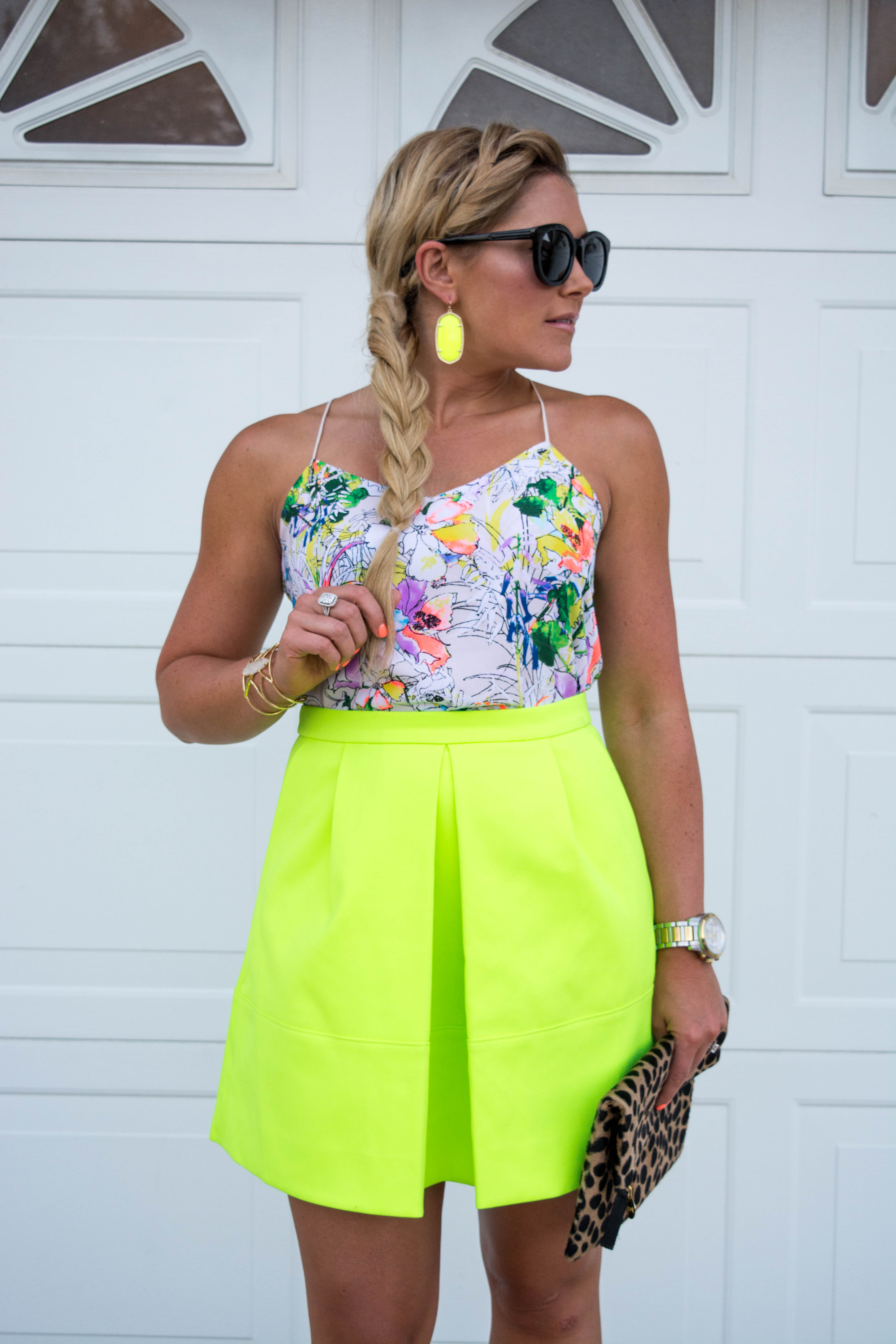 Tank: Express (these Barcelona camis are THE best!) | Skirt: JCrew (on major sale!), similar, similar (under $20!) | Earrings: Kendra Scott | Cuff: Stella & Dot | Sunnies: Karen Walker | Clutch: Clare Vivier | Heels: Marc Fisher (old), LOVE these