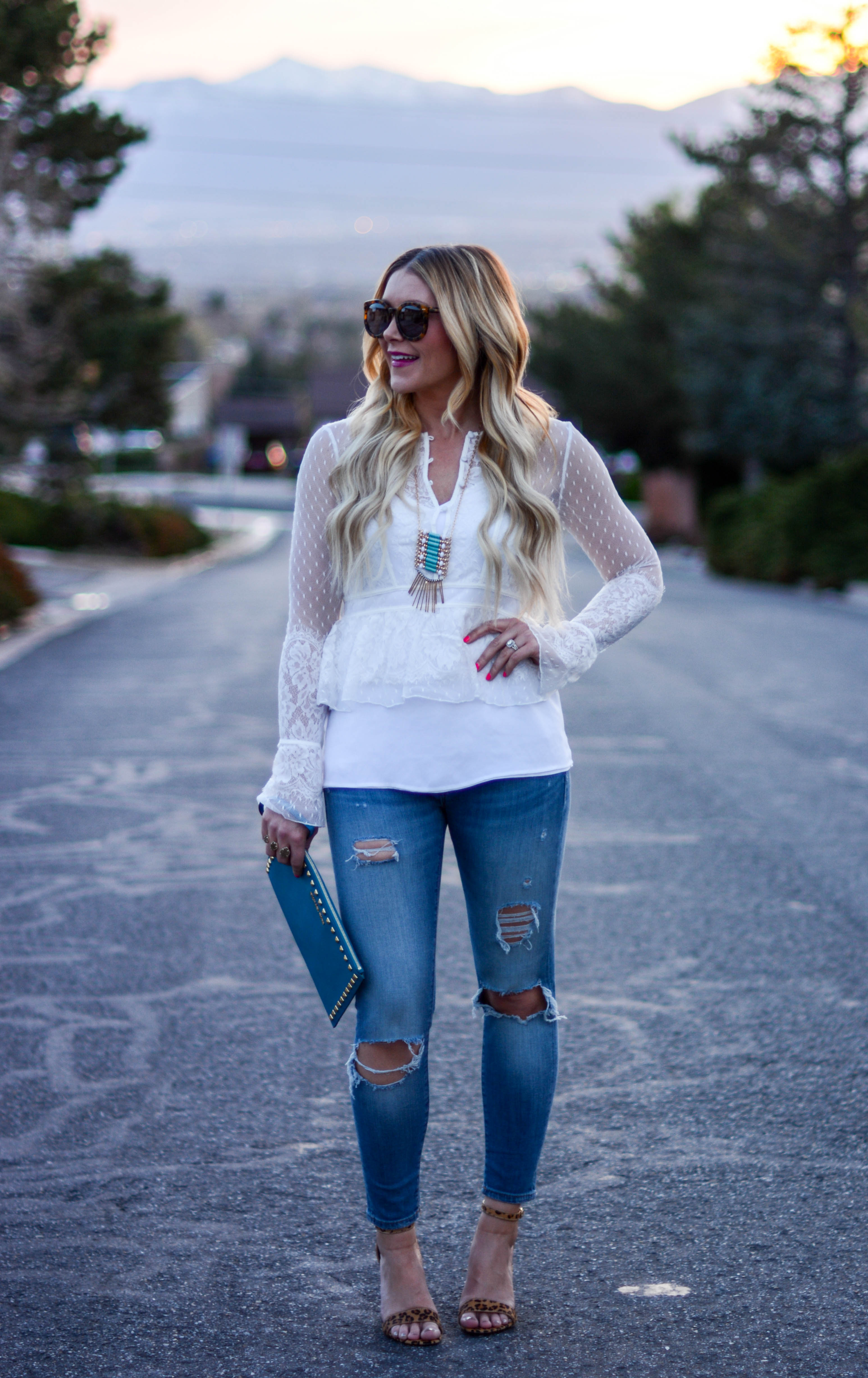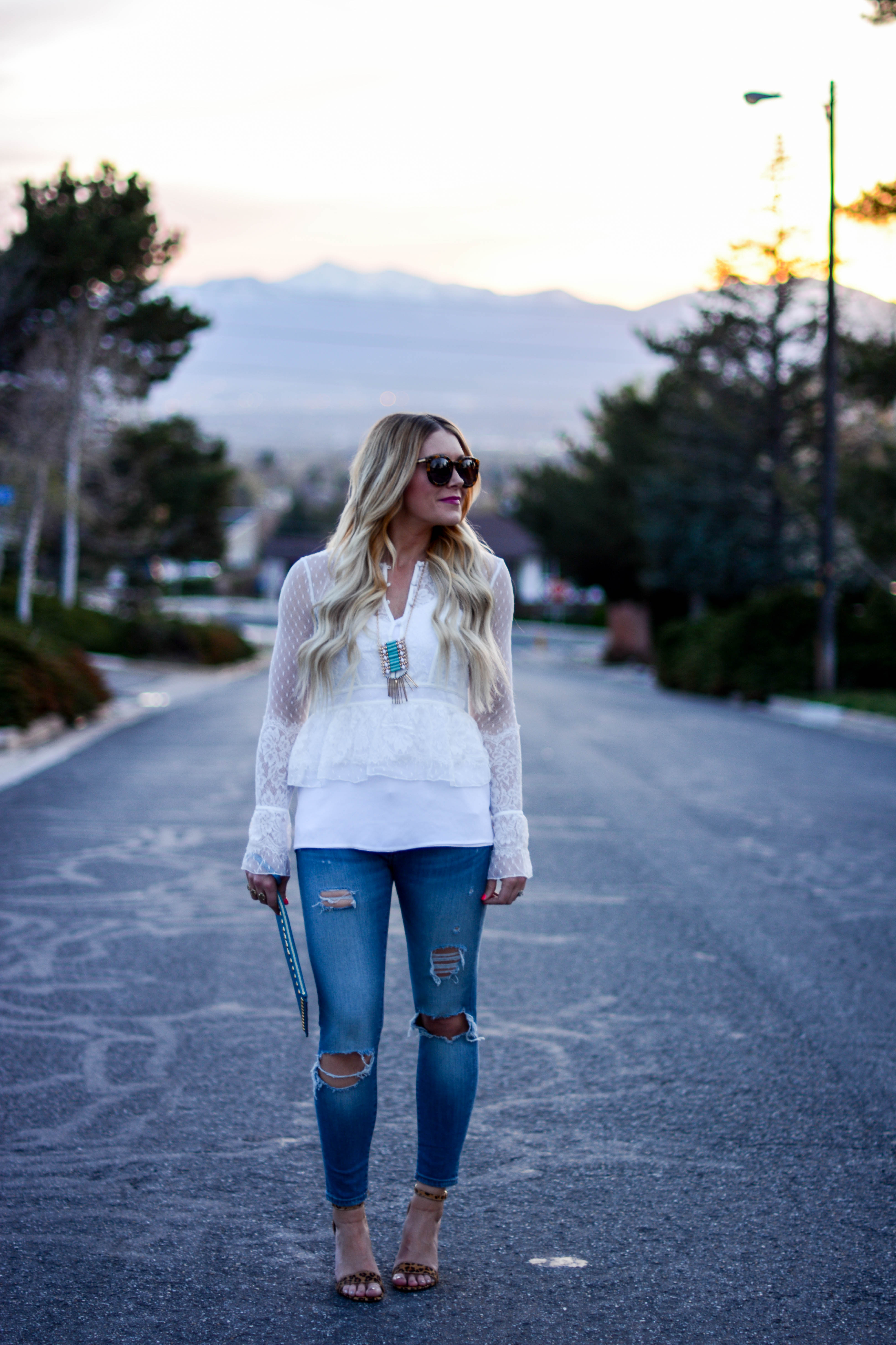 And that’s what led me to these jeans. I saw one of my favorite bloggers, Emily, from The Sweetest Thing, wearing this specific pair and I thought they were so cute (she tends to wear the same brands of denim that I do), that I decided to give them a try. And I am SO glad that I did! Not only are they cute, comfy, and fit true to size, but the best part? They are on sale for less than $90! So if you are looking for new denim for the spring season, I would highly recommend these!