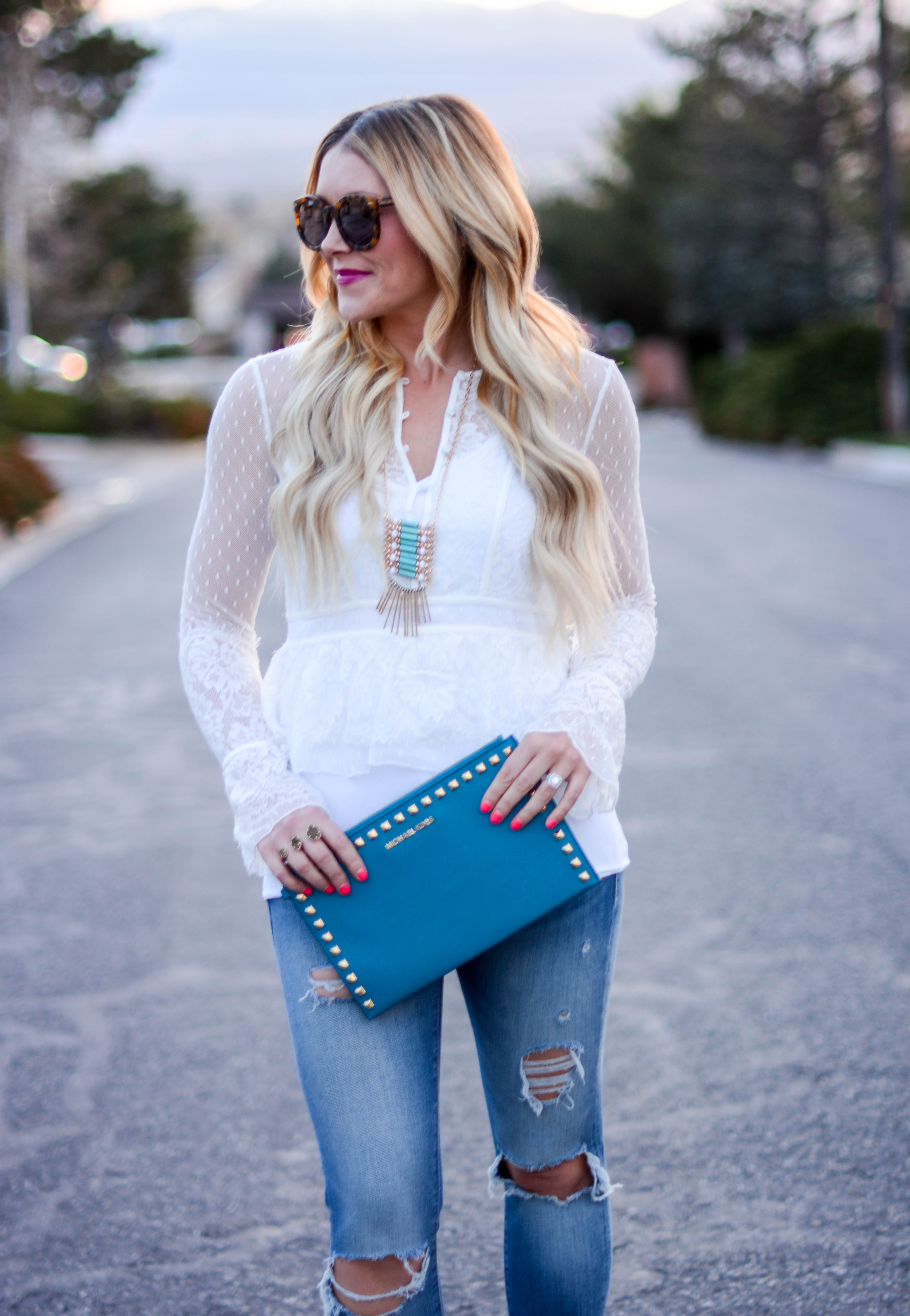 LOVE this outfit!!! The jeans, shirt, clutch…everything!! xoxo, Alyson