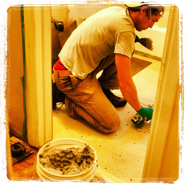 Justin getting ready for his first floor tiling project. Let’s just say he’s an old pro now.