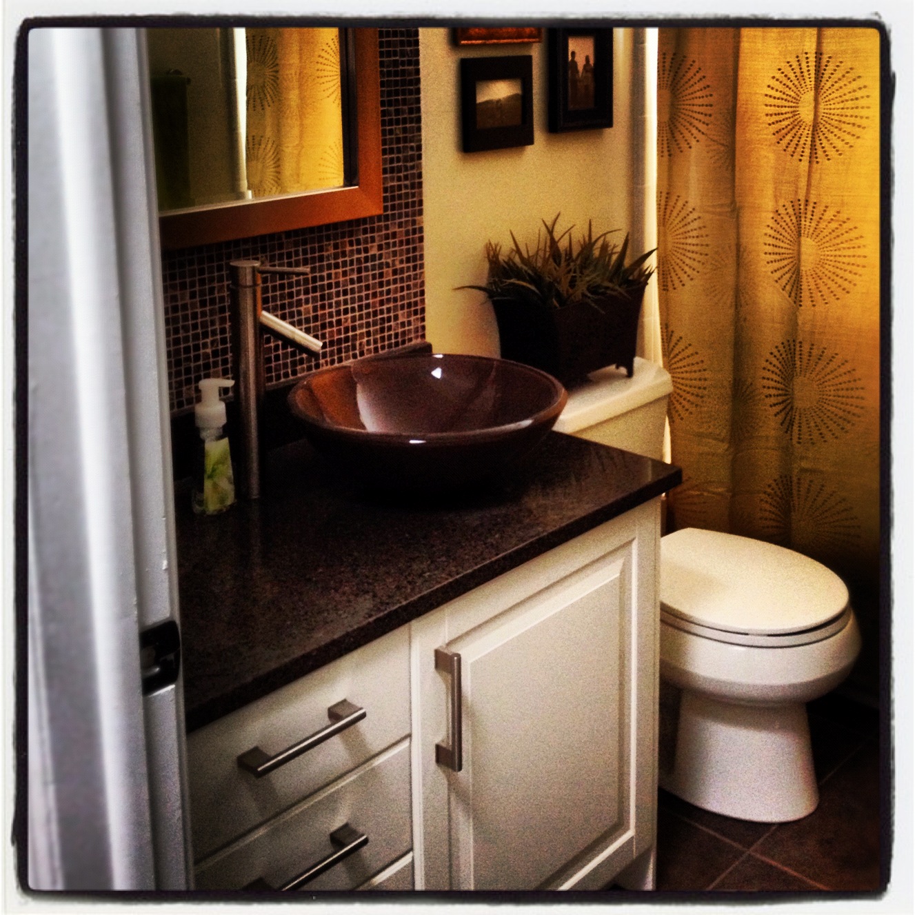 So there you have it, the first of three bathroom renovations. I can’t tell you how happy we are with the way it turned out (and that I got my vessel sink, of course!). Stay tuned for more posts and stories about our incredible home transformation (can you believe that I set that toilet????? Me neither). I have gotten so used to how the house looks now, it’s fun for me to take little stroll down memory lane and write these posts and remember how things used to look-before the sledge hammers came out. The changes we have made are drastic, and I am pretty darn proud of the Dolls for tackling such a huge project. Now let’s hope we have the same luck with our current deck rebuild. Fingers crossed.