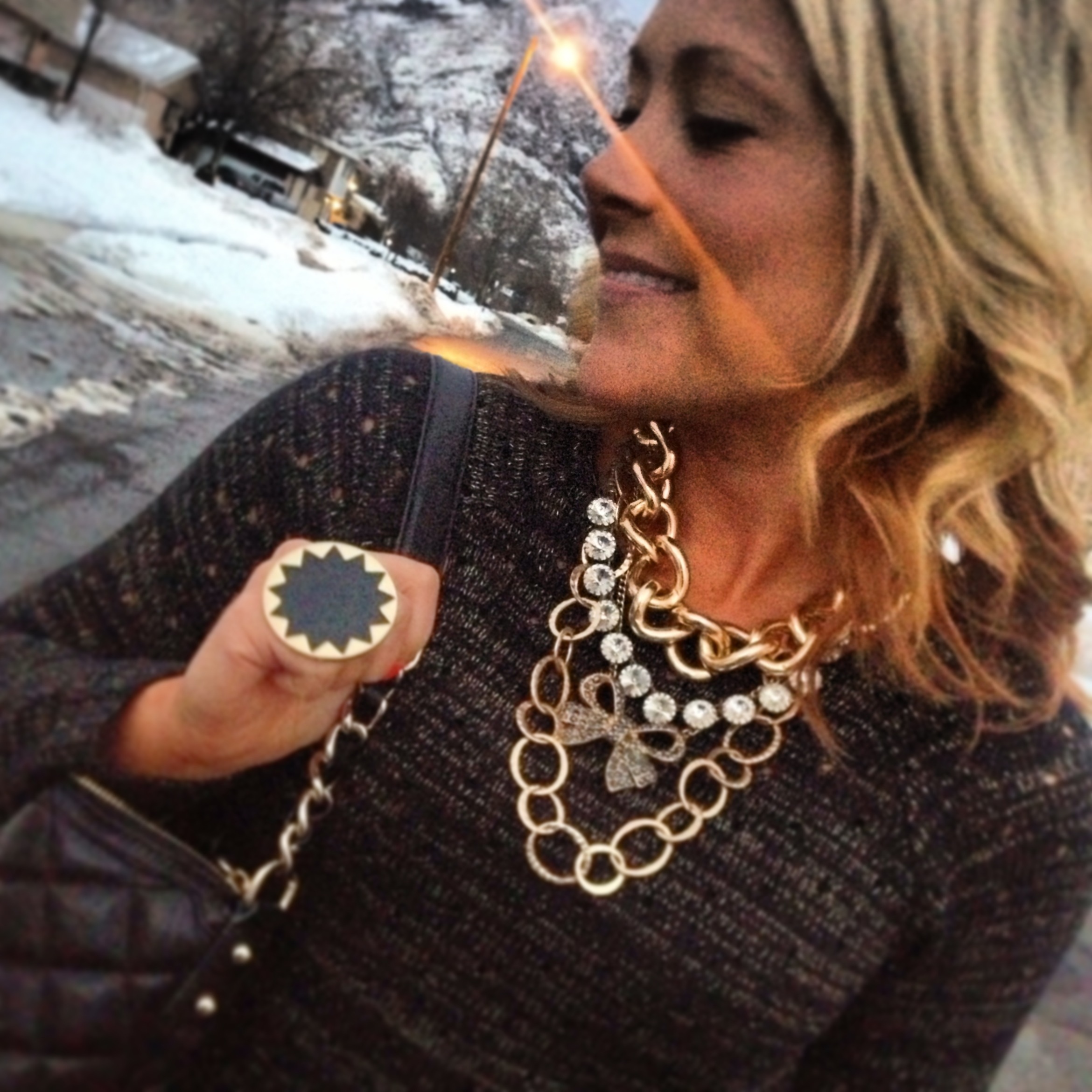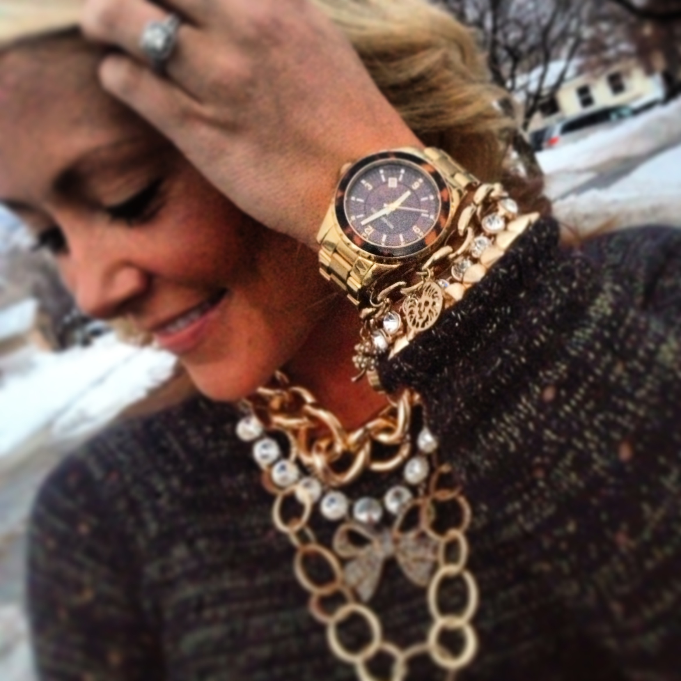 Crop Lace Top: Express (comes in a bunch of colors-I’m obsessed!) | Skirt: JCrew (on sale and comes in tons of colors-dying over the yellow version) | Cuff: Lucyk Brand | Charm Bracelets: Juicy Couture via TJMaxx, similar, Anne Klein | Ring: KiraKira | Watch: Michael Kors | Sunnies: Karen Walker | Clutch: Clare Vivier, flat version | Heels: Jessica Simpson (most comfortable heesl in my closet right now! LOVE them!)