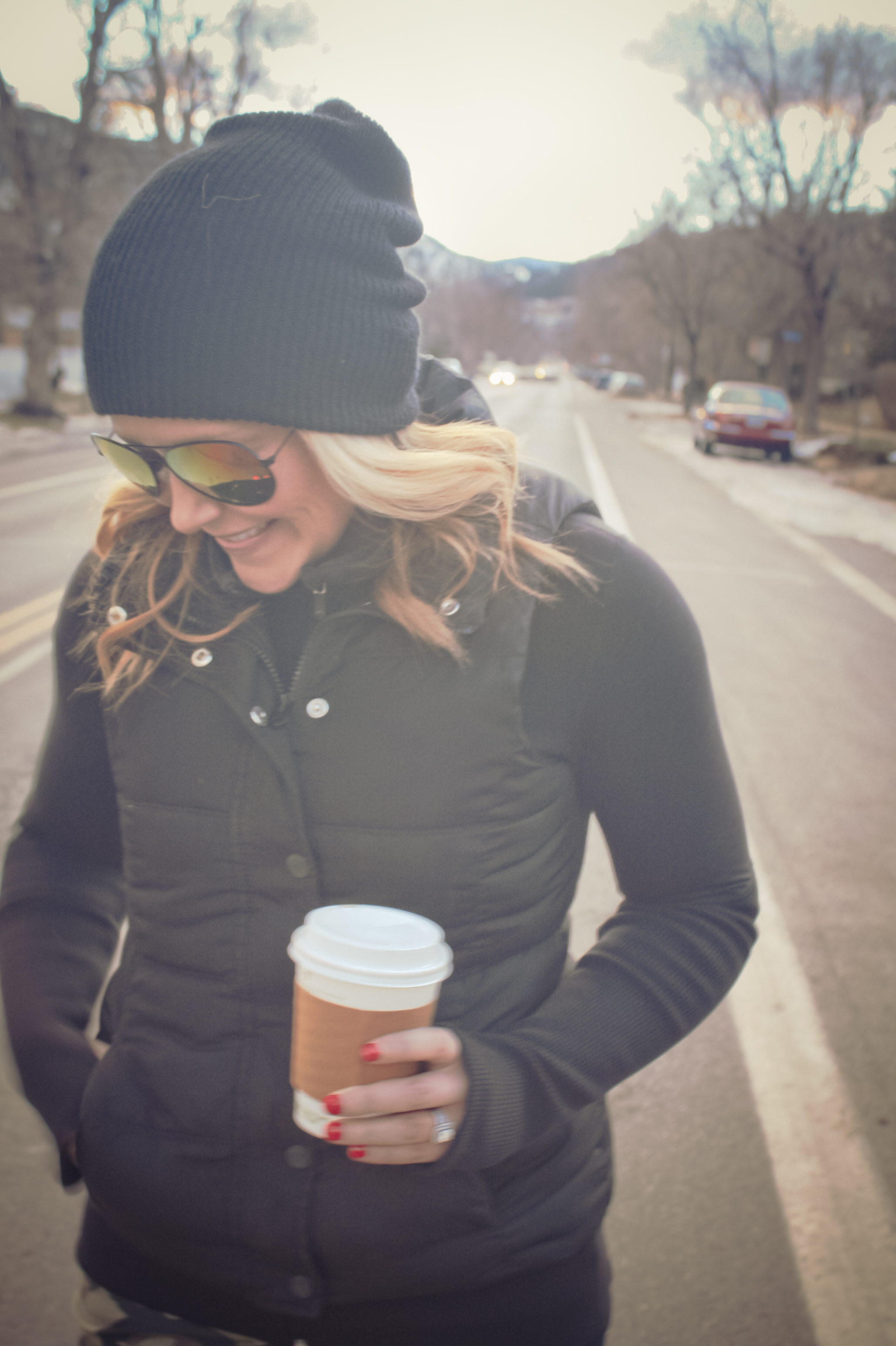 Sweater: JCrew (on sale!) | Skinnies: AG | Beanie: Free People (old), LOVE this and this (both on sale!) | Mittens: Target (on sale!) | Sunnies: Ray-ban | Mug: Starbucks | Bag: Tory Burch (this exact style is sold out), LOVE this similar pink Tory bag | Booties: INC (LOVE these-so comfy and they’re on sale!)