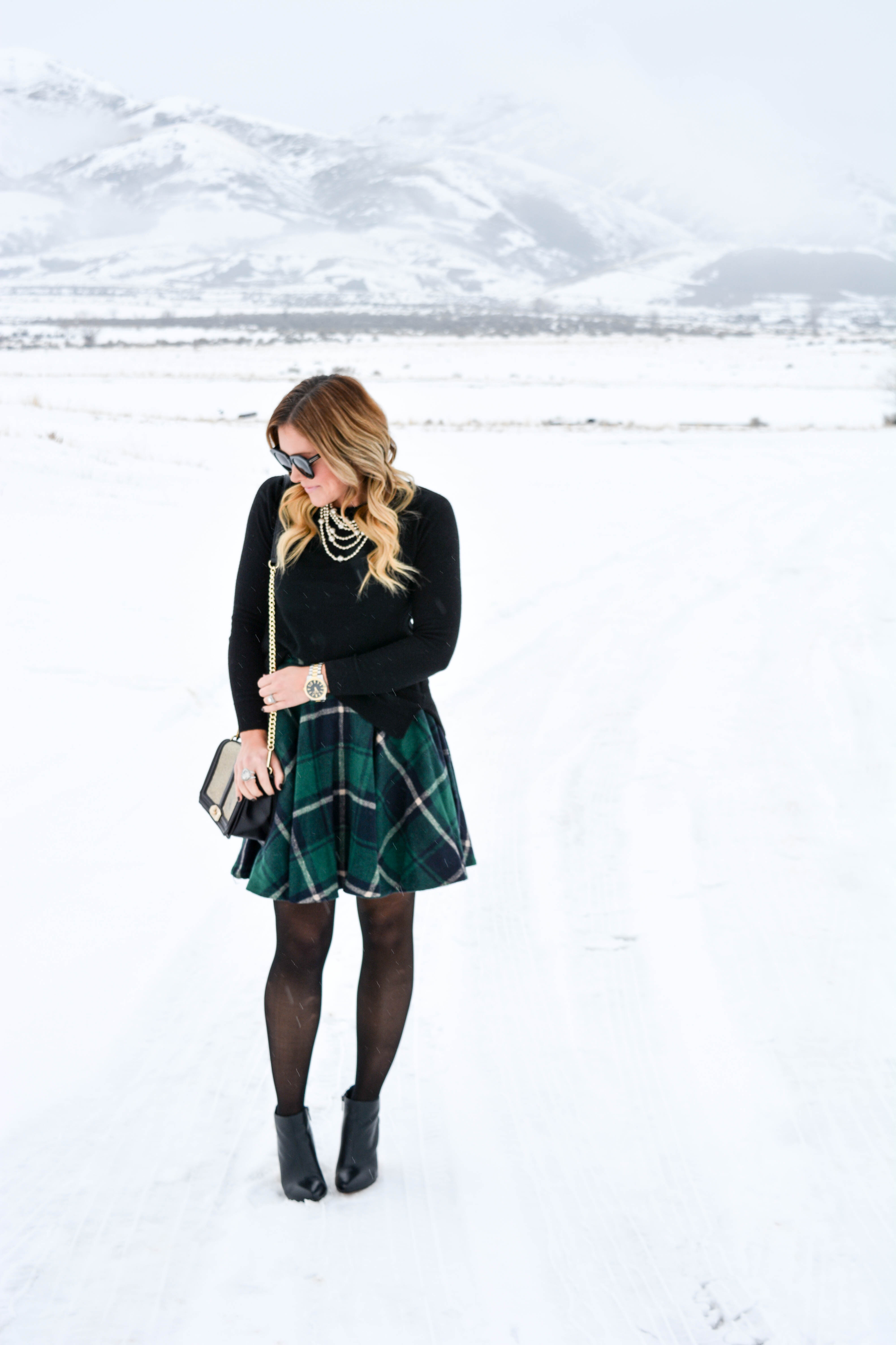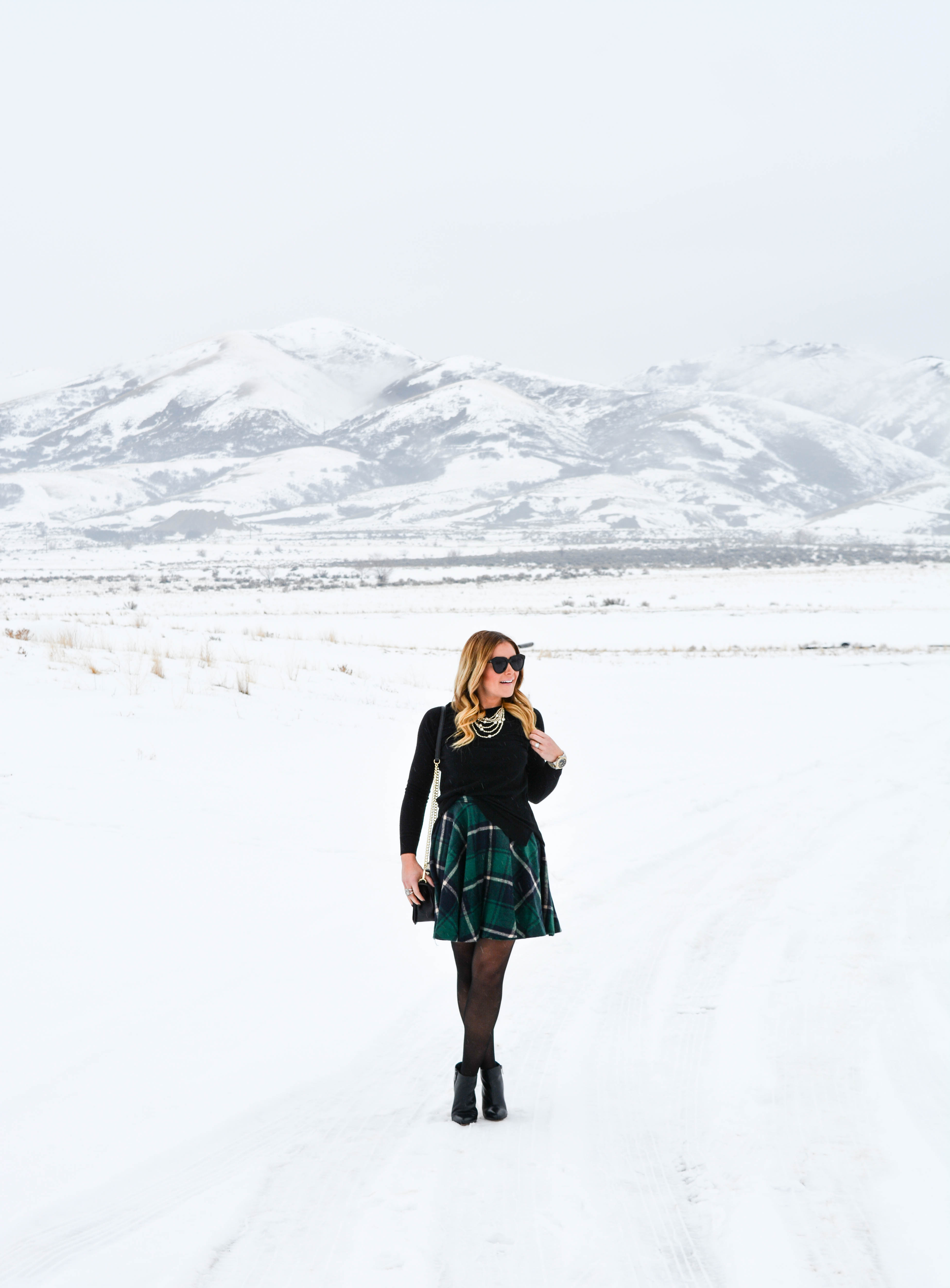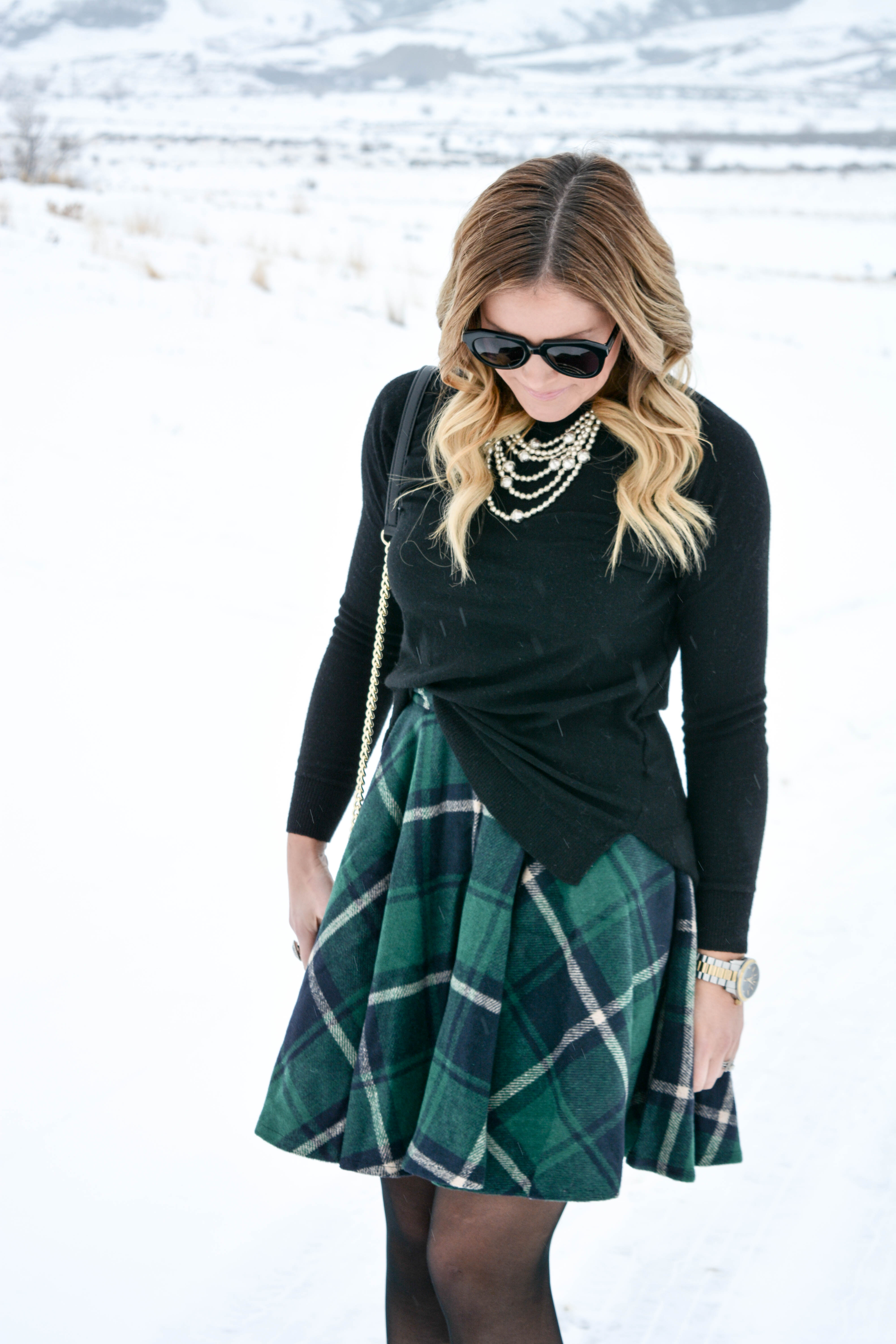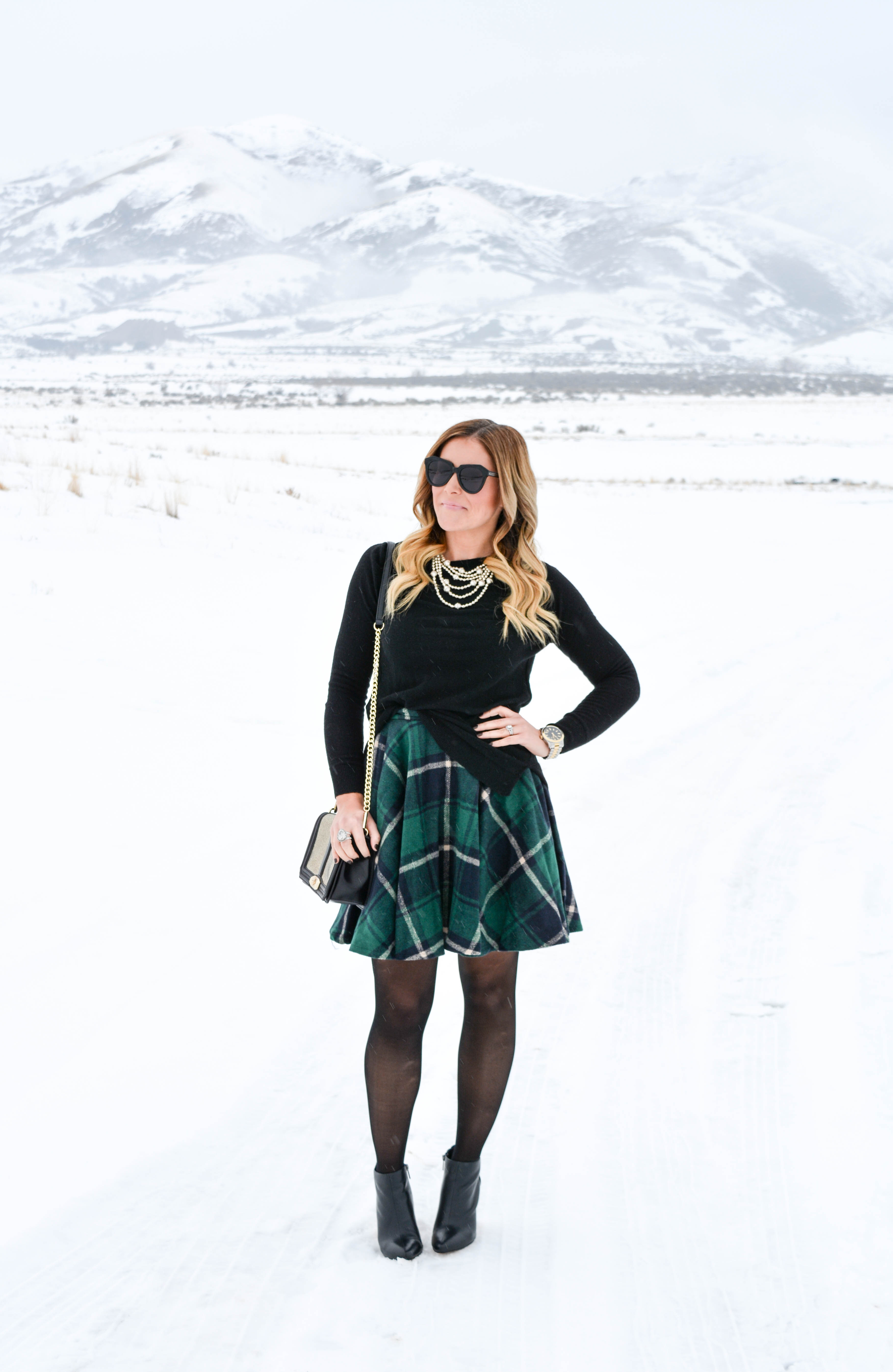 I love red and sparkles so much, sometimes I forget about wearing green during the holidays. So when I saw this choker top at Express, I knew it would be perfect back to my favorite black faux fur vest and studded booties. And not only does this look work perfectly for the holidays, it will work well beyond the month of December too.
