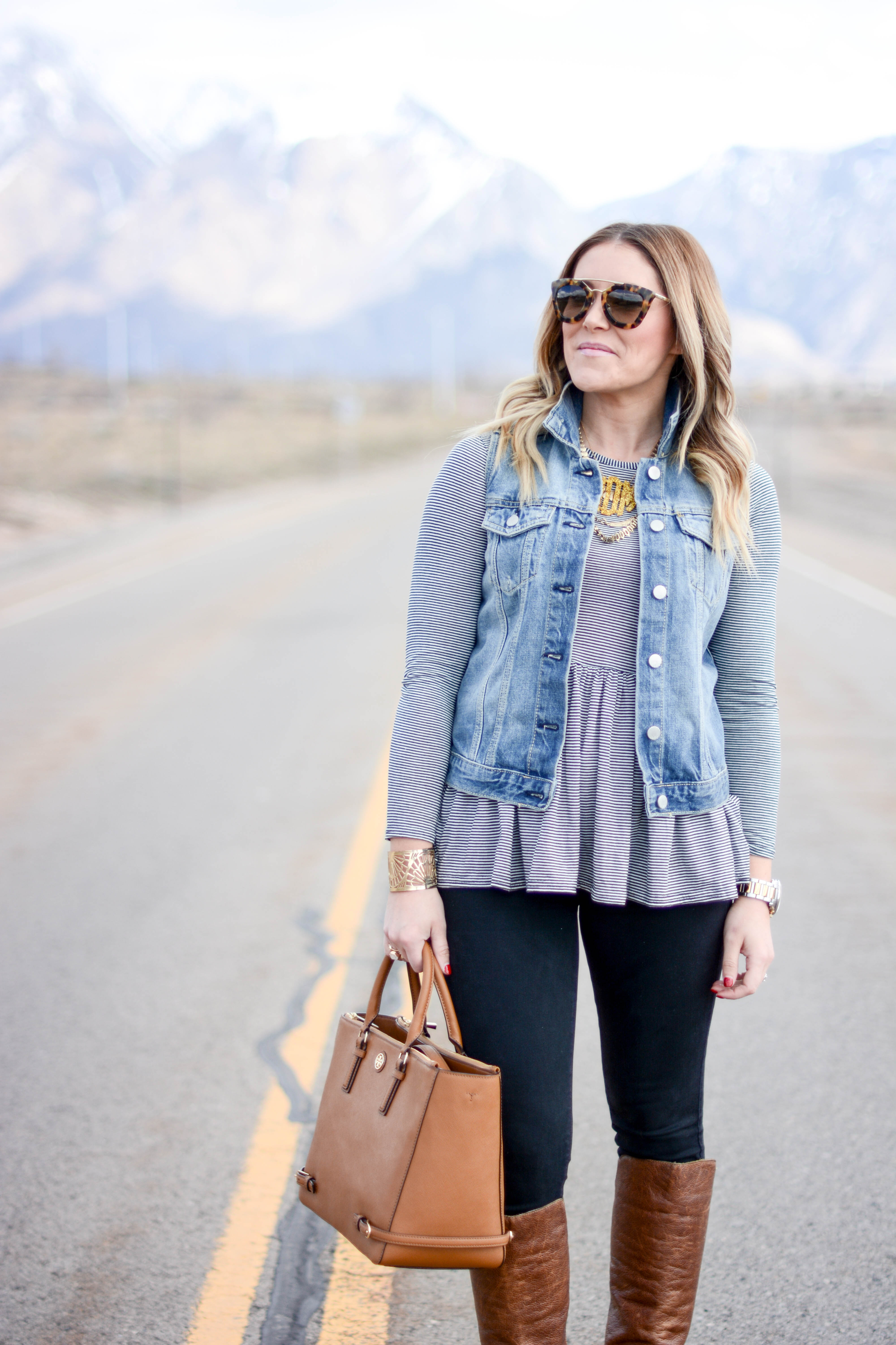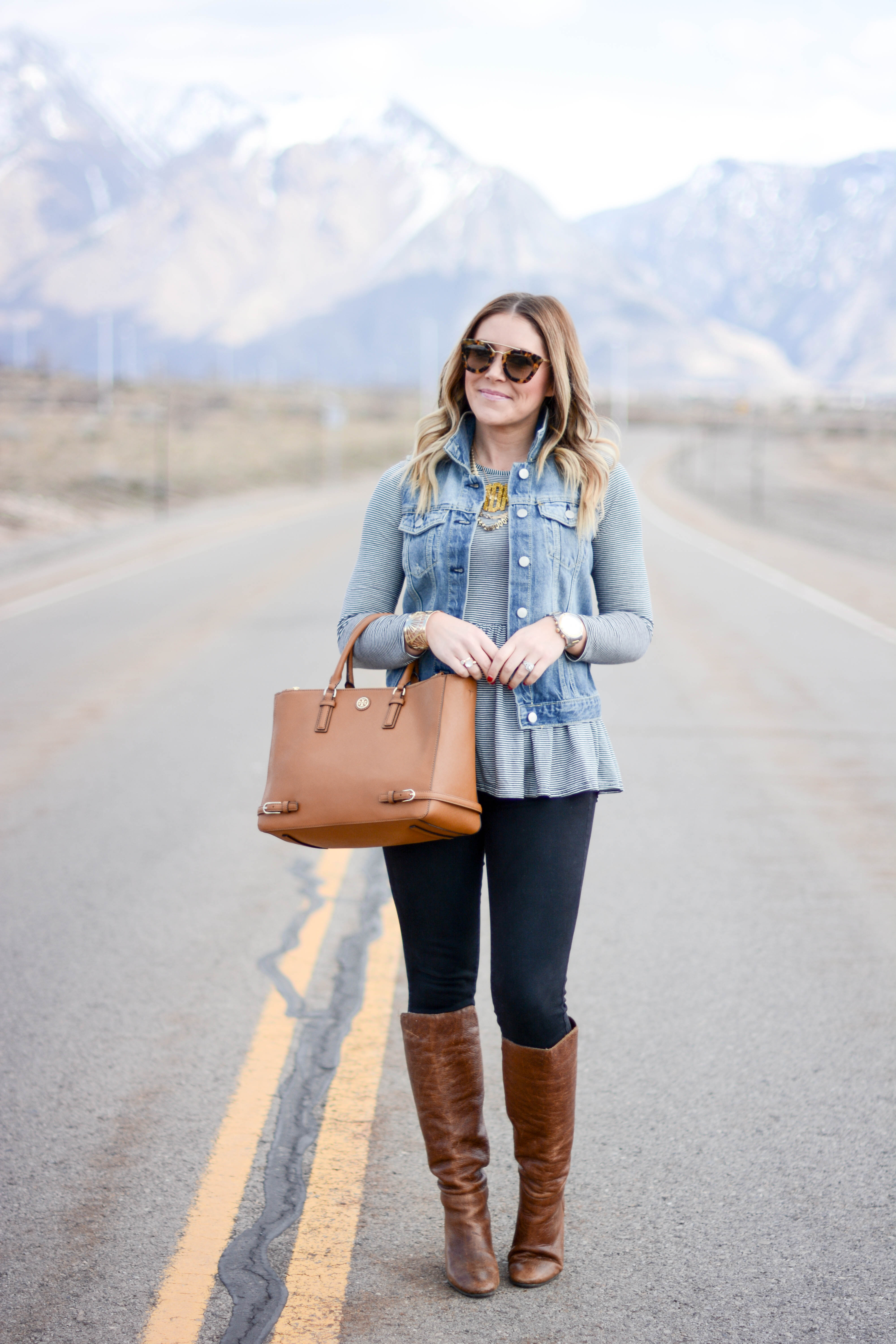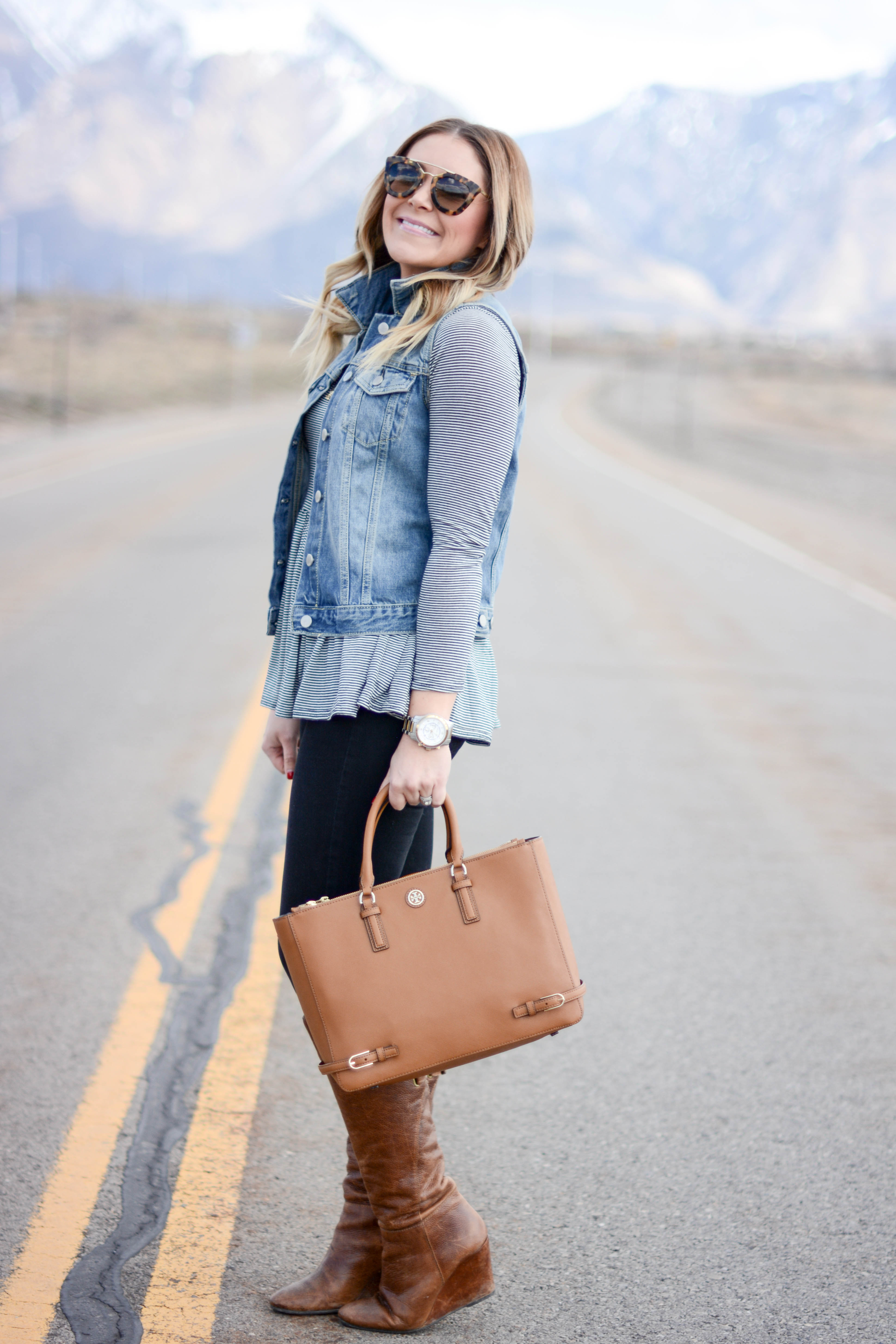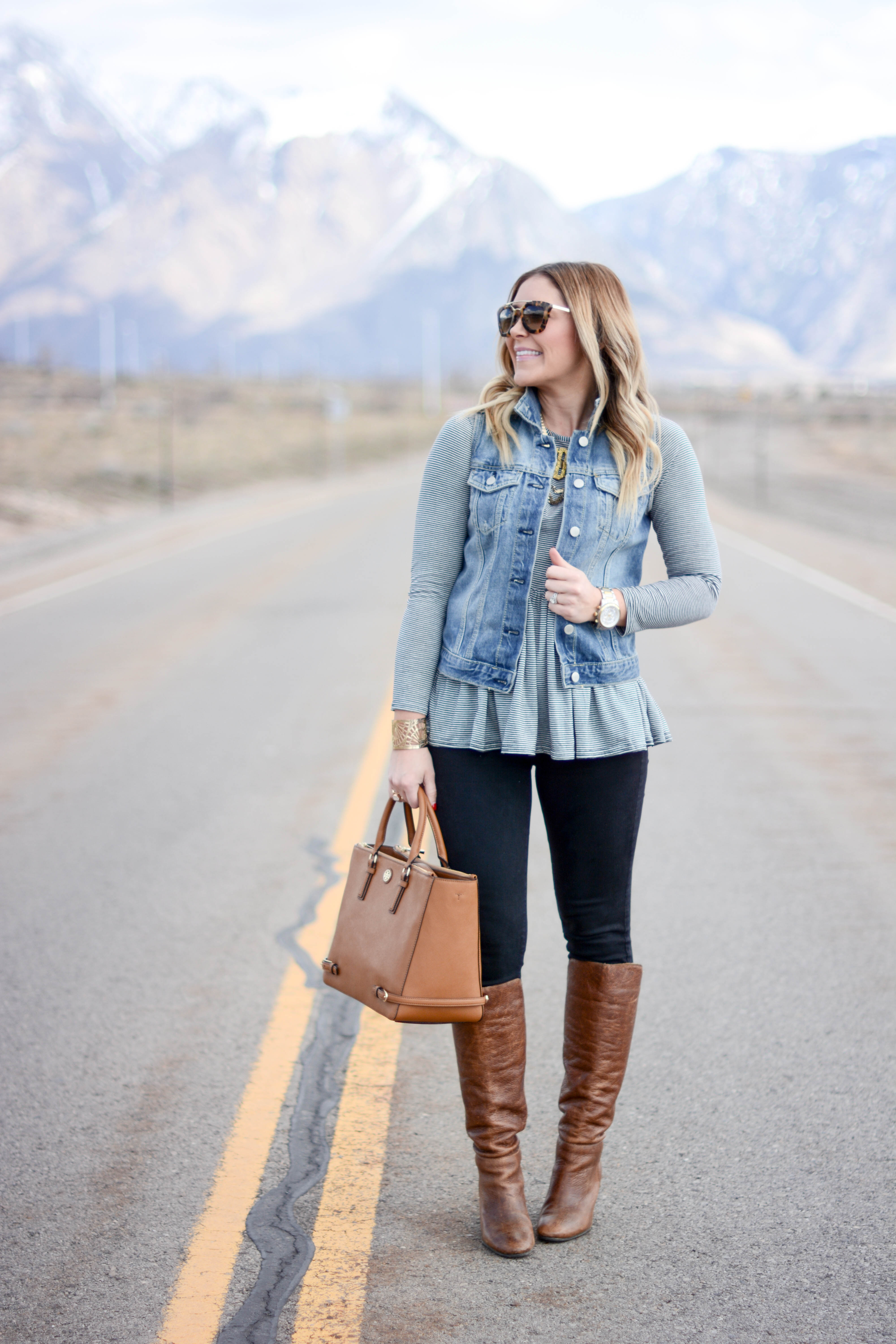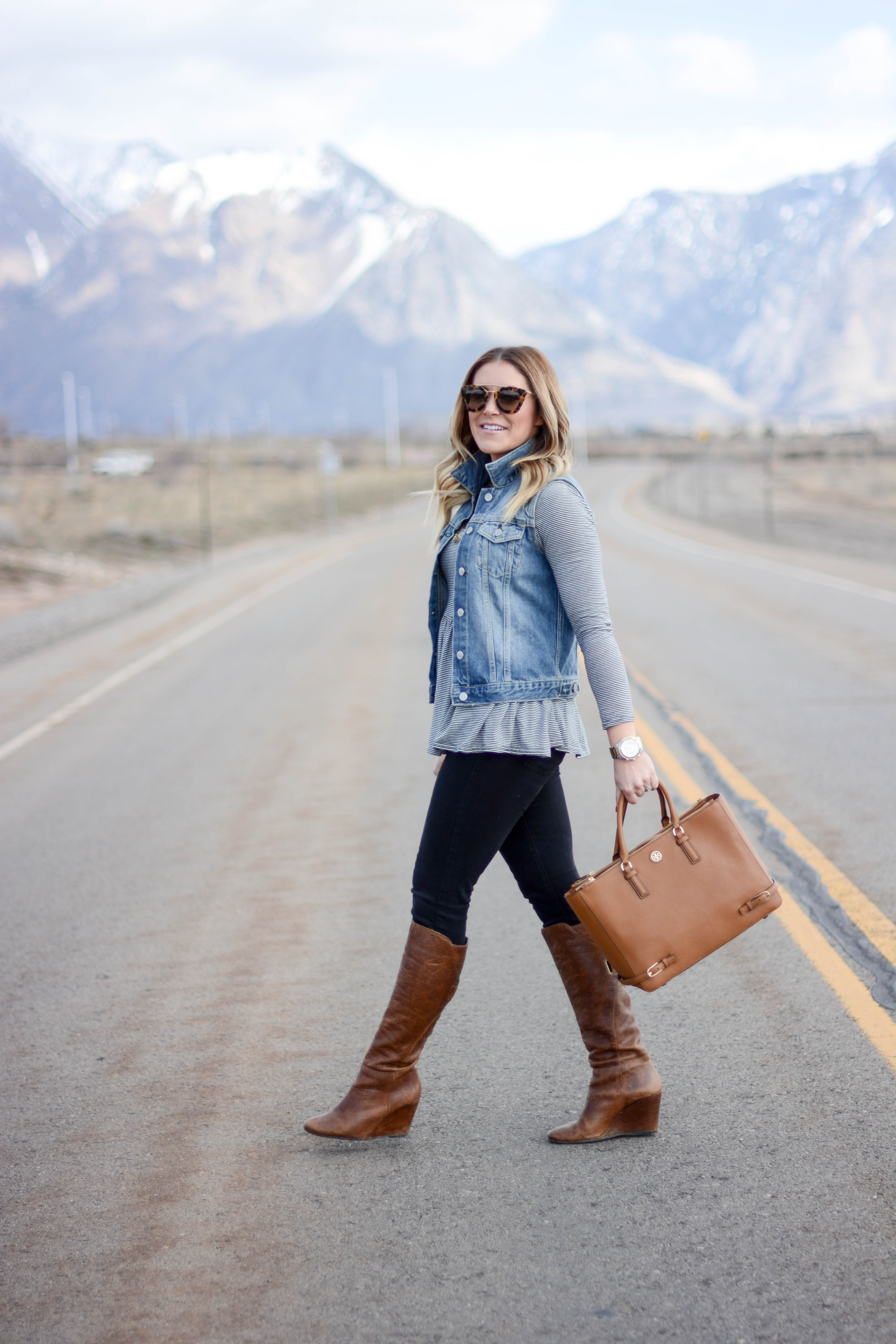 Another day, another vest. Or so seems to go my wardrobe rotation these days. But really, I just can’t help it. Vests are the perfect piece to throw on this time of year for a little extra layering. Plus, they add just the right amount of interest to an outfit to make you look extra put together. So even though I know I’ve told you guys a million times, I’ll say it again, every gal needs a great denim vest in her wardrobe!