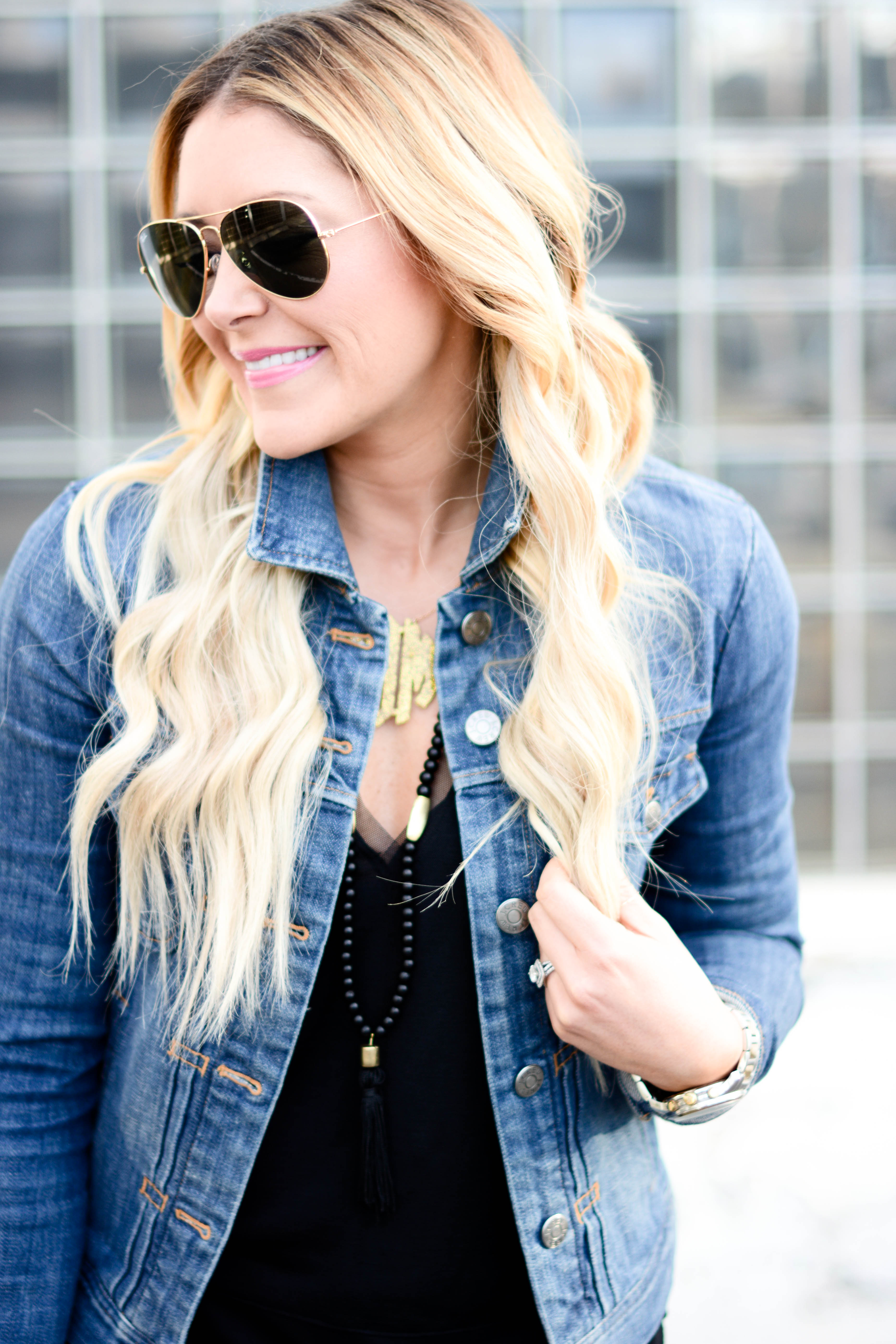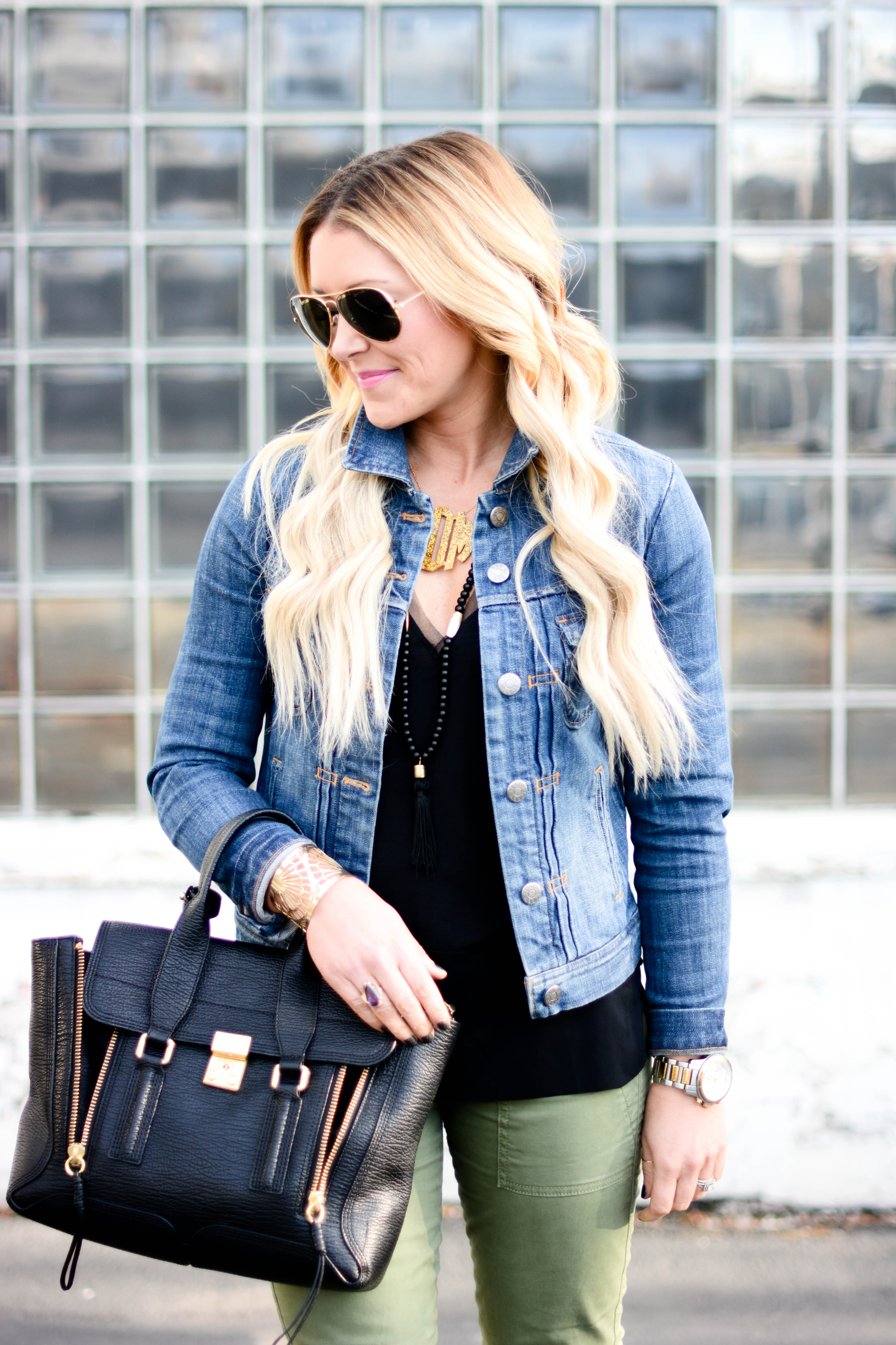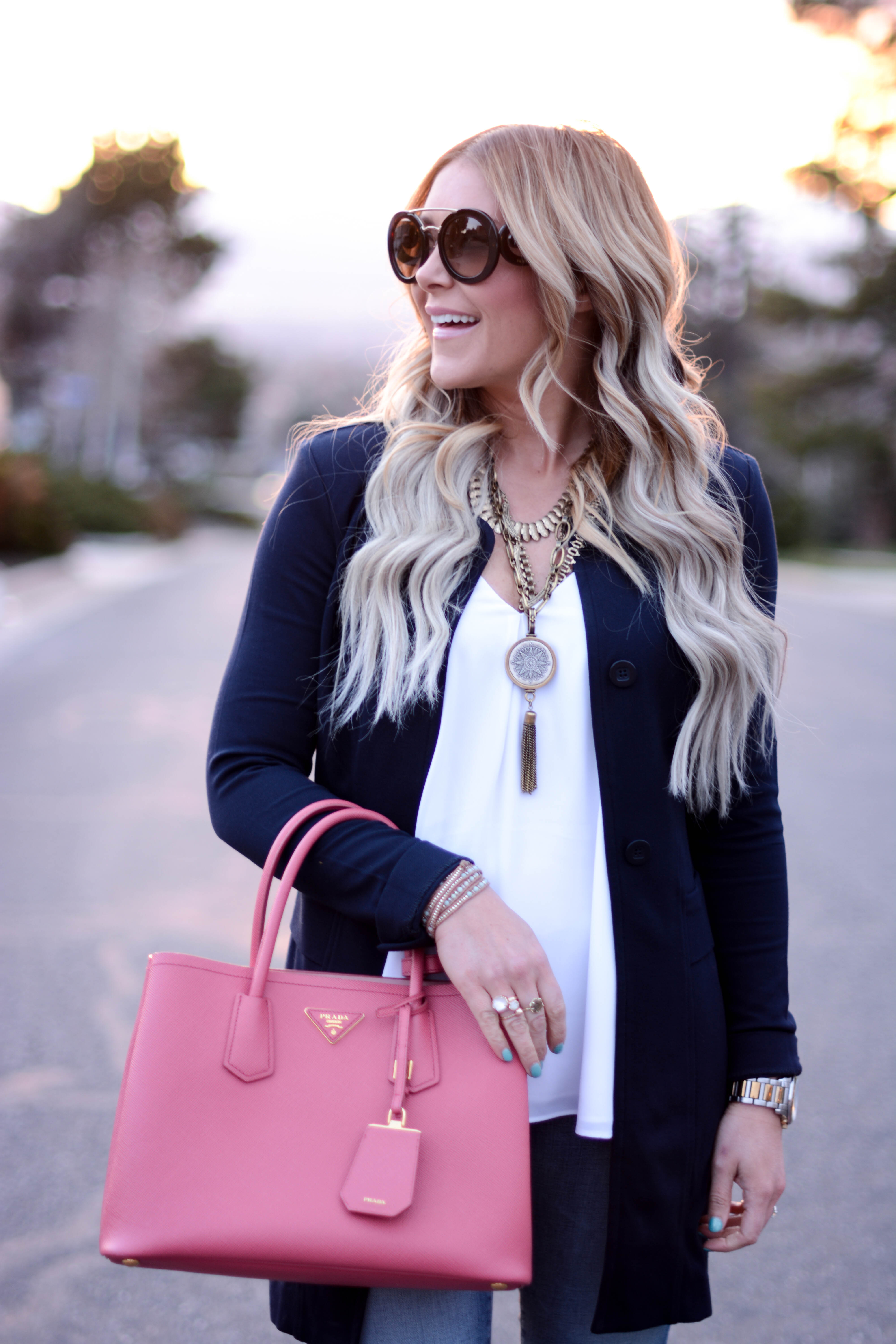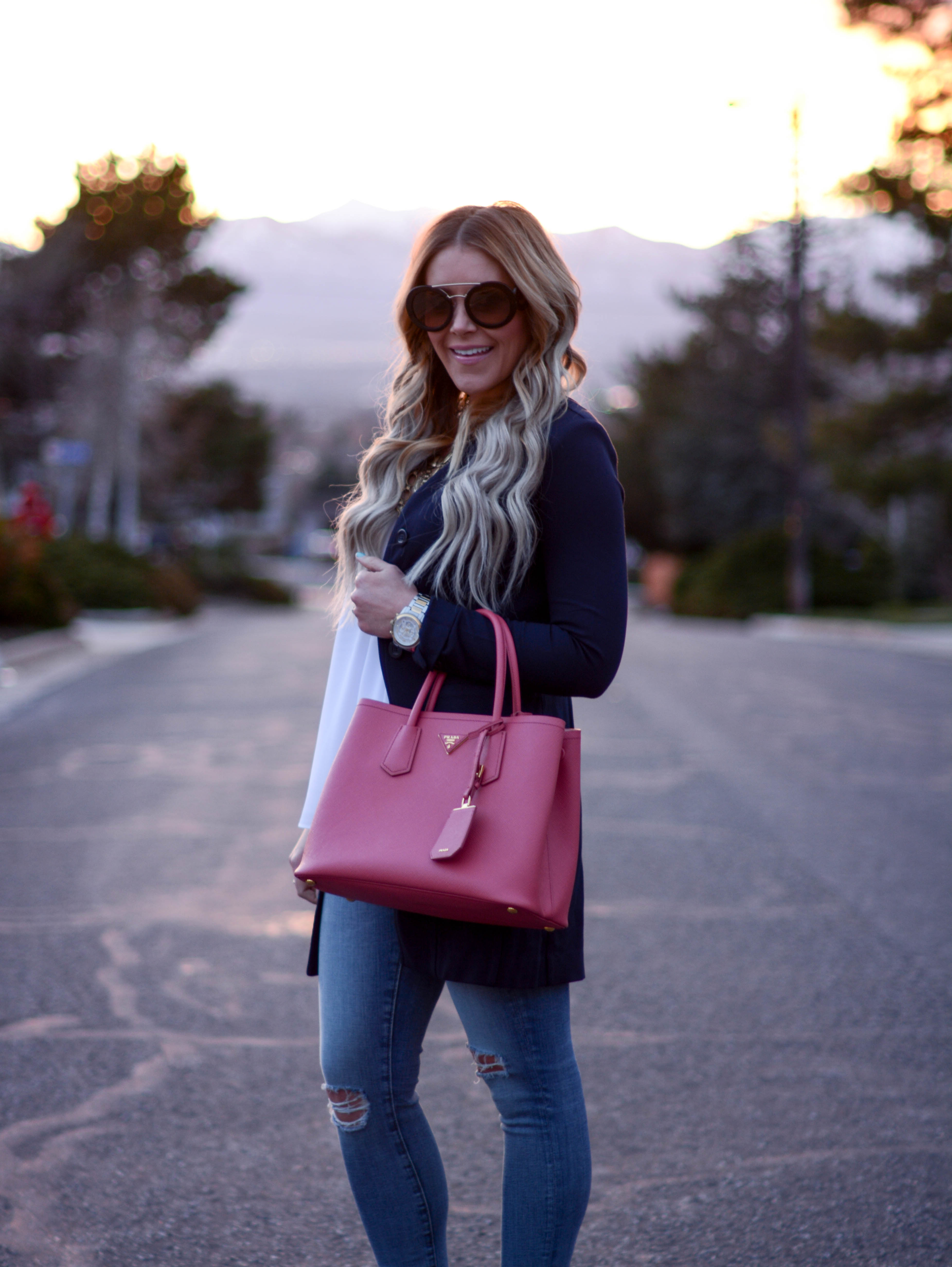 jacket (on sale!) | top (cabi c/o) | necklace | denim | sunglasses | bag | pumps