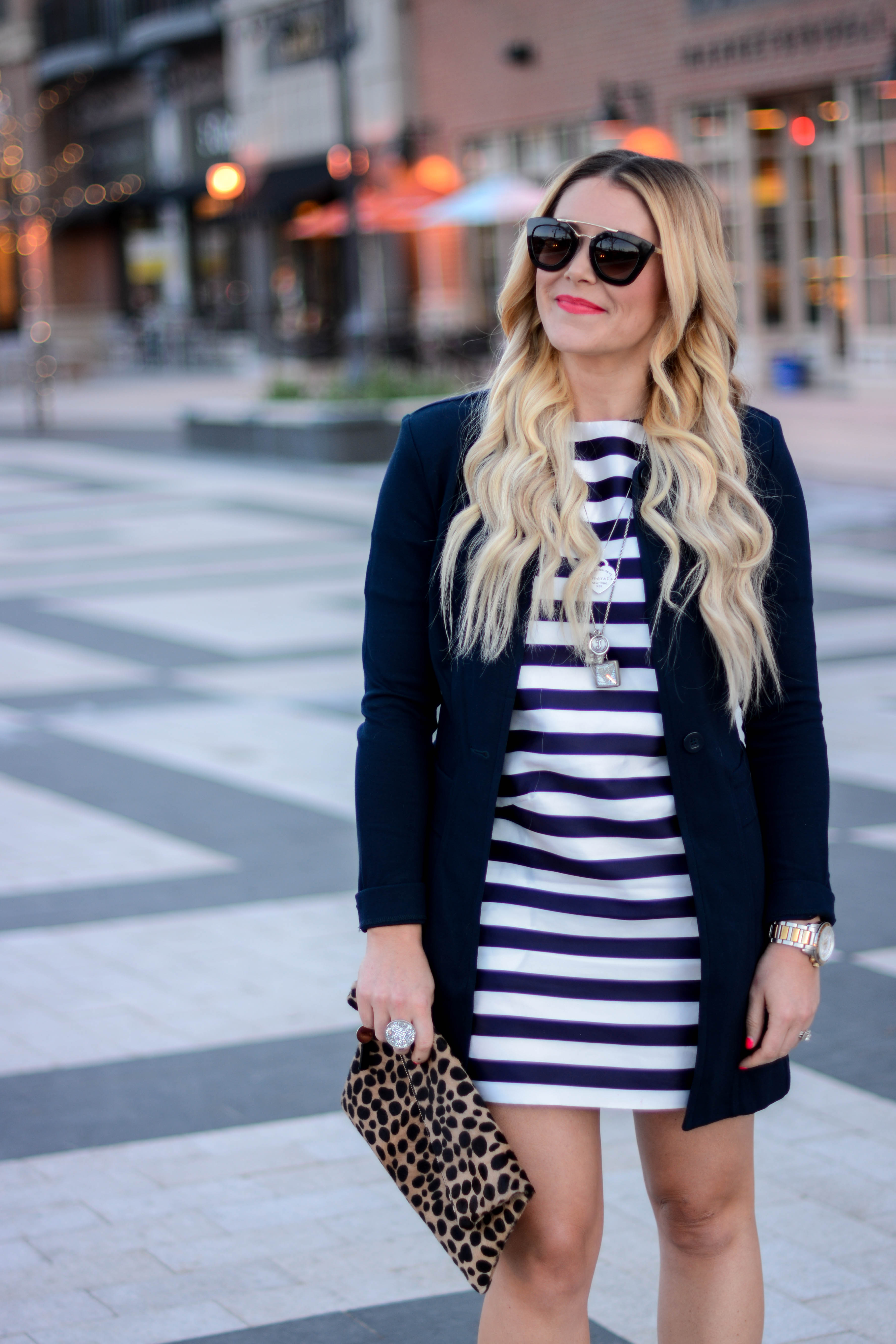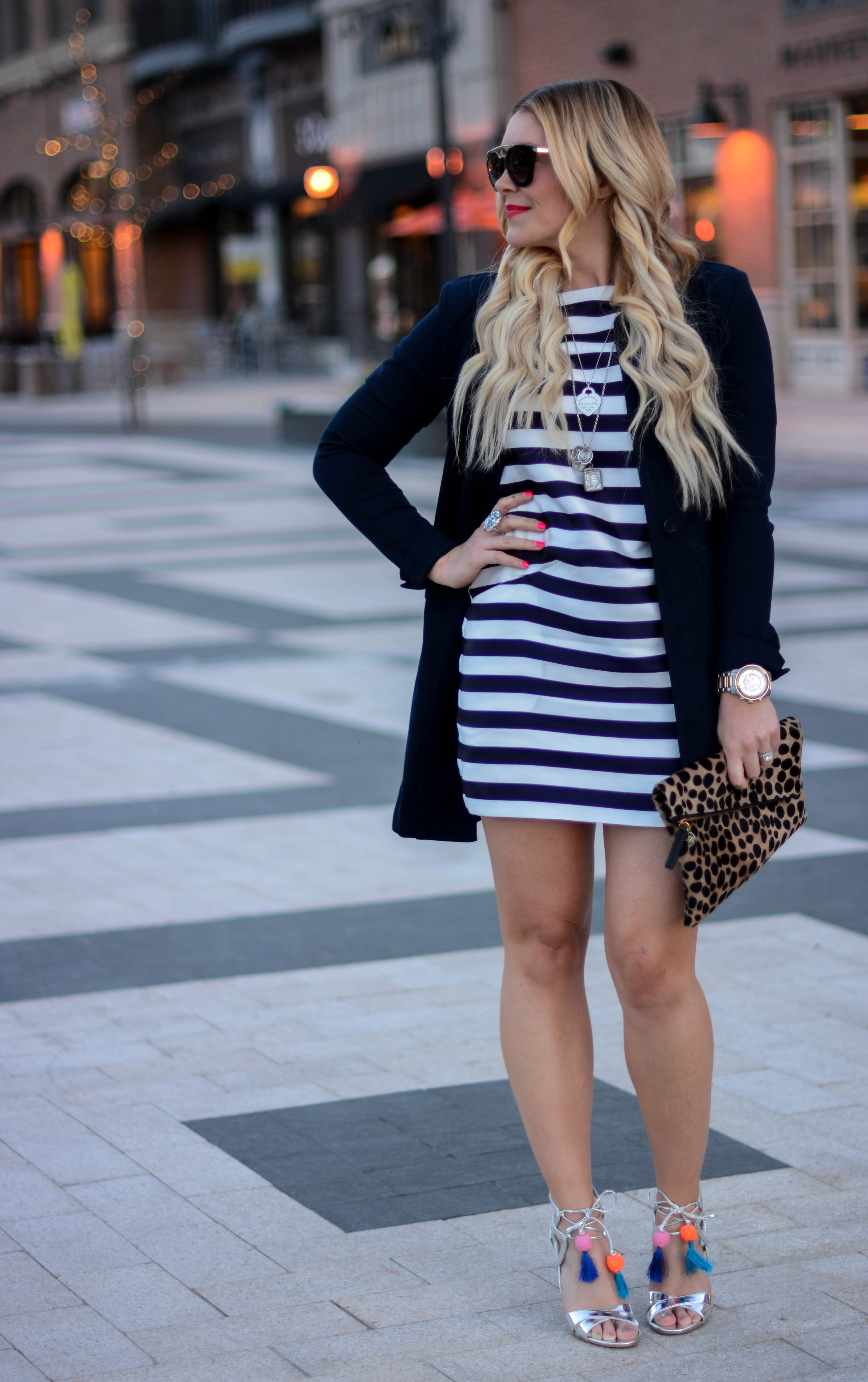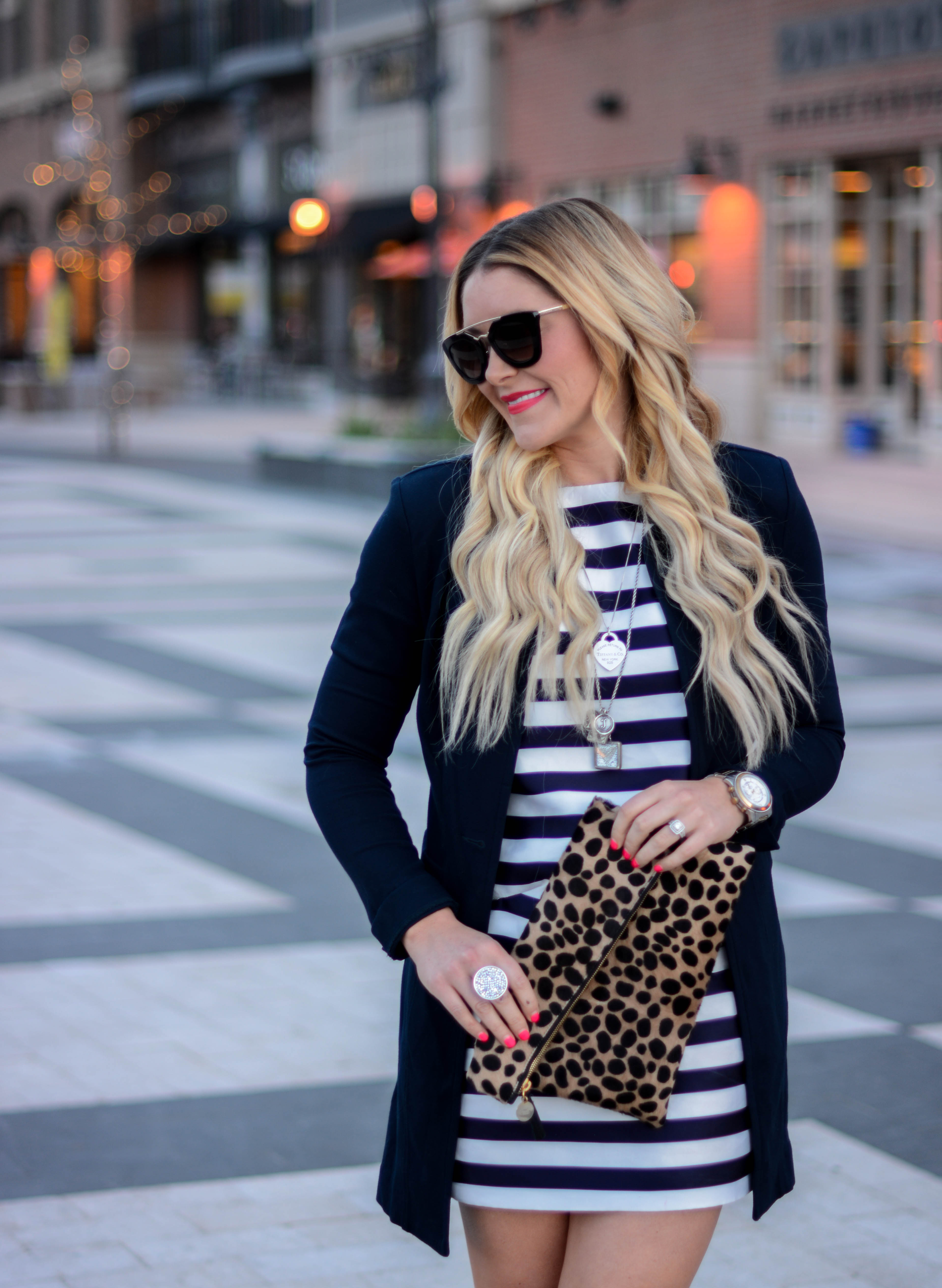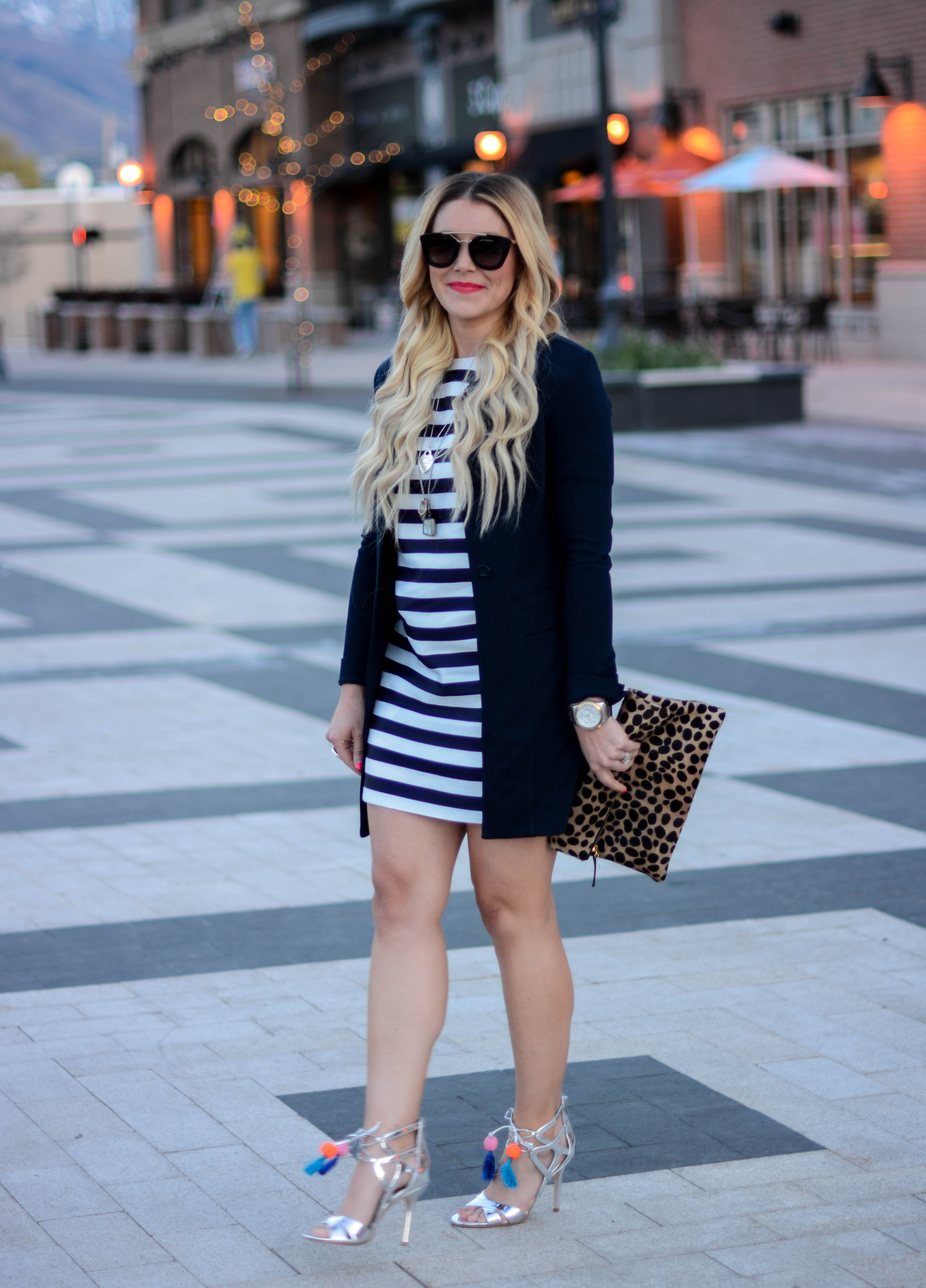 Dress (cabi c/o) | Jacket | Necklace (old, just ordered this) | Sunnies | Clutch (similar under $50) | Heels (on sale!)