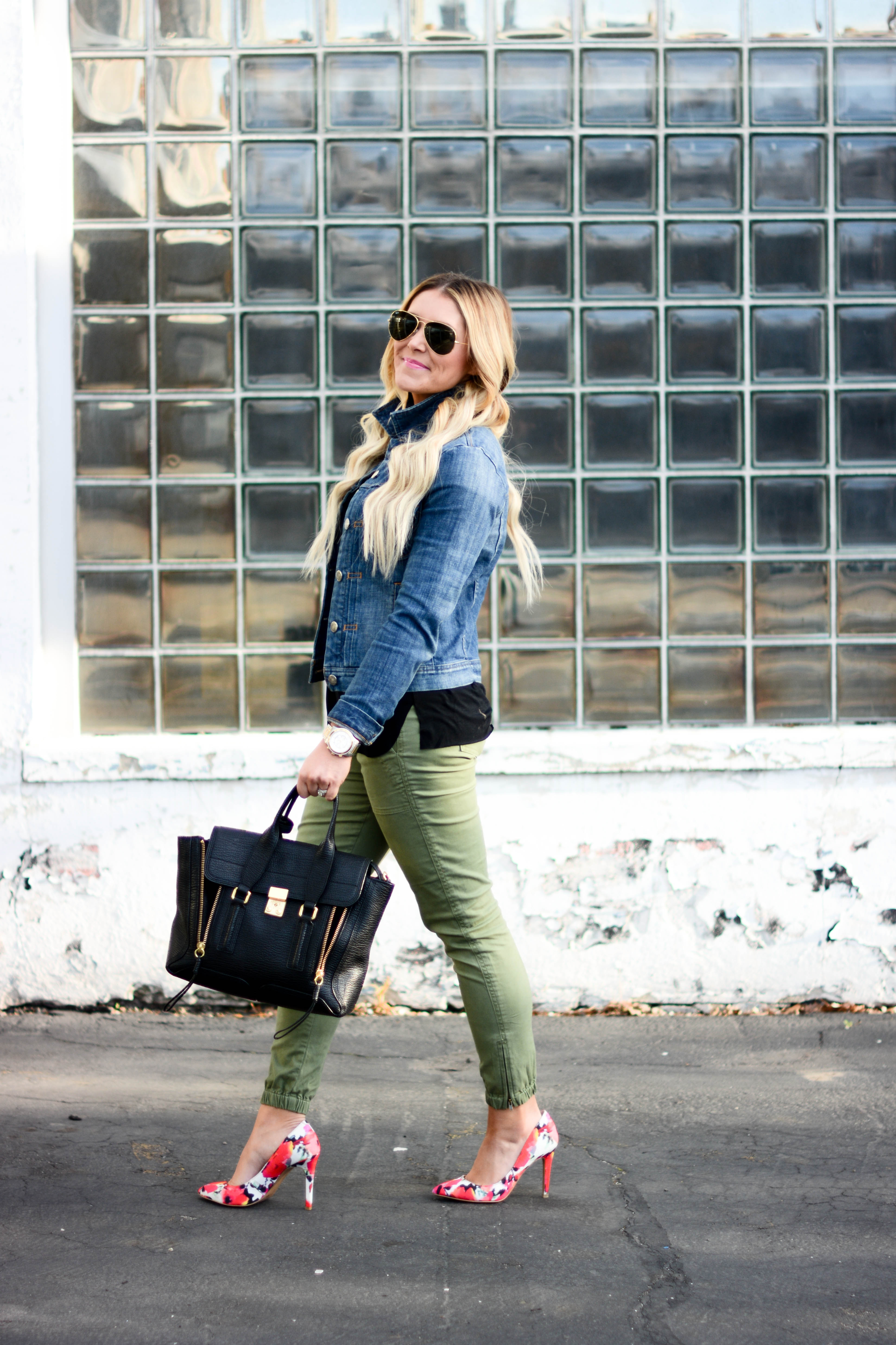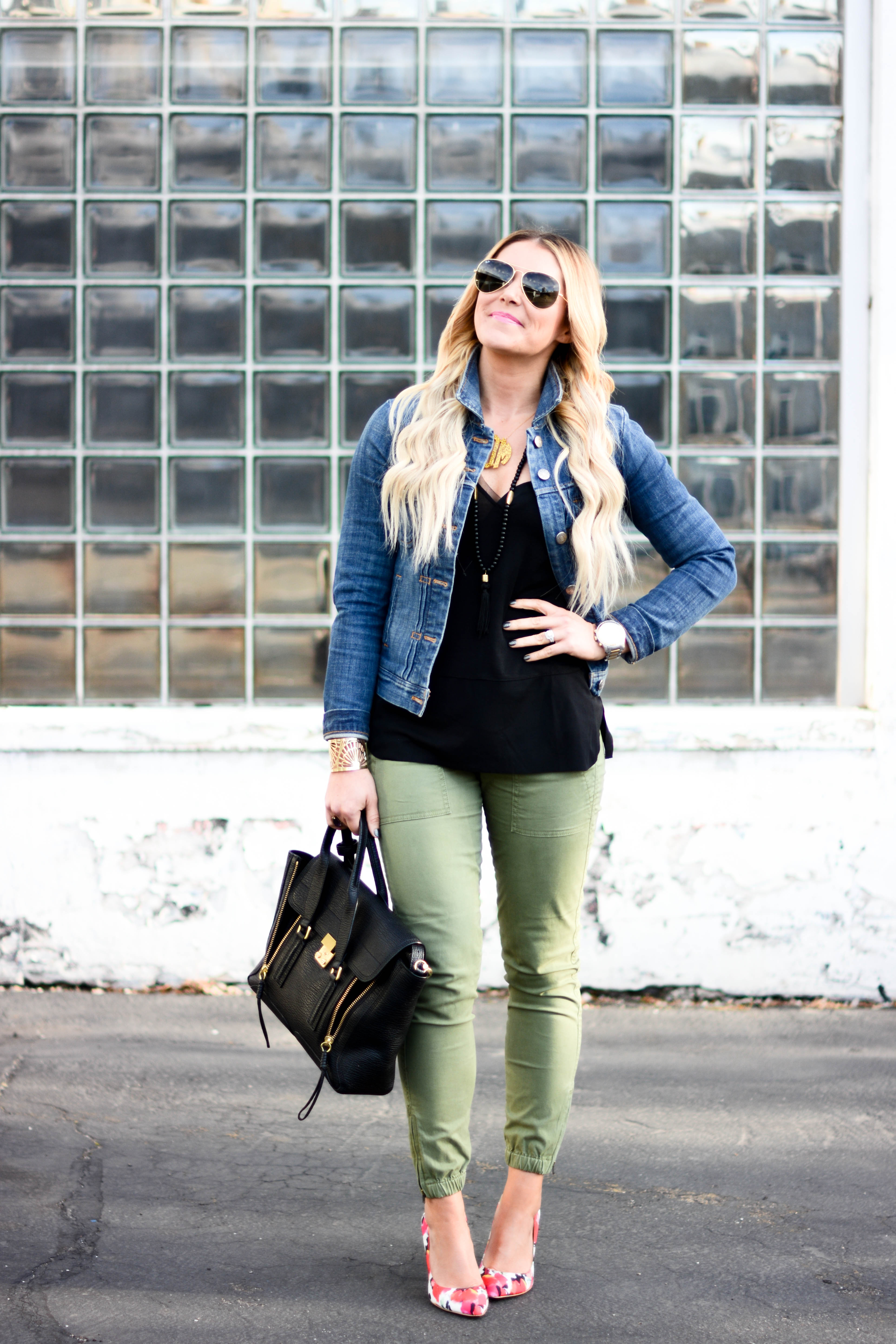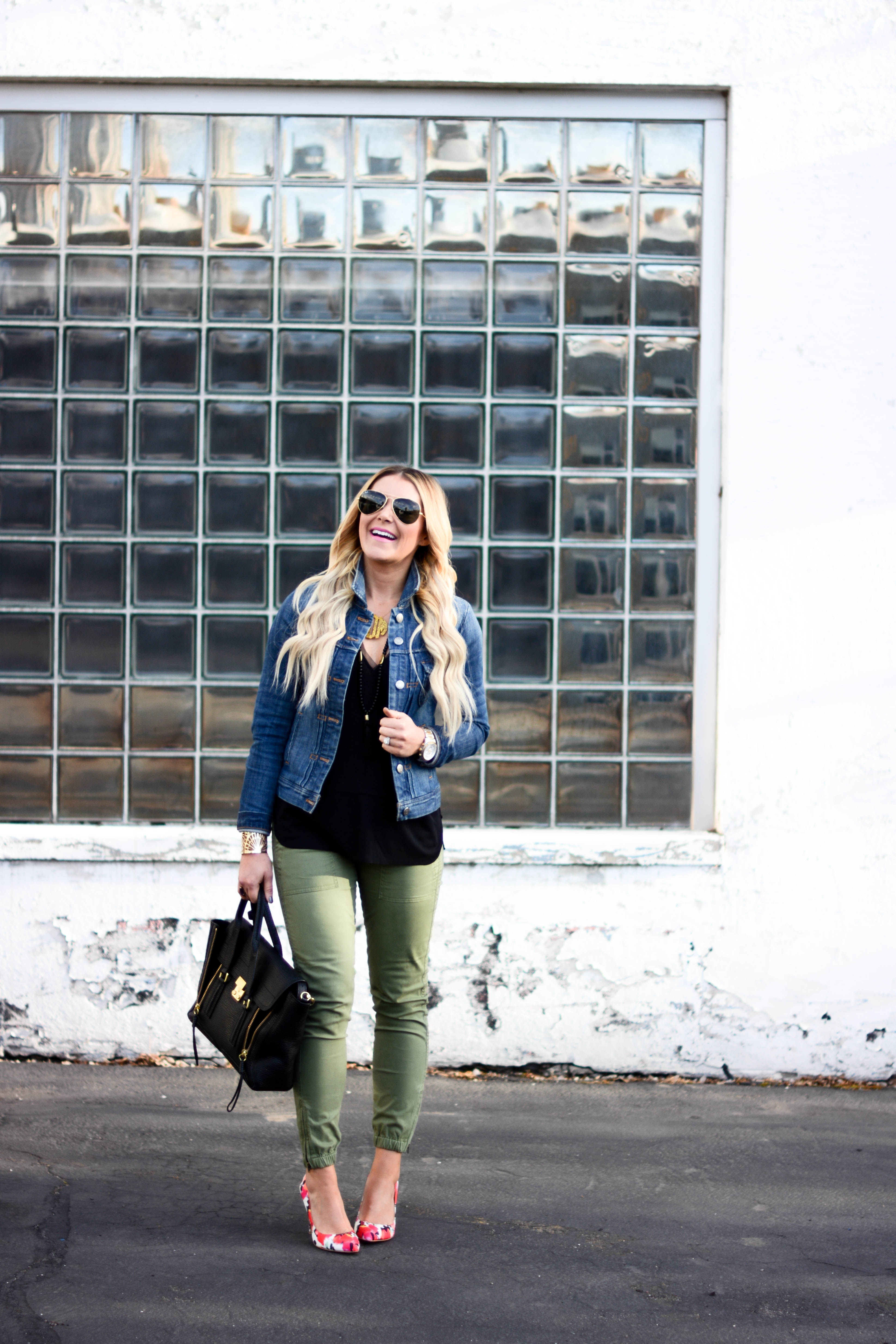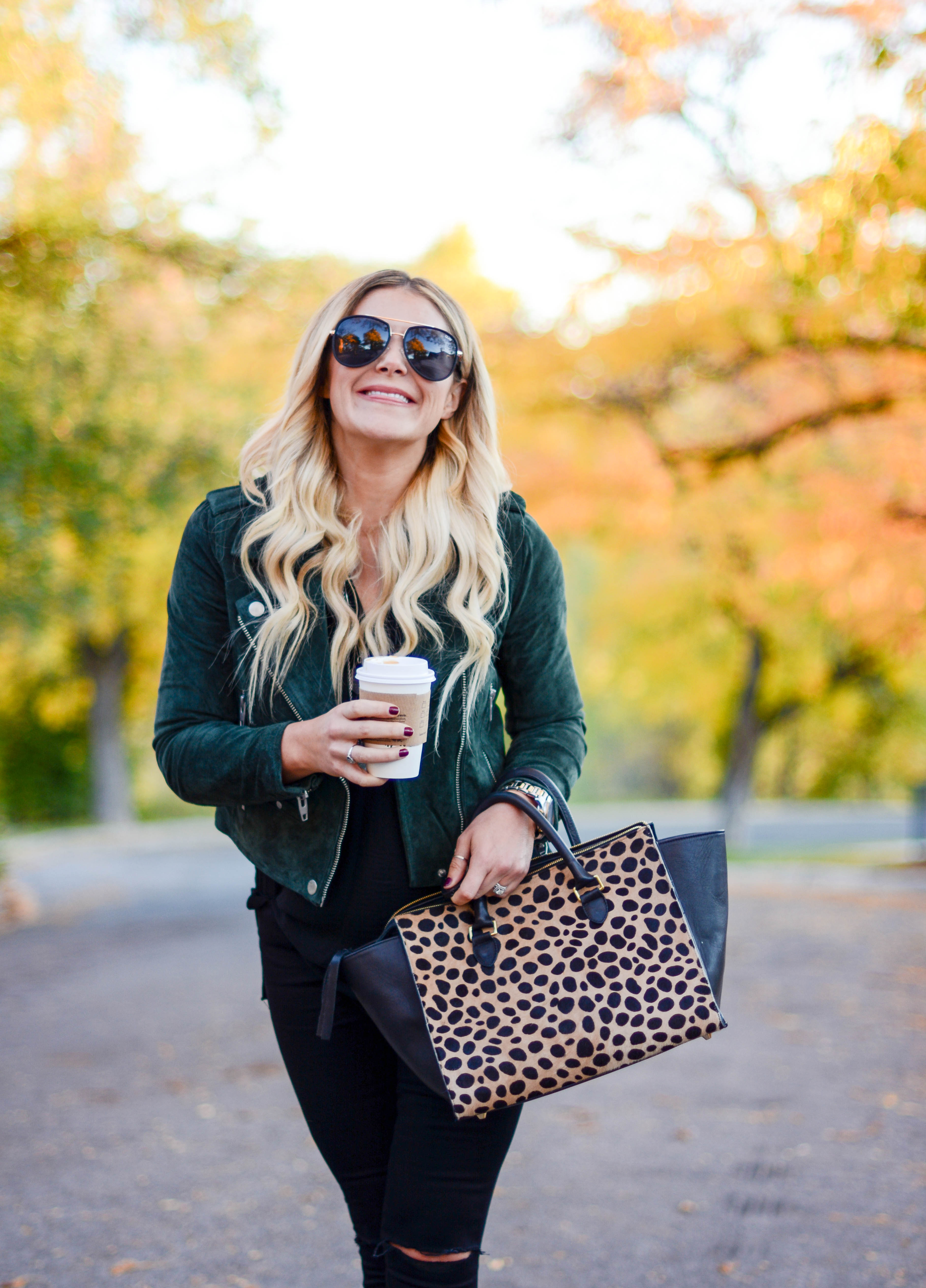 Jacket (TJMaxx), similar, similar, similar | Top | Skinnies (so comfy and less than $100!) | Sunnies | Bag | Heels