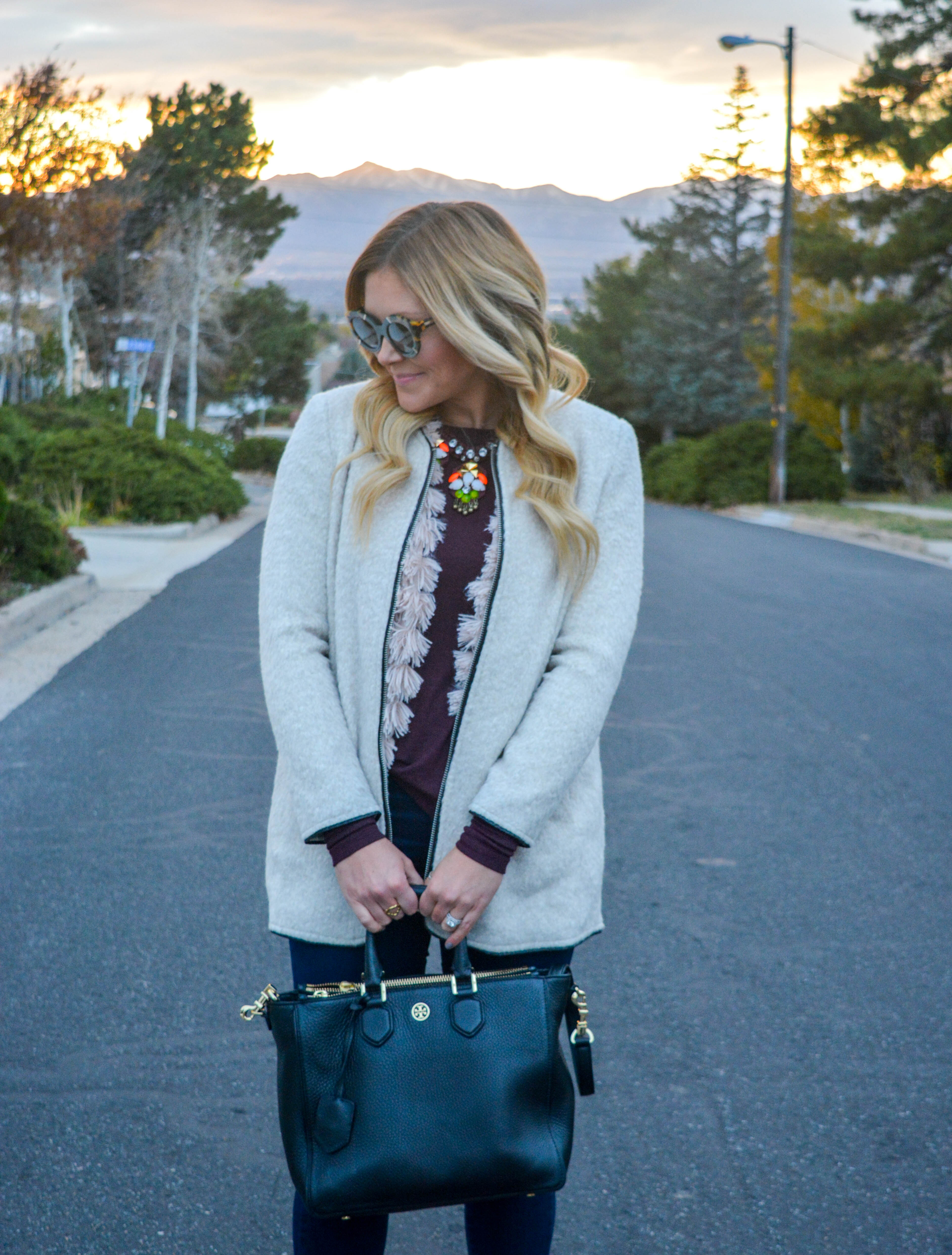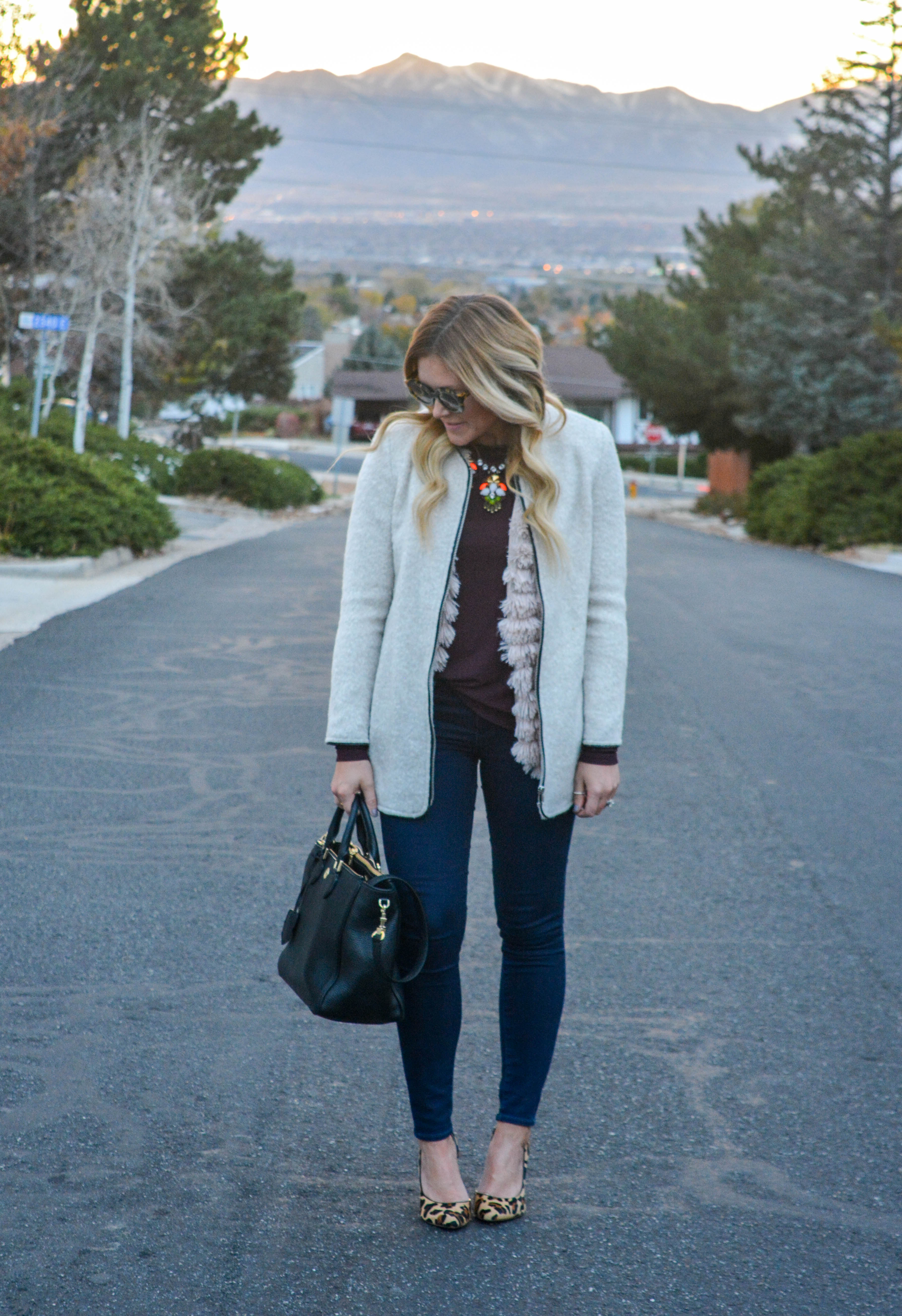 Jacket: Macy’s | Top: Free People (I told you it was my favorite!) | Skinnies: Joe’s | Pumps: BCBG