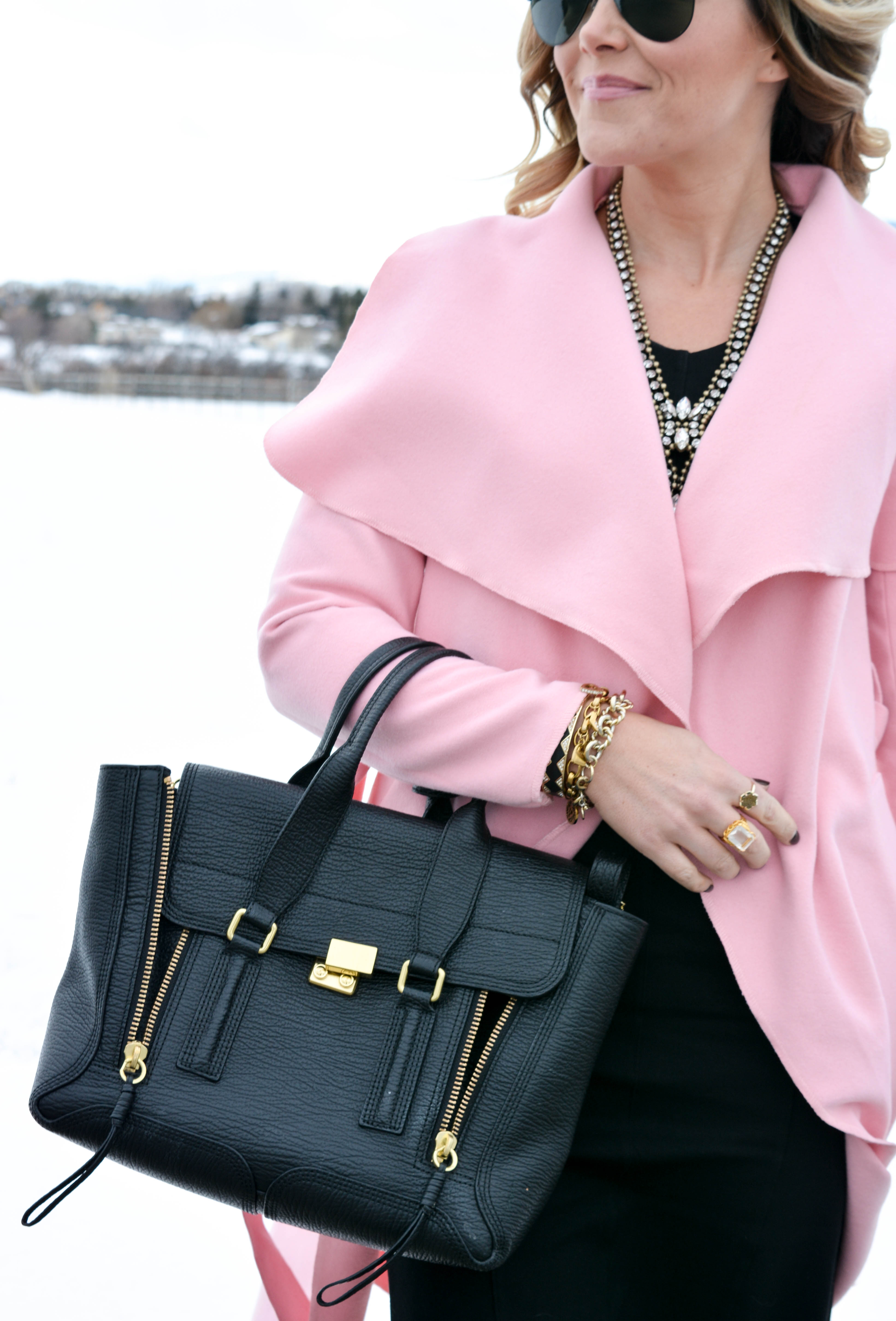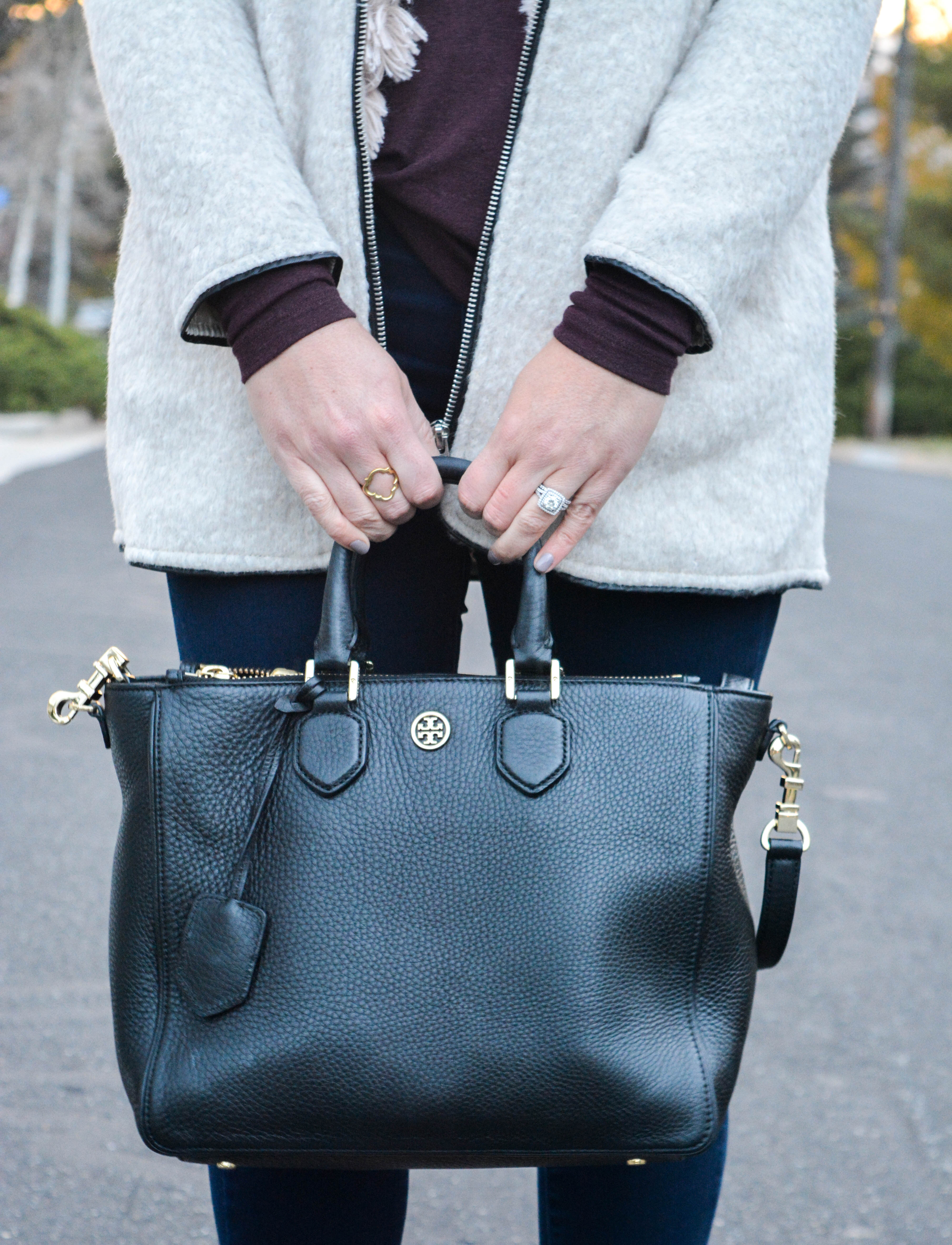 Jacket: Nordstrom (best. ever.) | Silky V-Neck Tee: Express | Skinnies: JCrew | Bag: Rebecca Minkoff | Pumps: BCBG