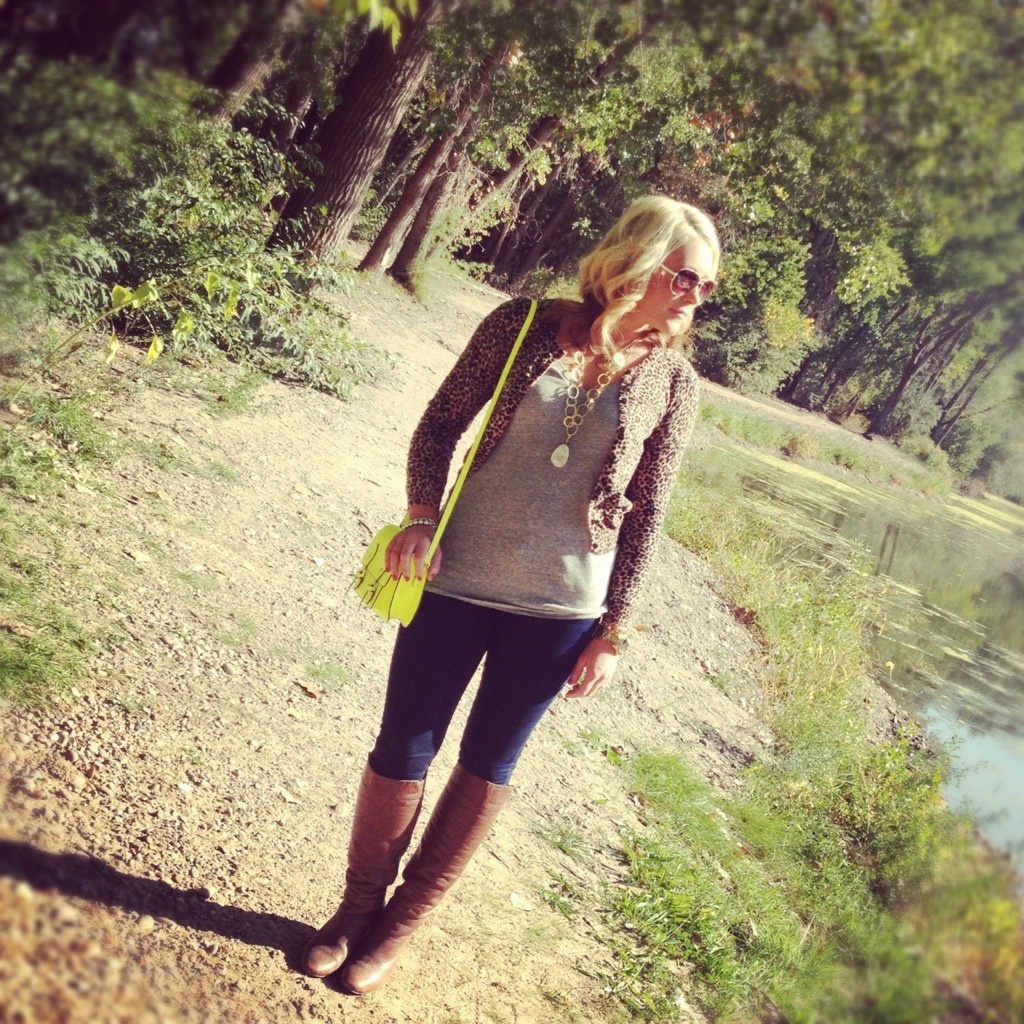This past Saturday brought us up to beautiful Ogden for race day. And while most races are in the morning and you can normally find me straight from boot camp running around the course in my LuluLemon gear and tennis shoes, this was an afternoon race so I actually had to wear real clothes for the occasion. However, I found myself a bit stumped as to what real clothes I could wear both to the race and then directly out for beers with friends following. I seem to have an easy time getting super dressed up or being super casual, but it’s the in between that I always find to be a struggle. So I did what any strategic thinking fashionista would do and I pulled out my favorite grey tee, my most comfy skinny jeans, my best worn in boots (with just enough of a heel that I could run around but not feel frumpy), and then threw on some fun jewelry and a leopard cardi for some spunk. And I have to say, it ended up being the perfect outfit for a casual, fun fall day.
