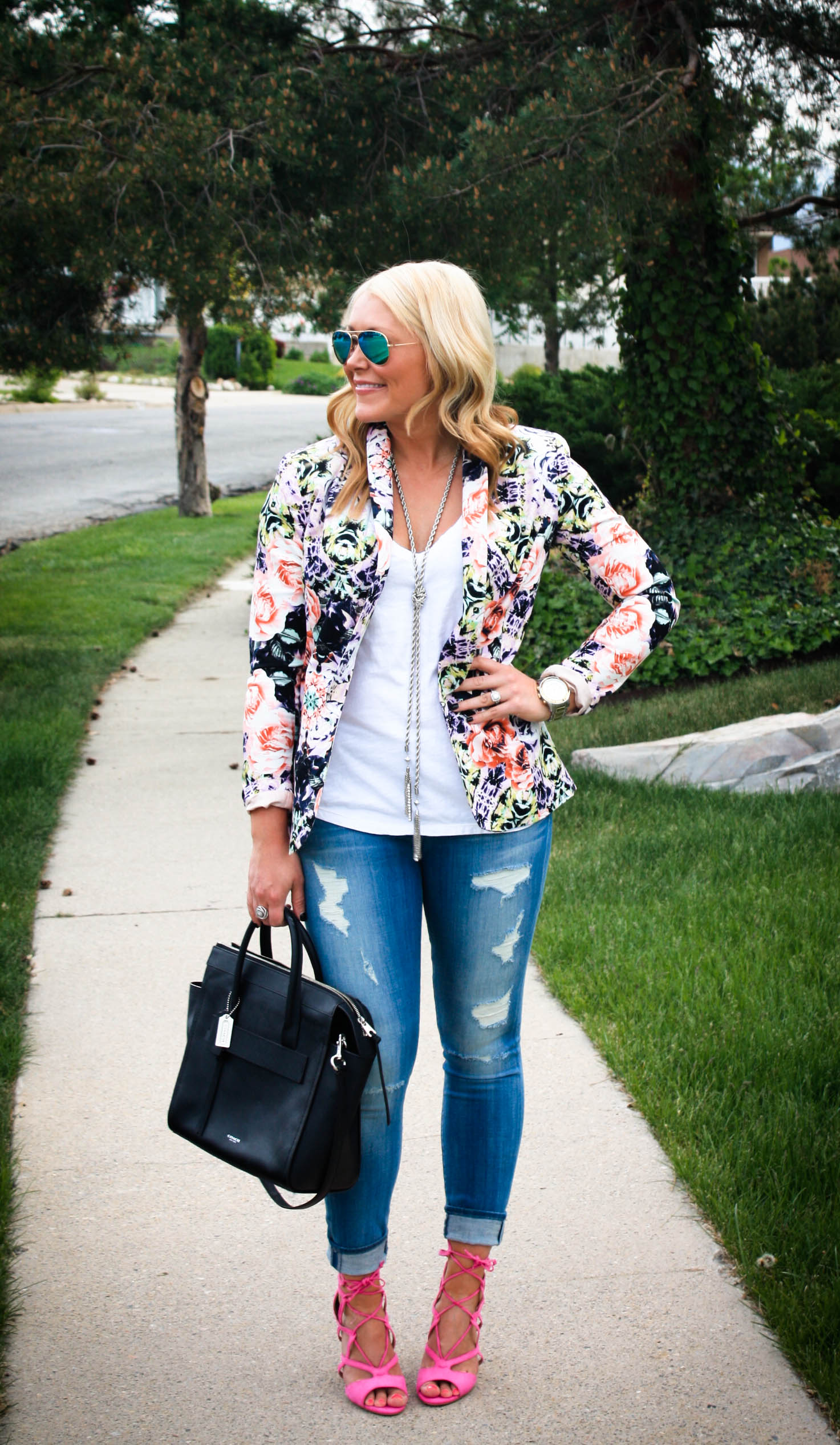 Happy Friday, sweet friends! I hope you have all had a great week. I was on the road for work, so despite my best intentions to get some blog posts up and running, my nights were spent getting caught up and prepped for meetings. But today, I’m back! And I am excited to share with you a typical outfit that I would wear to work. Because I am on the road so much for my job (you can read about what I do here), on planes, in cars, and in and out of Executive meetings, I am always looking for work appropriate (and fashionable) outfits that are also super comfy and practical. The Express Portofino shirt has become a staple in my closet (it comes in TONS of cute colors and prints), and I love pairing it back to simple black skinnies, basic jewelry, and a fun pump or heel for a little pop of color. I have found this to be a great basic formula for an easy wear-to-work outfit that works for just about any occaision. Not to mention that this combo also looks fantastic with a blazer for a little more dressed up look!