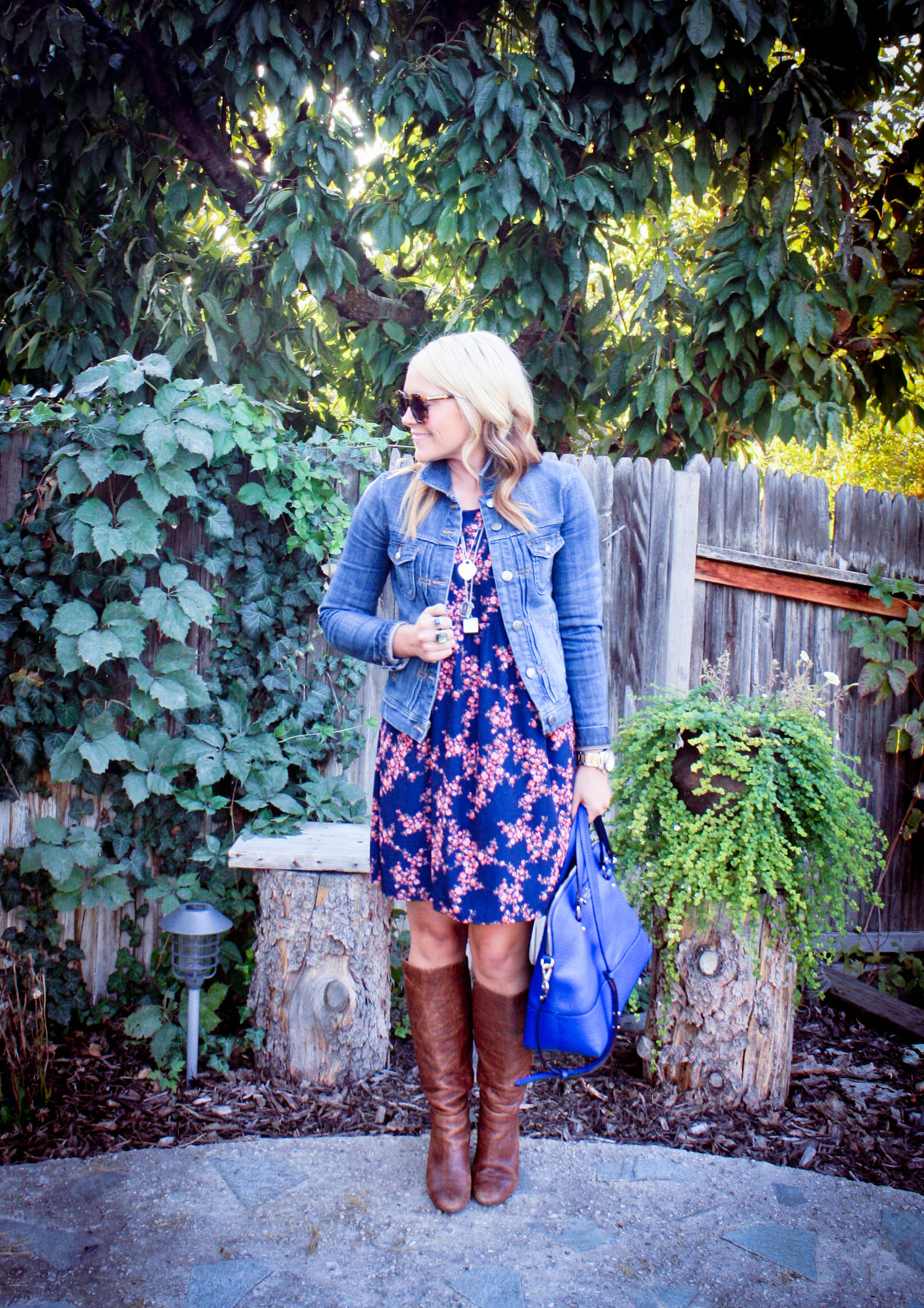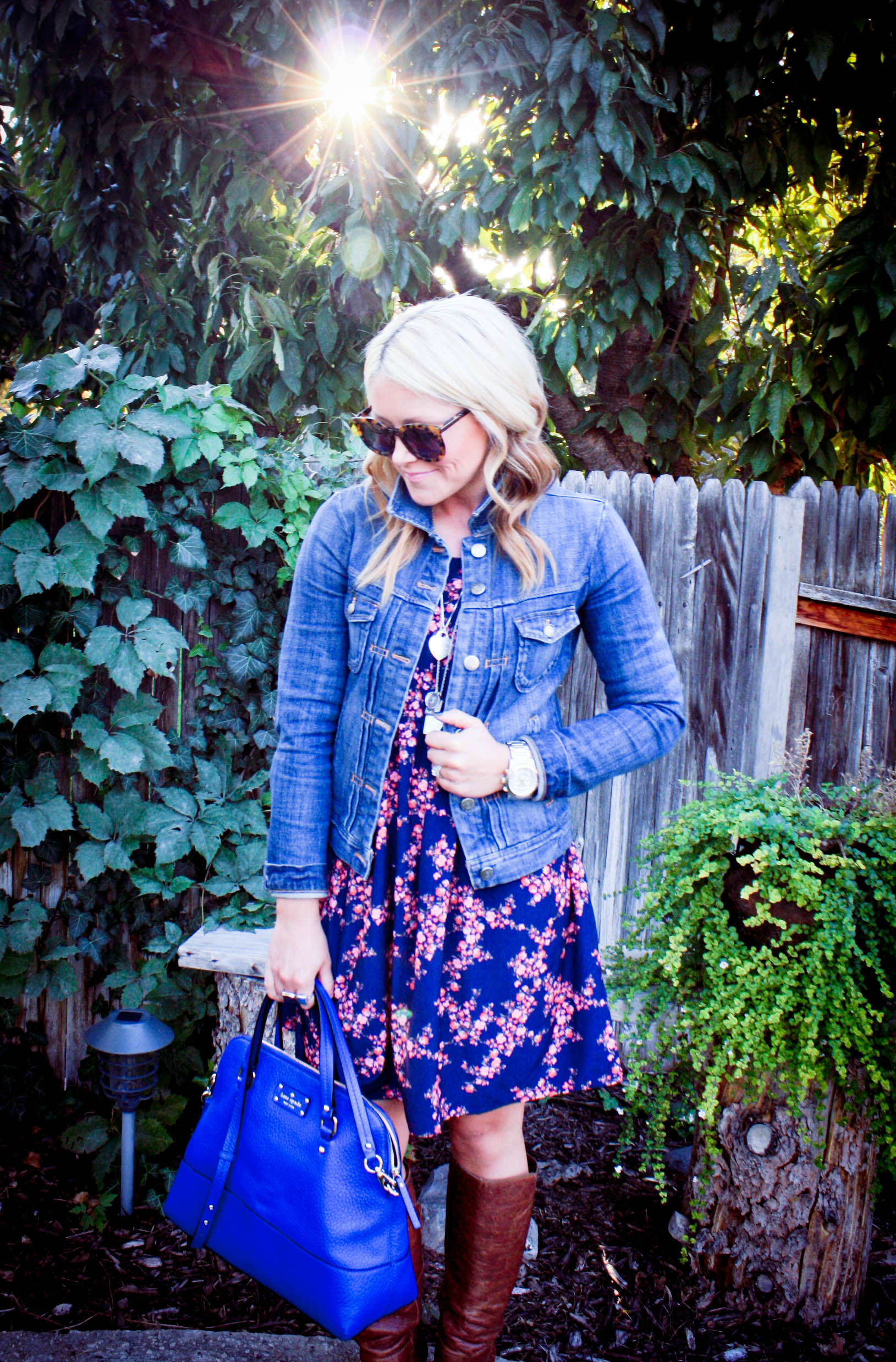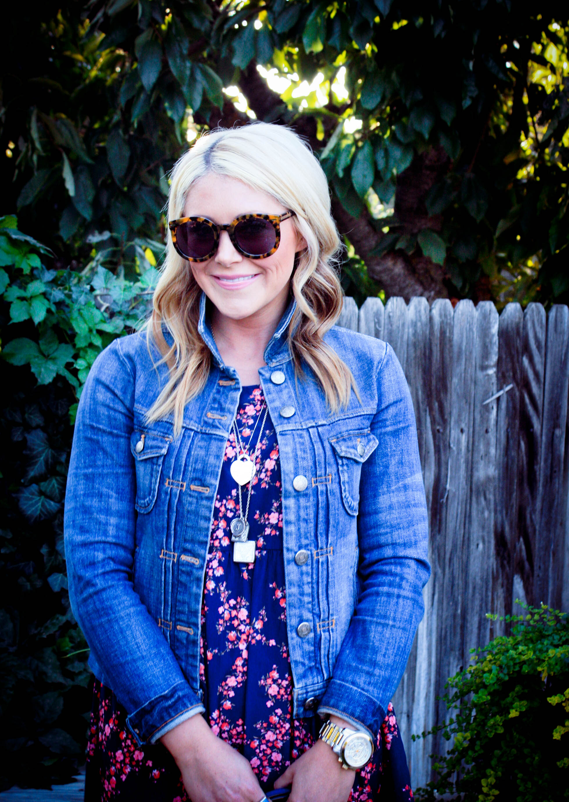 Jean Jacket: JCrew (runs a little big so size down) | Dress: Old Navy, similar, similar | Necklaces: Tiffany and Co., personal collection of charms | Watch: Michael Kors | Rings: Sundance Catalog (here, similar), also love this and this | Sunglasses: Karen Walker | Bag: Kate Spade | Boots: Aldo (old), LOVING these
