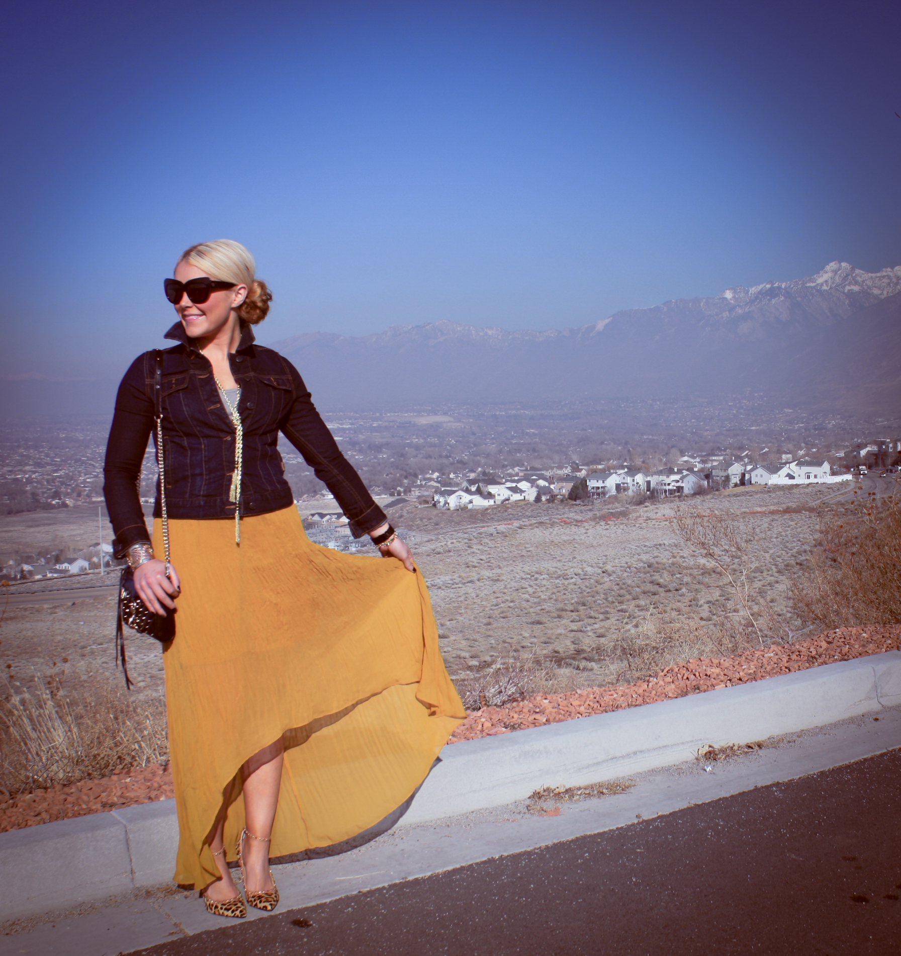 I LOVE the combination of leopard and mustard yellow.  It is hands down one of my very favorites ever. And while I would normally pair this combo back to black, I am loving the added element that a dark wash denim brings to this look…