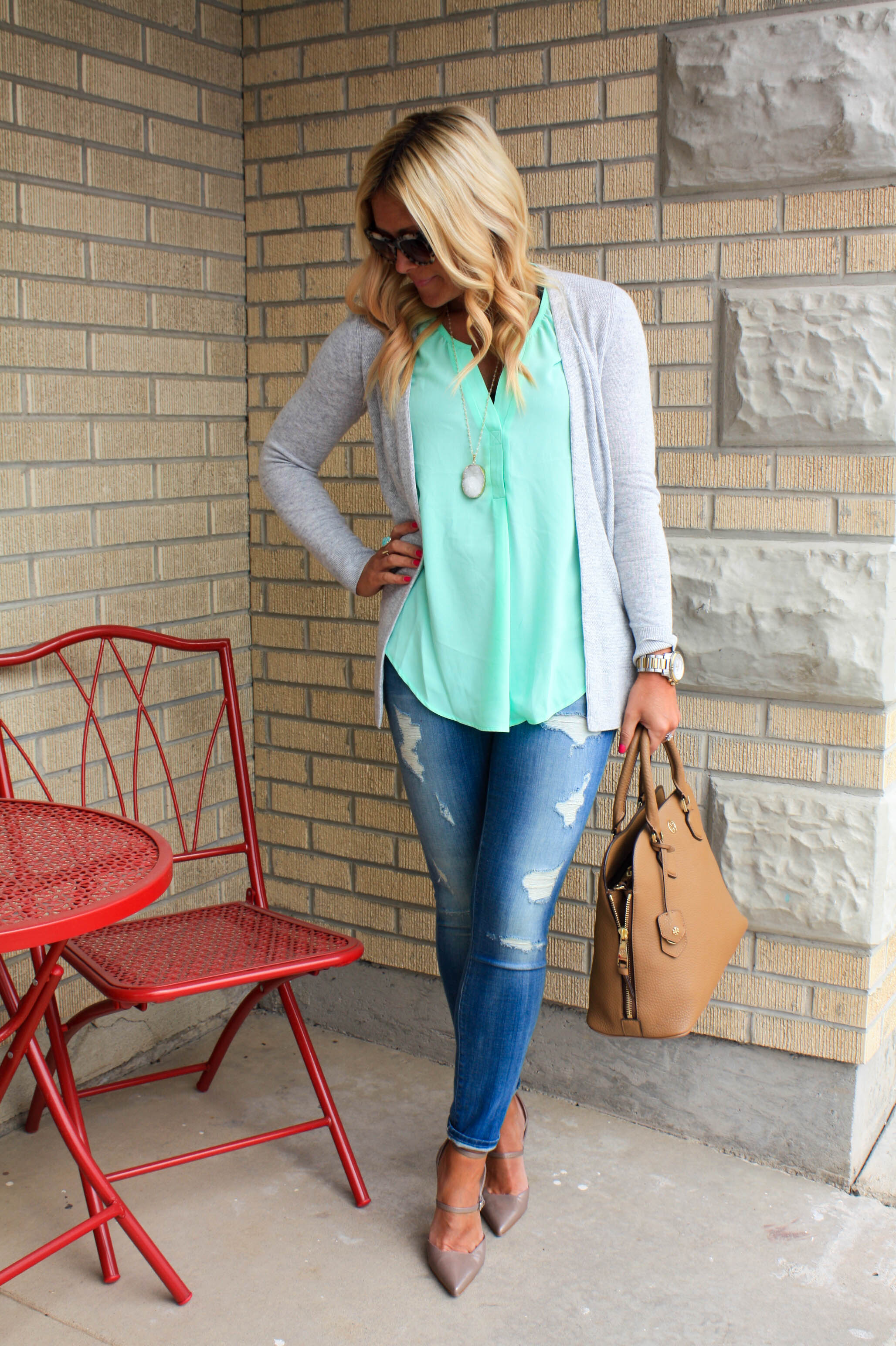 Cardi: Loft | Blouse: Nordstrom Rack, LOVE this | Jeans: 7 for all mankind | Necklace: Moose and Nigel c/o | Ring: Kendra Scott | Sunnies: Ted Baker via Nordstrom Rack (on sale!) | Bag: Tory Burch | Pumps: Michael Kors (old), LOVE these