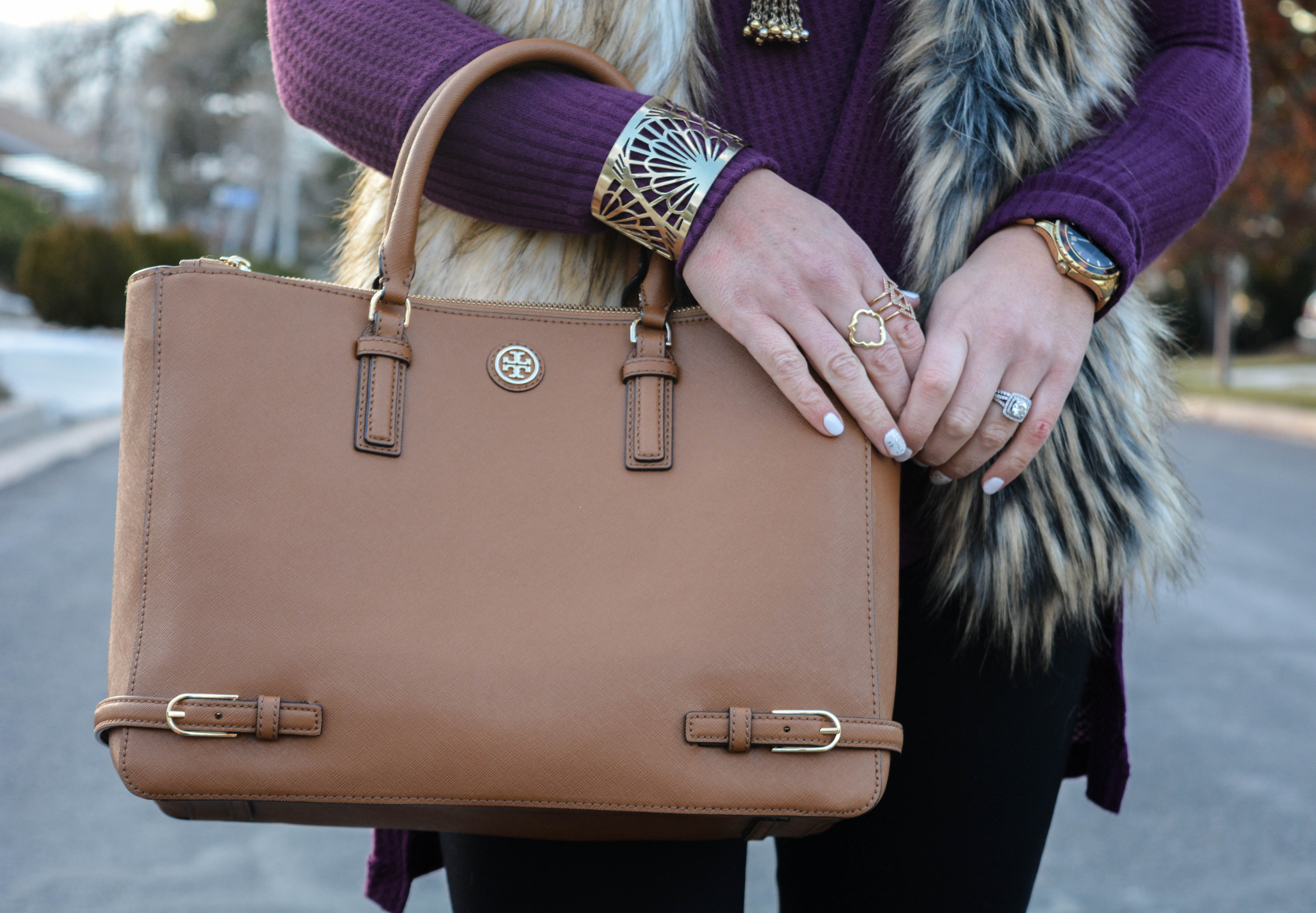 Sweater: Express, similar | Vest: Forever21 (sold out), similar, similar | Jeans: 7 For All Mankind | Necklaces: JCrew, Dillards(obsessed with this love necklace, btw) | Watch: Michael Kors | Purse: Steve Madden (old), similar, LOVE this one | Boots: Calvin Klein (on sale! plus get an additional 25% off with code FRIEND at checkout!)