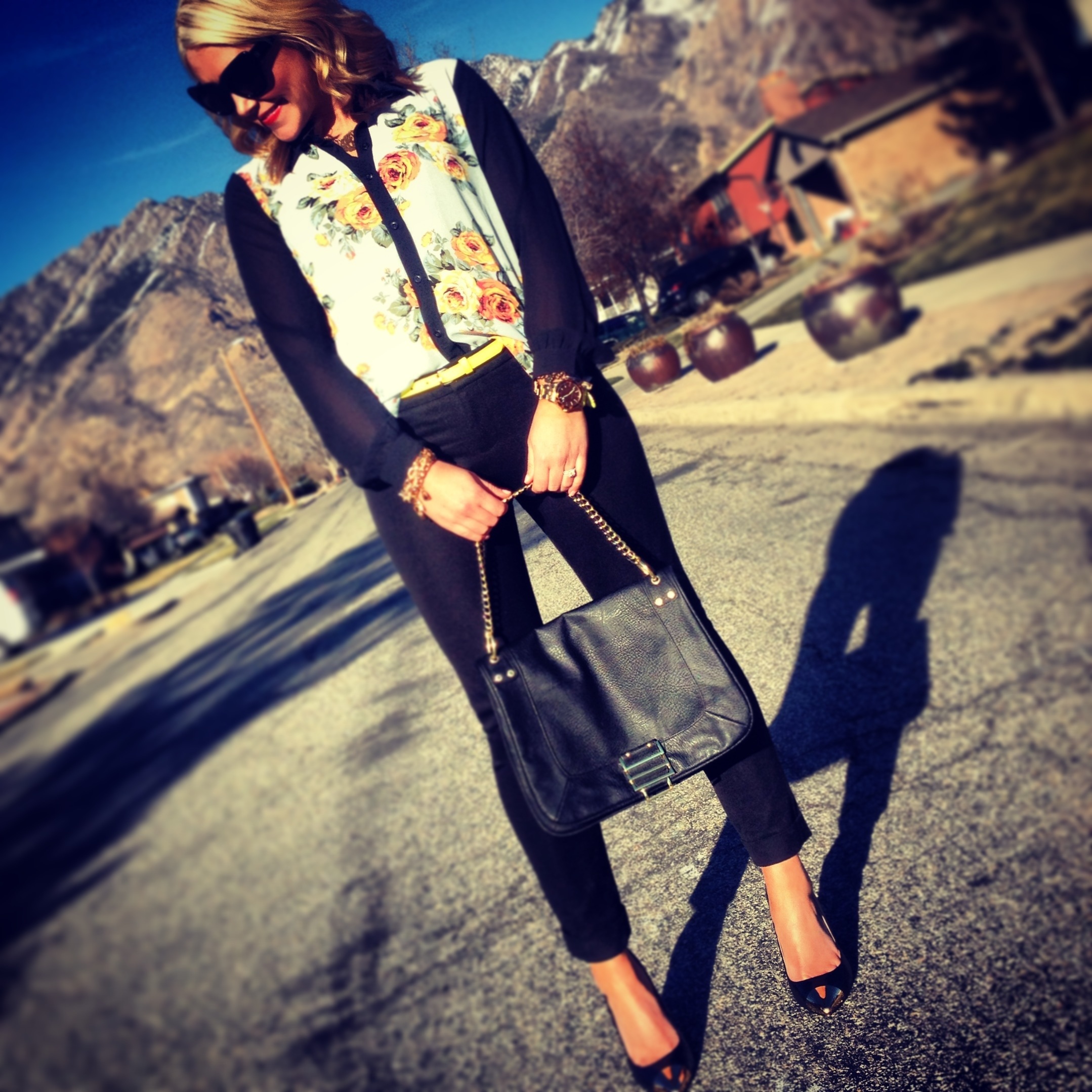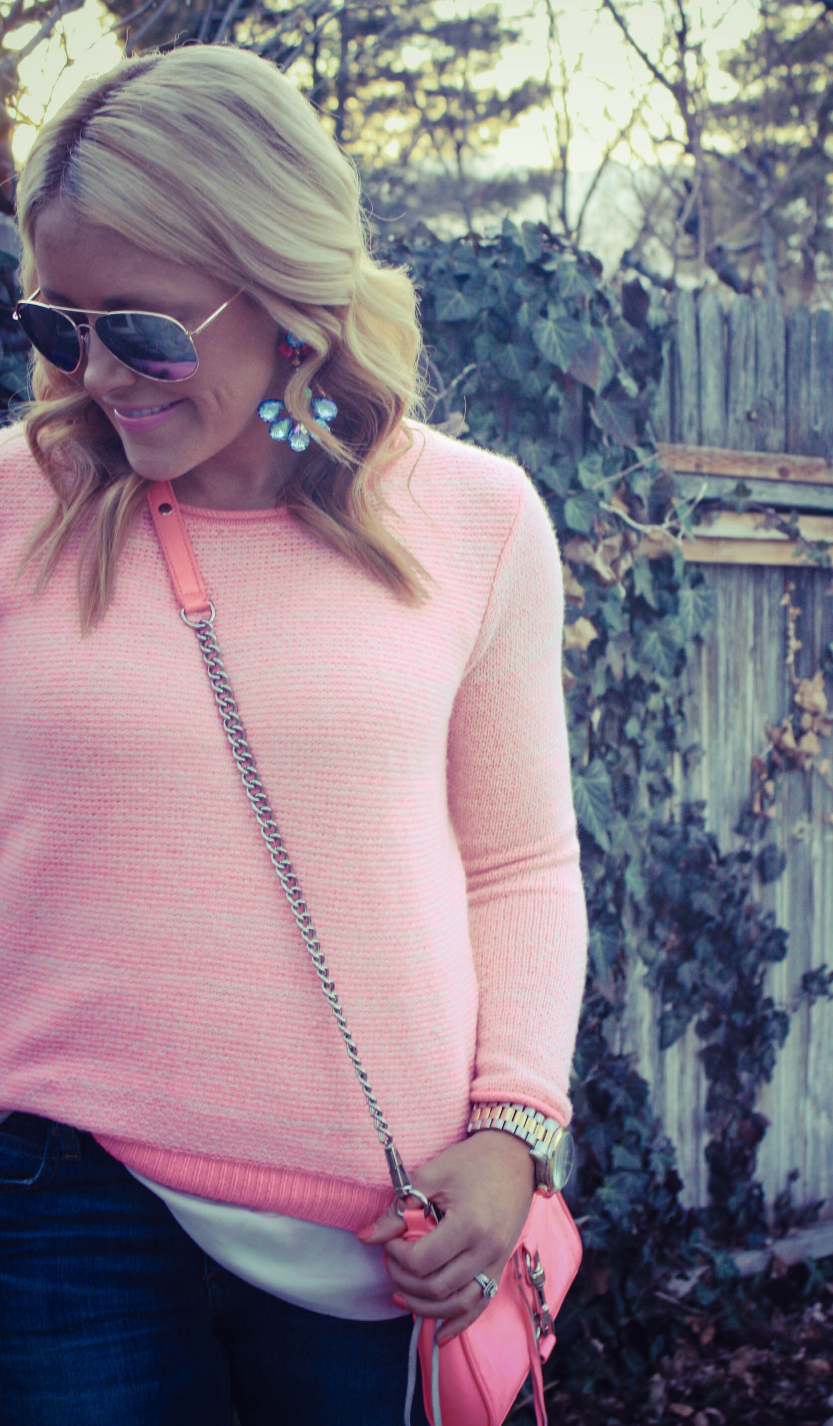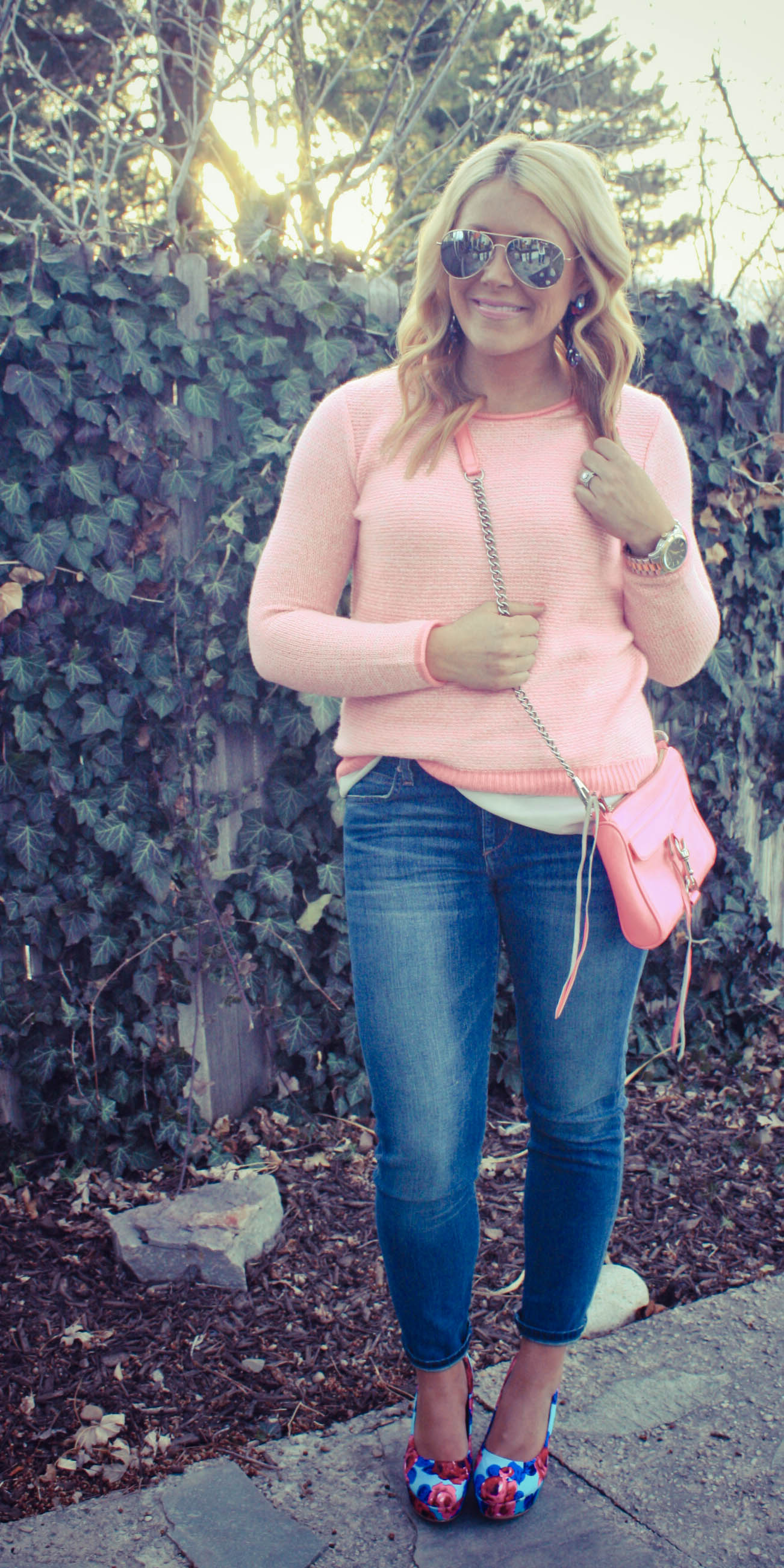 cardi (cabi c/o) | tee (similar) | denim | necklace | sunnies | bag (on sale!)| heels