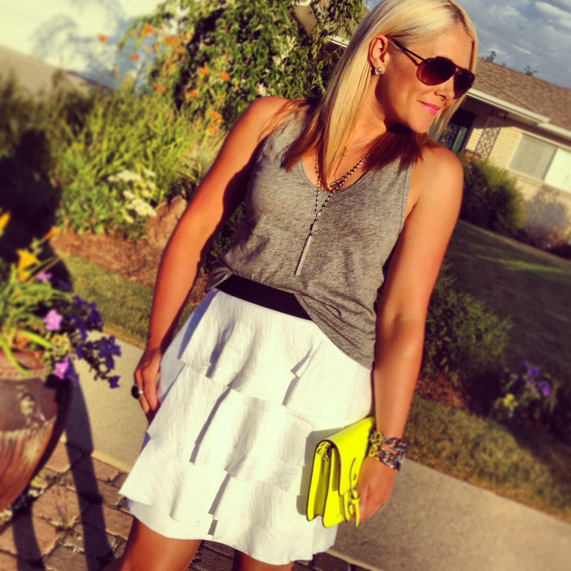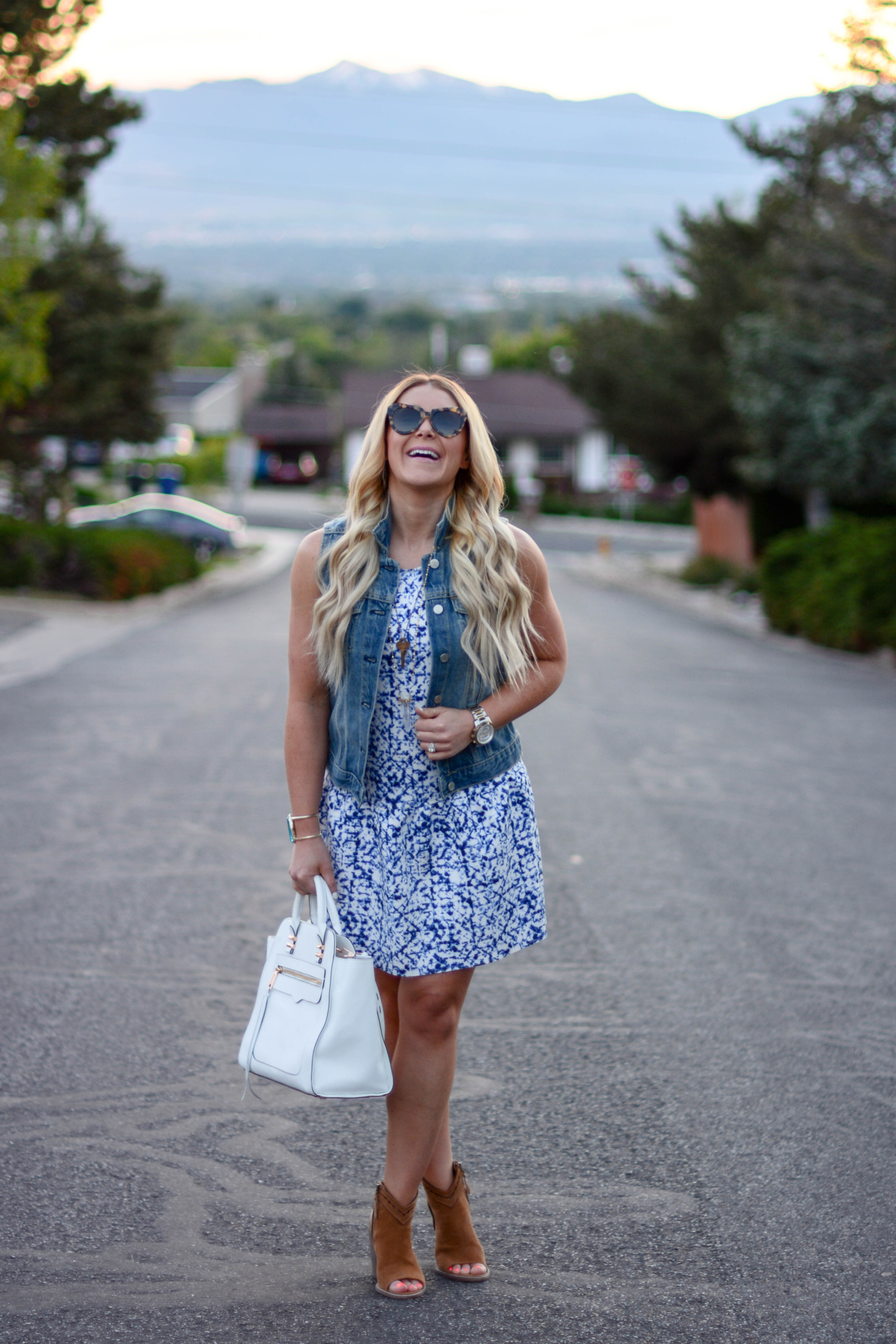 Dress: BCBG (old), similar, similar, similar | Blazer: H&M (old), similar | Bracelets: Kate Spade, Francesca’s, JCrew, Stella & Dot | Watch: Michael Kors | Belt: Cotton On (old) similar | Sunnies: House of Harlow Chelsea | Wedges: Worthington