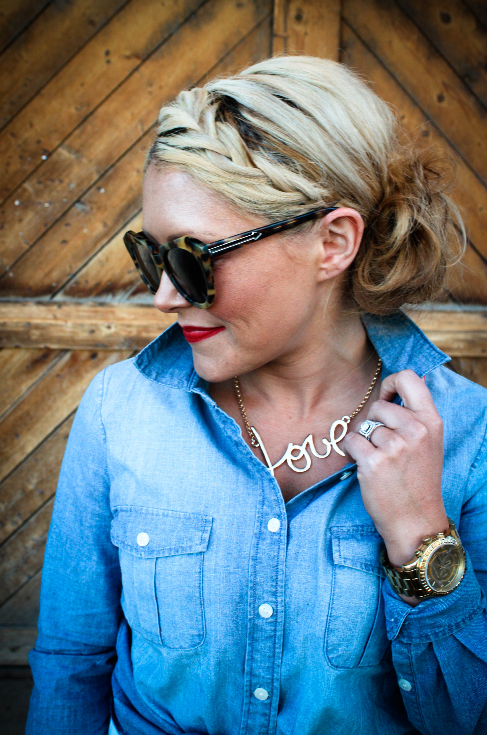 And second, I have to say I am grateful to even be getting a blog up today. I had big regional meetings last week at work-which meant a lot of late nights and early mornings-definitely no time for blog photos. And then over the weekend (when I had planned to catch up), I ended up with a terribly sick hubby AND the SLC had a whirlwind of crazy, stormy weather, including SNOW! Let’s just say, the odds were not in my favor. But fortunately, we were able to sneak in one quick outfit right as the sun went down last night. And I have to say, I am loving my pretty red lace dress paired back to a deconstructed denim jacket (with a hoodie no less). You know me, I always love an unexpected mix of casual and dressy…