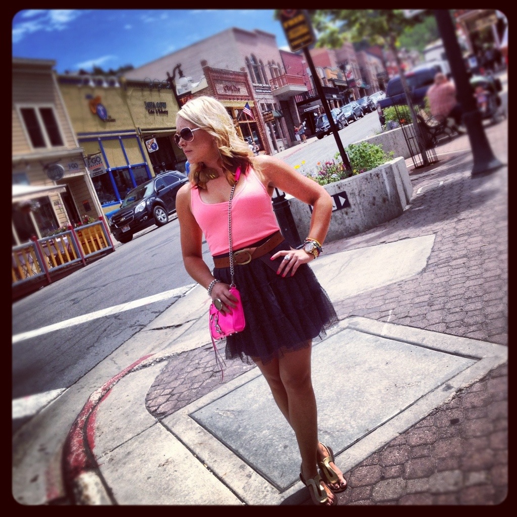 And so, after an amazing weekend celebrating our anniversary, J and I obviously decided to spend our last day on Main Street taking in the scene, relaxing, and just enjoying the last few hours of our weekend getaway. And because it was such a special weekend for us, I got a little more dressed up than I normally would for a Sunday in PC. But none-the-less, my black lace skirt, neon tank, and feather earrings still felt perfect for the occasion. And while of course I love lace, I am feeling especially pleased with the purchase of this black lace skirt. Initially, I thought it would be a piece that I would only use for more dressy occasions, but I am loving that it is also possible to dress it down with the right accessories. It’s always important to have pieces in your wardrobe that can serve multiple purposes and this one is a great example. And as an added bonus, it will be an awesome transitional piece into Fall (not that I’m ready to start thinking about that yet!)…