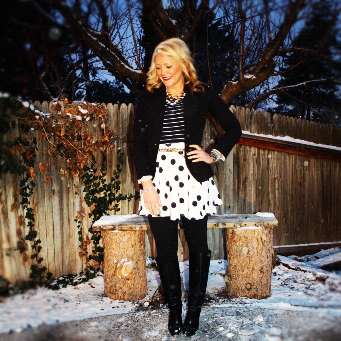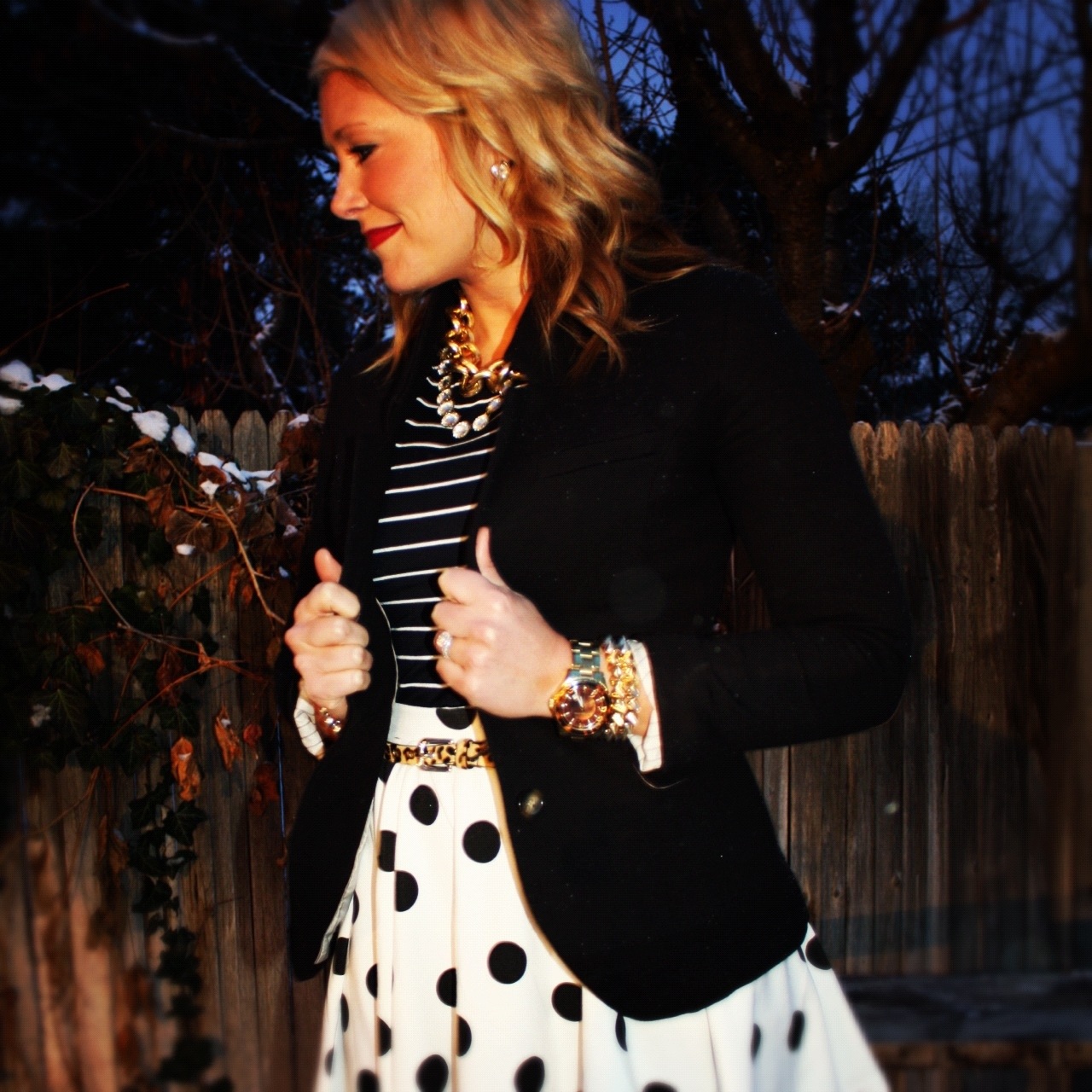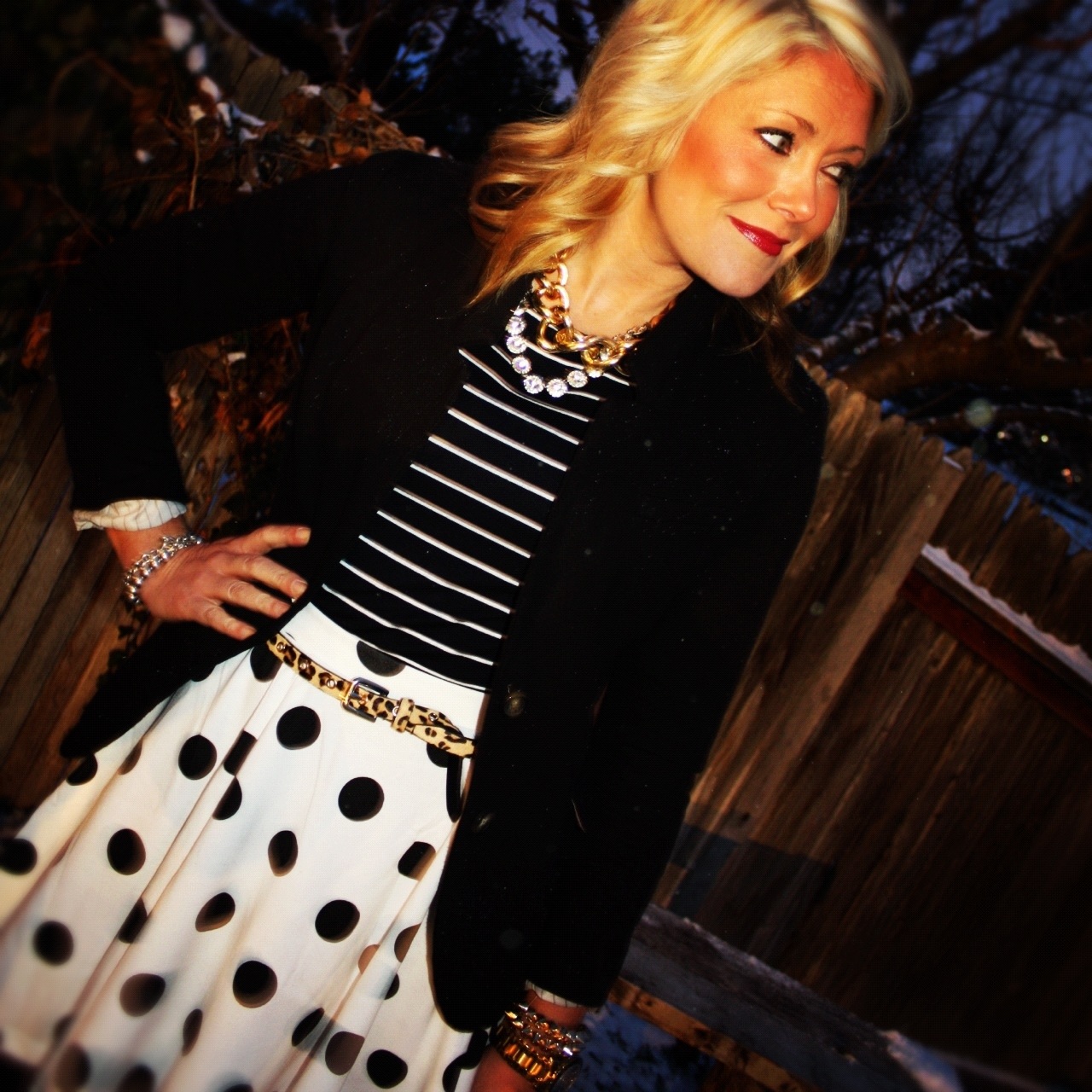 Leopard is another easy print to mix. In fact, I consider leopard to be somewhat of a neutral and find it goes back to just about anything-especially polka dots and stripes. And of course because I have a hard time going without any color, I paired this look with a bold burgundy lip to add that little extra pop.