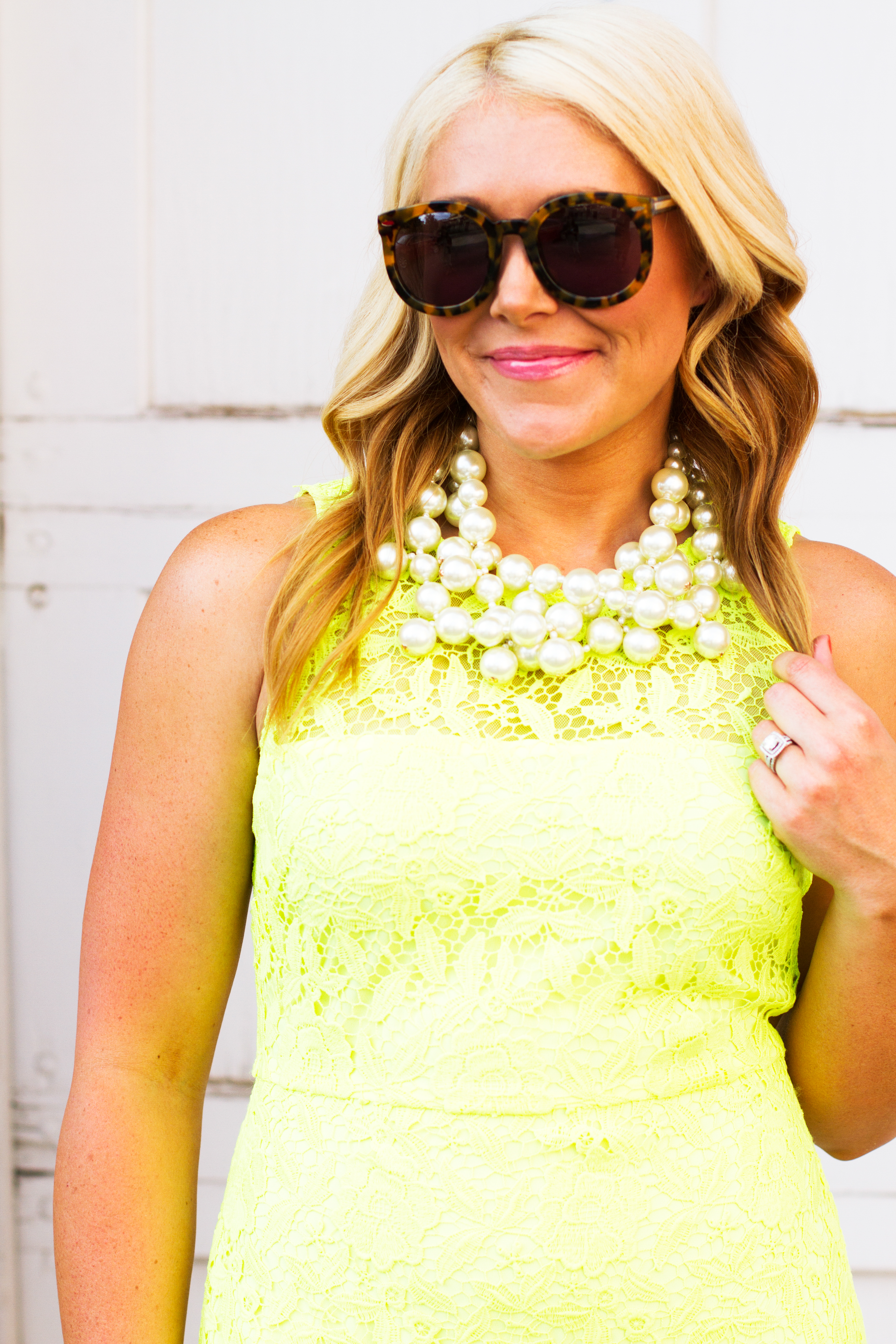 As promised, I wanted to show you all my fave JCrew dress without the vest (see the post of it with the vest here), for a little more dressed up version of this look. Also, it should be noted that I am really loving neon yellow right now. In fact, it’s kind of to the point where I feel like I just might need an intervention. To me, neon yellow is just like sunshine, only kicked up a notch. But I want to know what you guys think! Are you loving this color as much as I am this summer? And which look do you prefer? With or without the vest?
