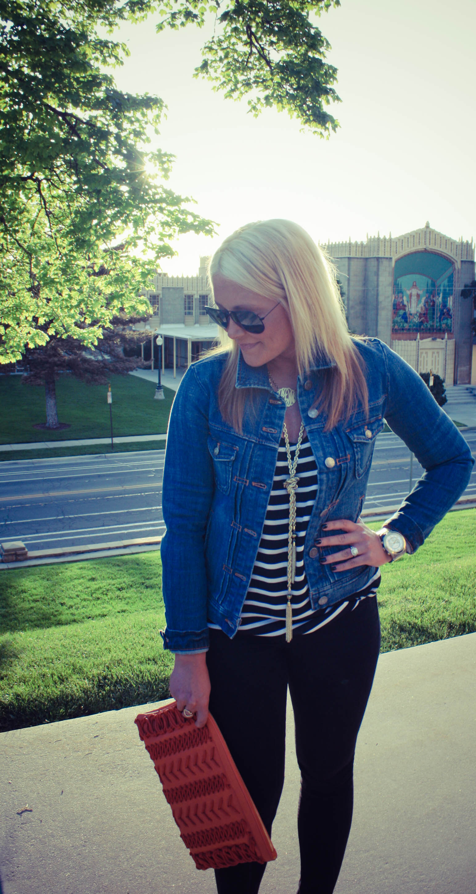 Now on to today’s outfit, which is actually what I wore to the show last night. Casual, but cool with a fun pop of color. When I go to a concert or show I always like to wear a cute tank/cami with a jacket so that I can take the jacket off if I get warm, or leave it on if the venue is cool. In my book, it’s always good to be prepared for either possibility. I am also a high heel kind of girl, but always make sure to wear my comfy heels so that my feet can be sure to last through a night of dancing…