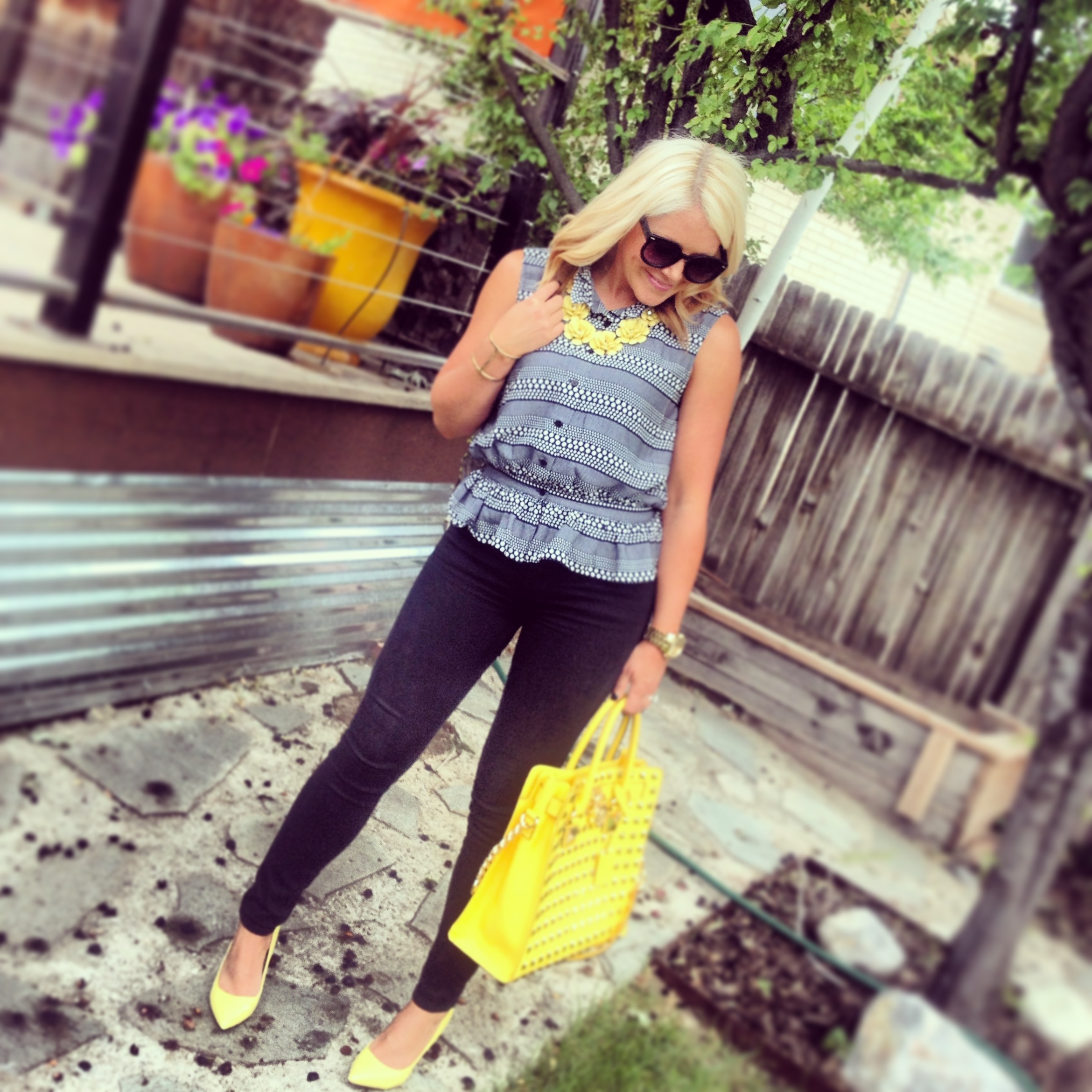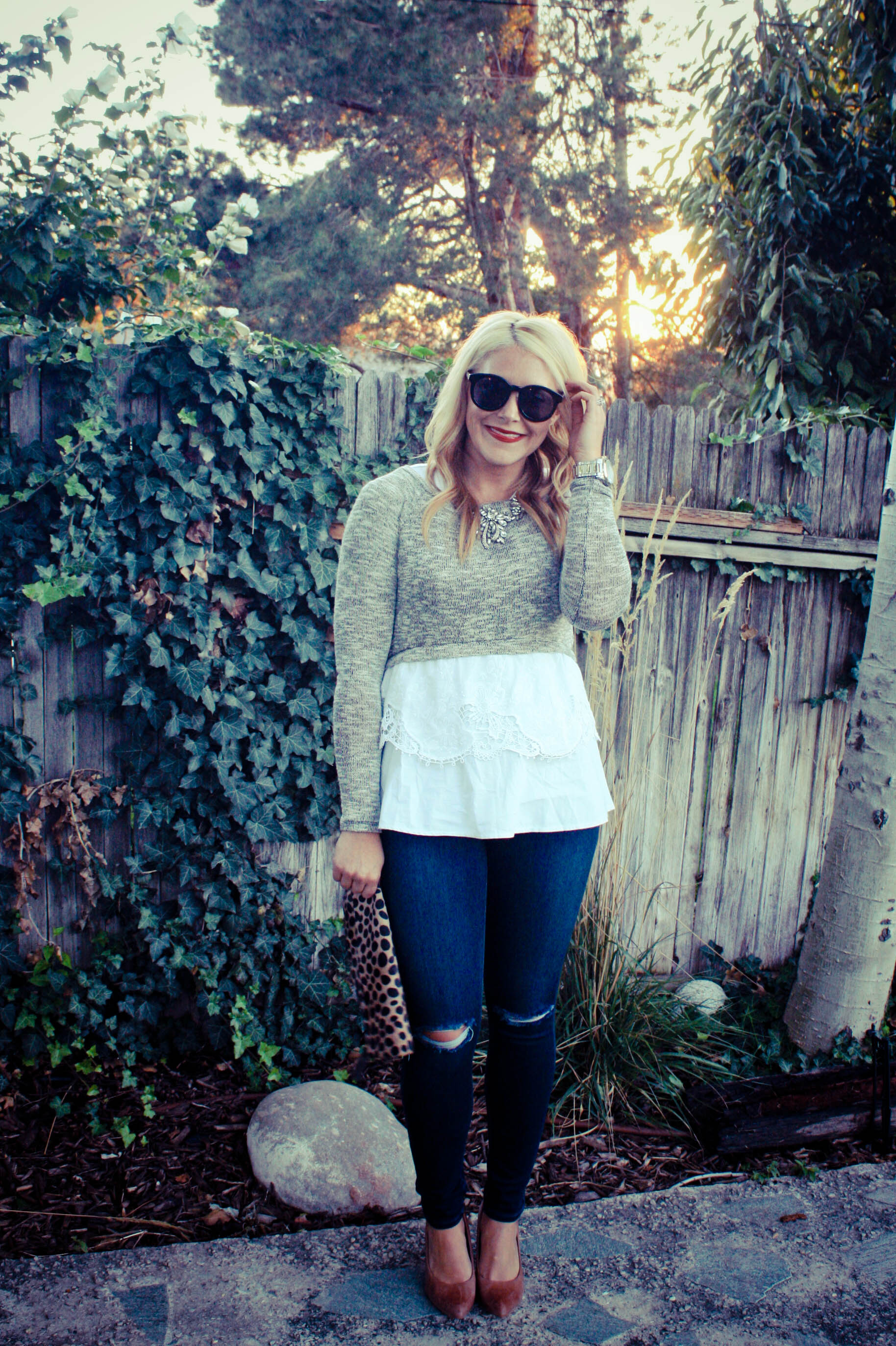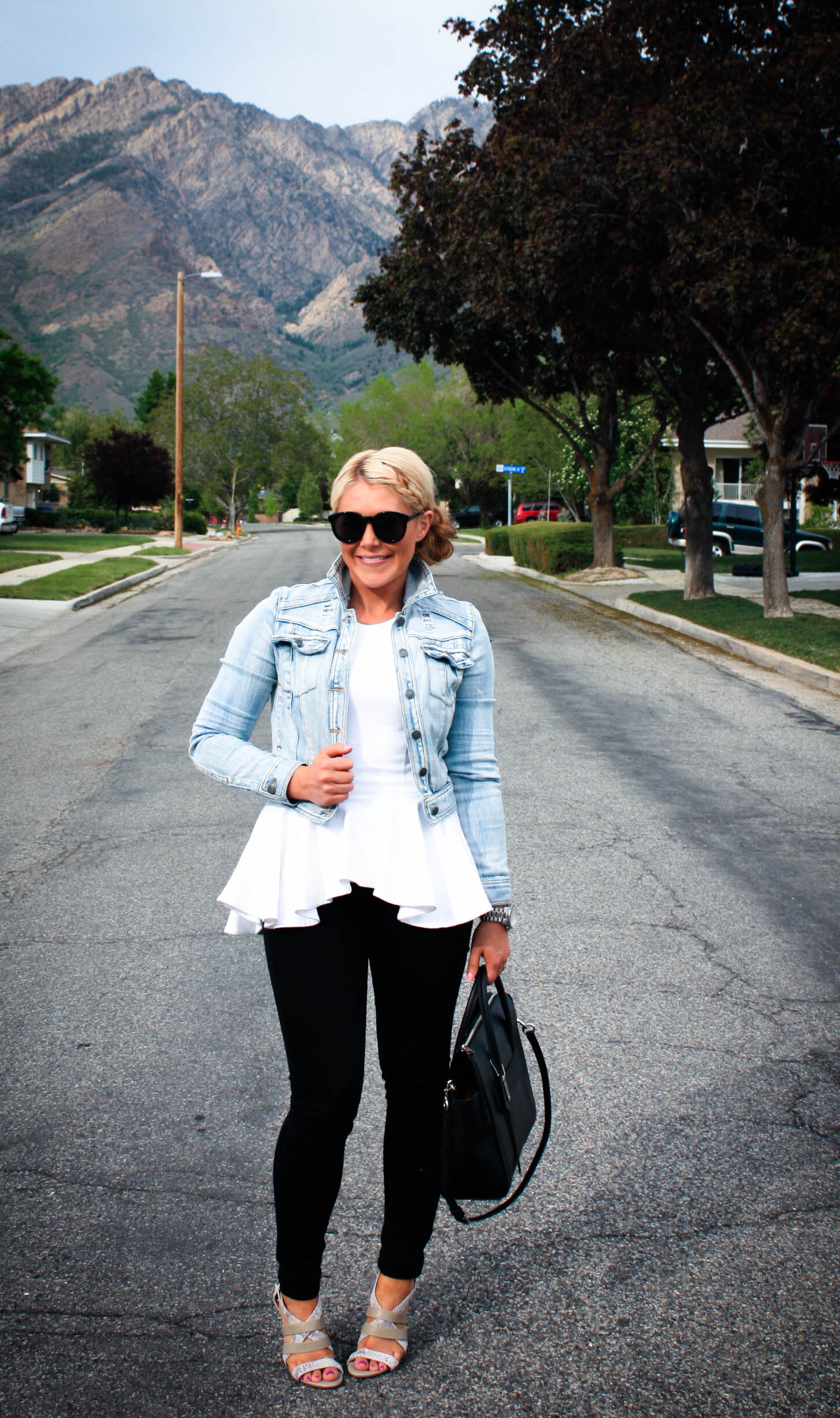 I love finding fashion inspiration on Pinterest and Instagram. And that is precisely where I stumbled upon the jacket and peplum top that I’m wearing in this post. Both were at the top of my shopping list this fall, and while I didn’t anticipate wearing them together, I am loving the structure and lines of the jacket back to the flirty and almost futuristic ruffle of the peplum. And while my hubs is a big fan of the jacket, peplum remains one of those styles that he just can’t wrap his head around. I guess we can add it to that list of fashions (along with fur vests and maxi dresses) that men just don’t understand…