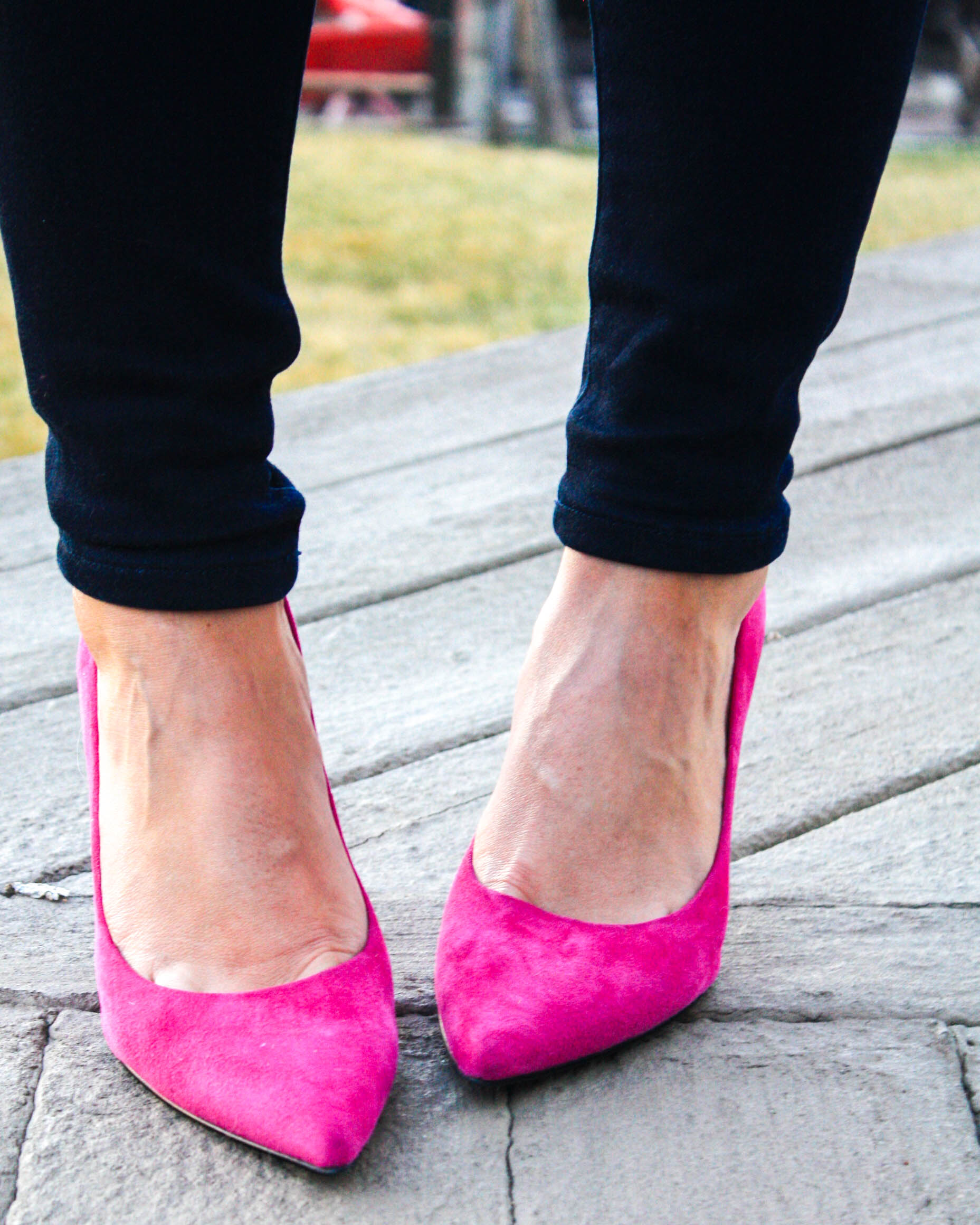 But in the meantime, today I wanted to share with you one of my favorite combinations-camo and hot pink. And while I wouldn’t initially have thought to put this outfit together, I happened to try on this sweater while I was wearing these pants running errands a couple of weekends ago and loved the way they looked together. And once I added pink accessories, I was sold! A perfect and fun go-to outfit for the transitional season between winter and spring!