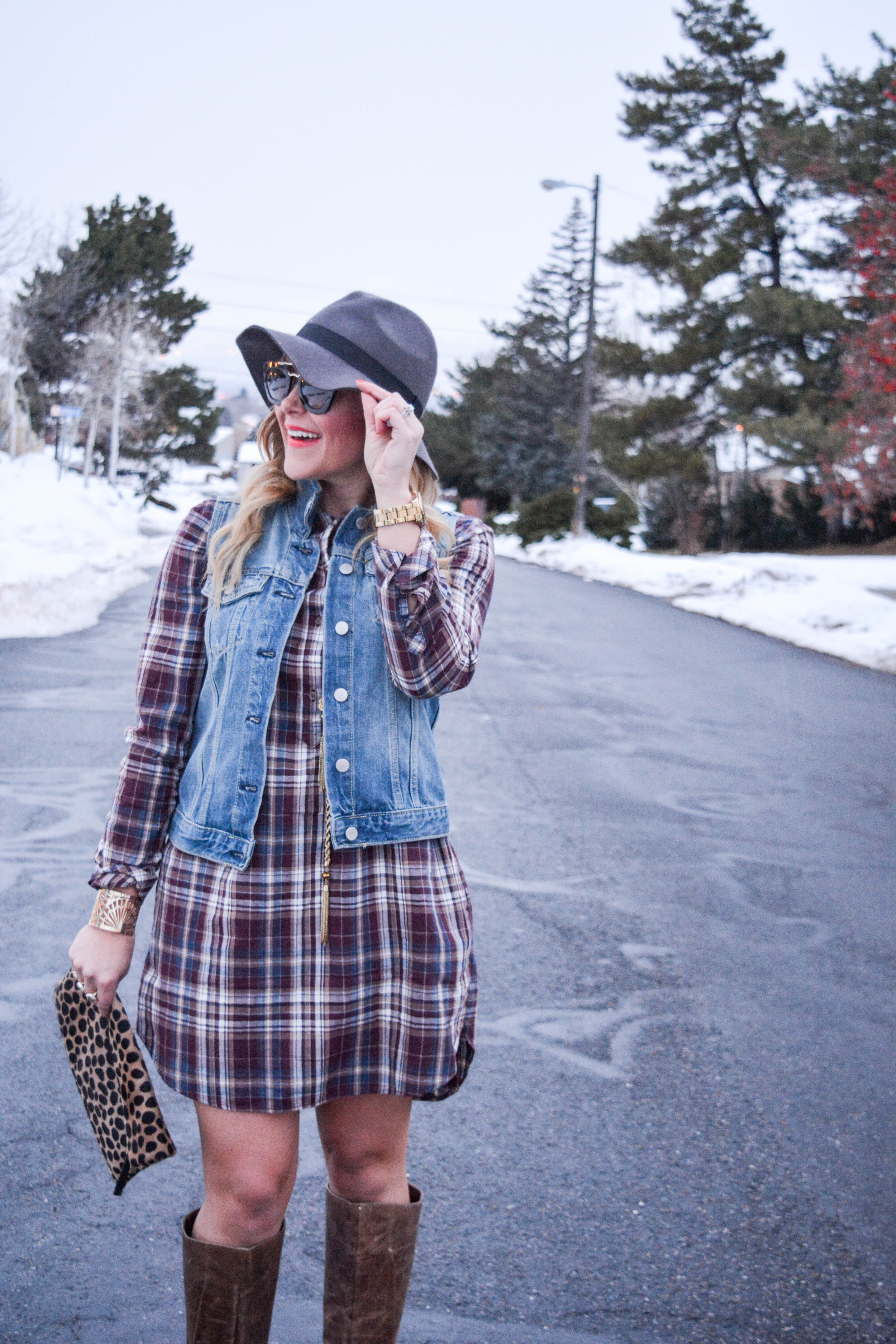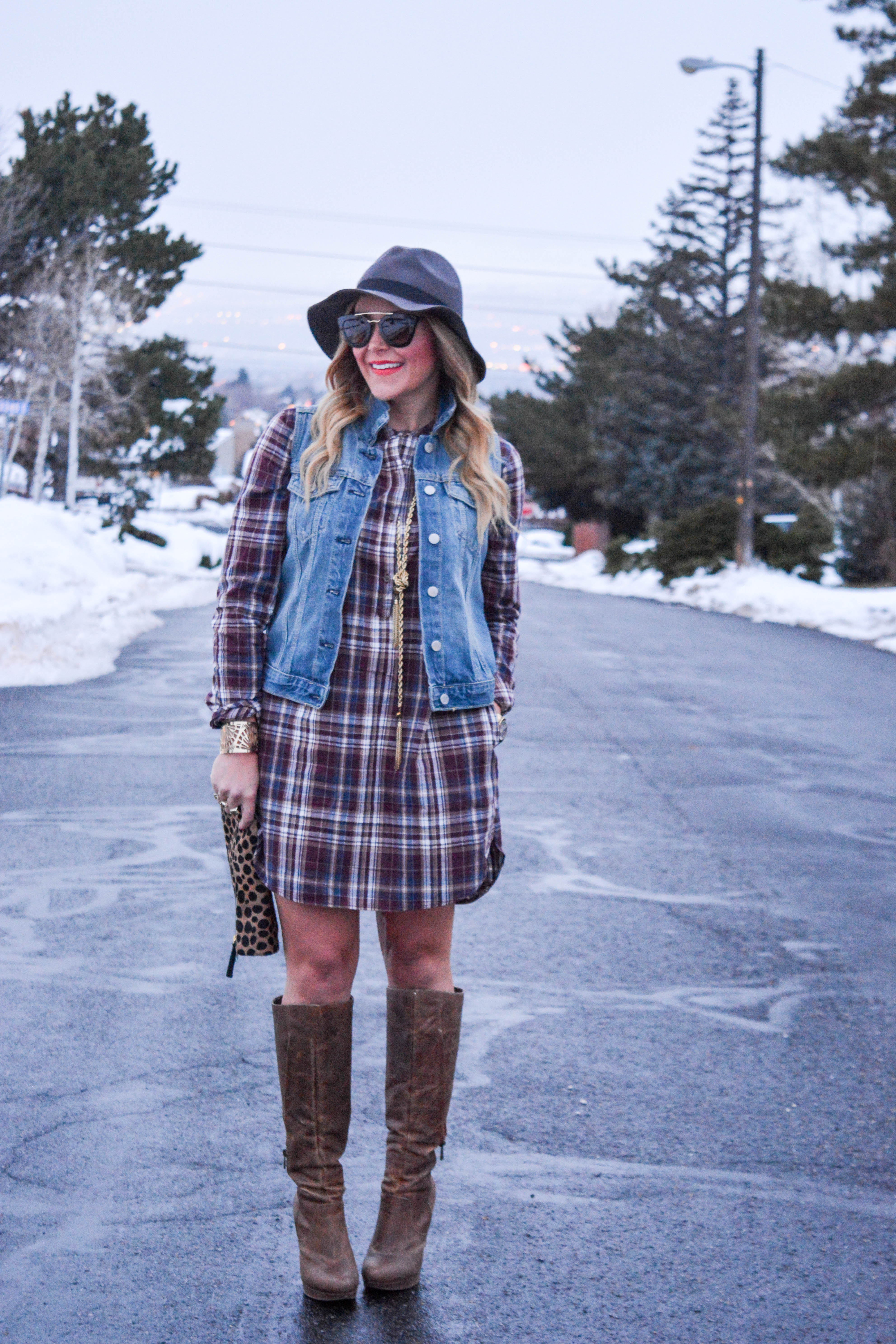 J and I were in Sonoma this past weekend doing a little biking and wine tasting, and even though the temps were unusually hot, the leaves were changing colors and Fall was definitely in the air. So I of course, took full advantage of the opportunity and packed some cute plaid and my favorite booties. And I have to tell you guys, wearing dresses with booties is my very favorite kind of outfit right now. And if you are anything like me, it is the perfect transitional combination while the temps are still warm but you’re craving Fall fashion…