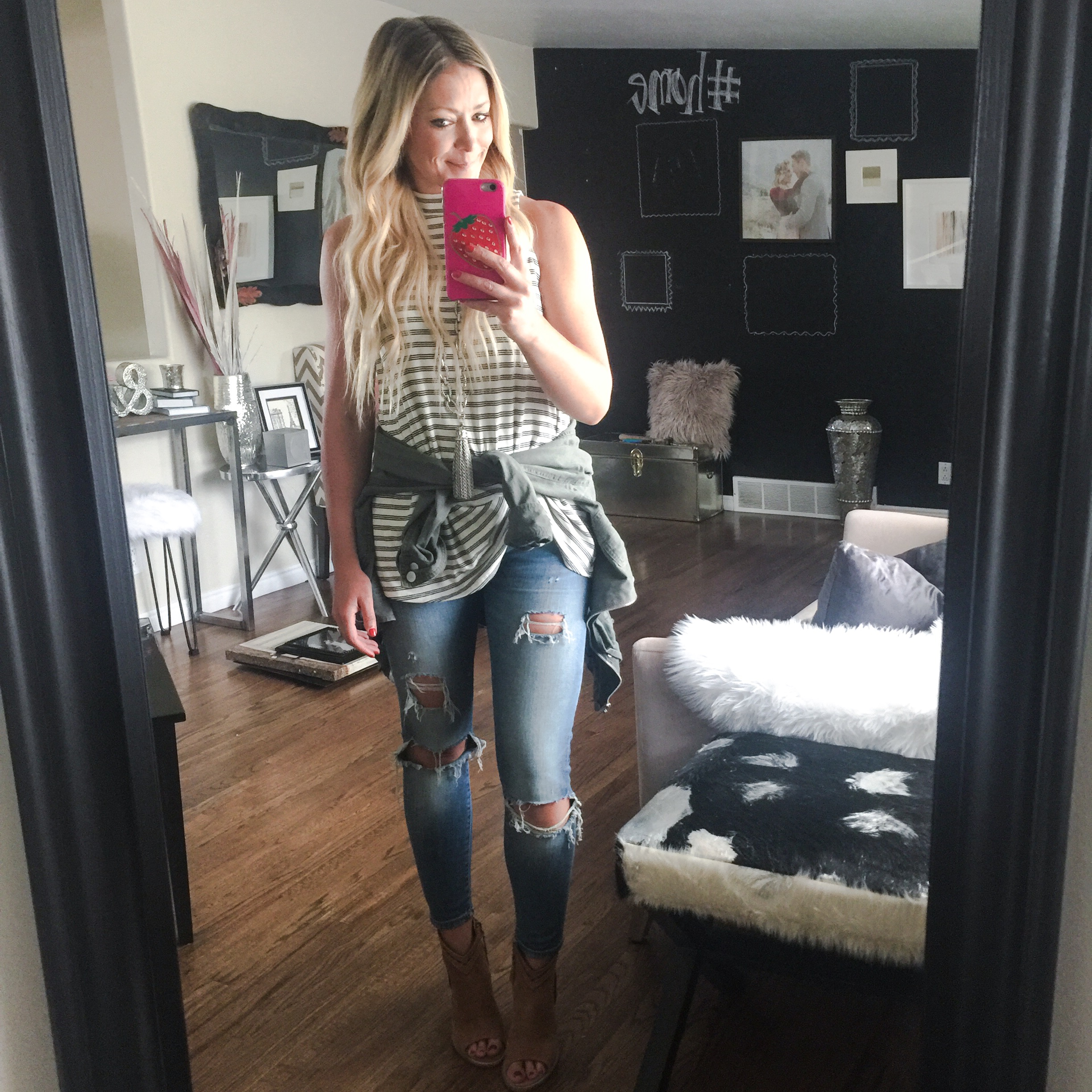 As if the Fall Cabi line couldn’t get any cuter, now they’ve gone and launched new arrivals. And guys, they are SO good! When I got to have a sneak peek at what was coming in the new launch a few weeks ago, this plaid jacket was the first thing I knew I needed to have in my wardrobe. And it’s even cuter in person. Plus it’s such an easy piece to style now AND take into cooler temps (and the holiday season!). Today I paired it with my favorite band tee and OTK boots, but it would also look amazing with a dress, or over a cozy sweater with Sorels when the snow starts flying.