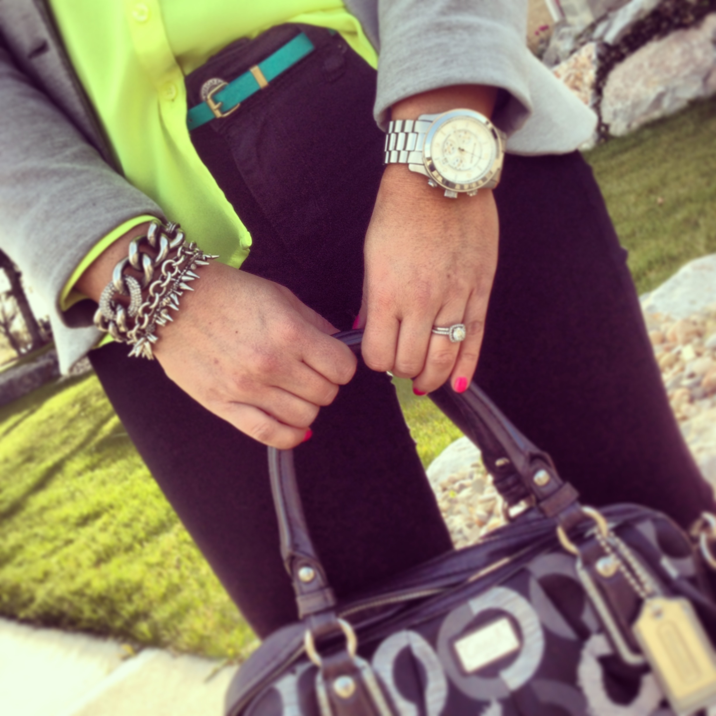 Top: JCrew | Joggers: Rachel Roy (sold out), love these and these | Earrings: Kendra Scott | Sunnies: Karen Walker | Bag: Tory Burch (sold out), wishing for this