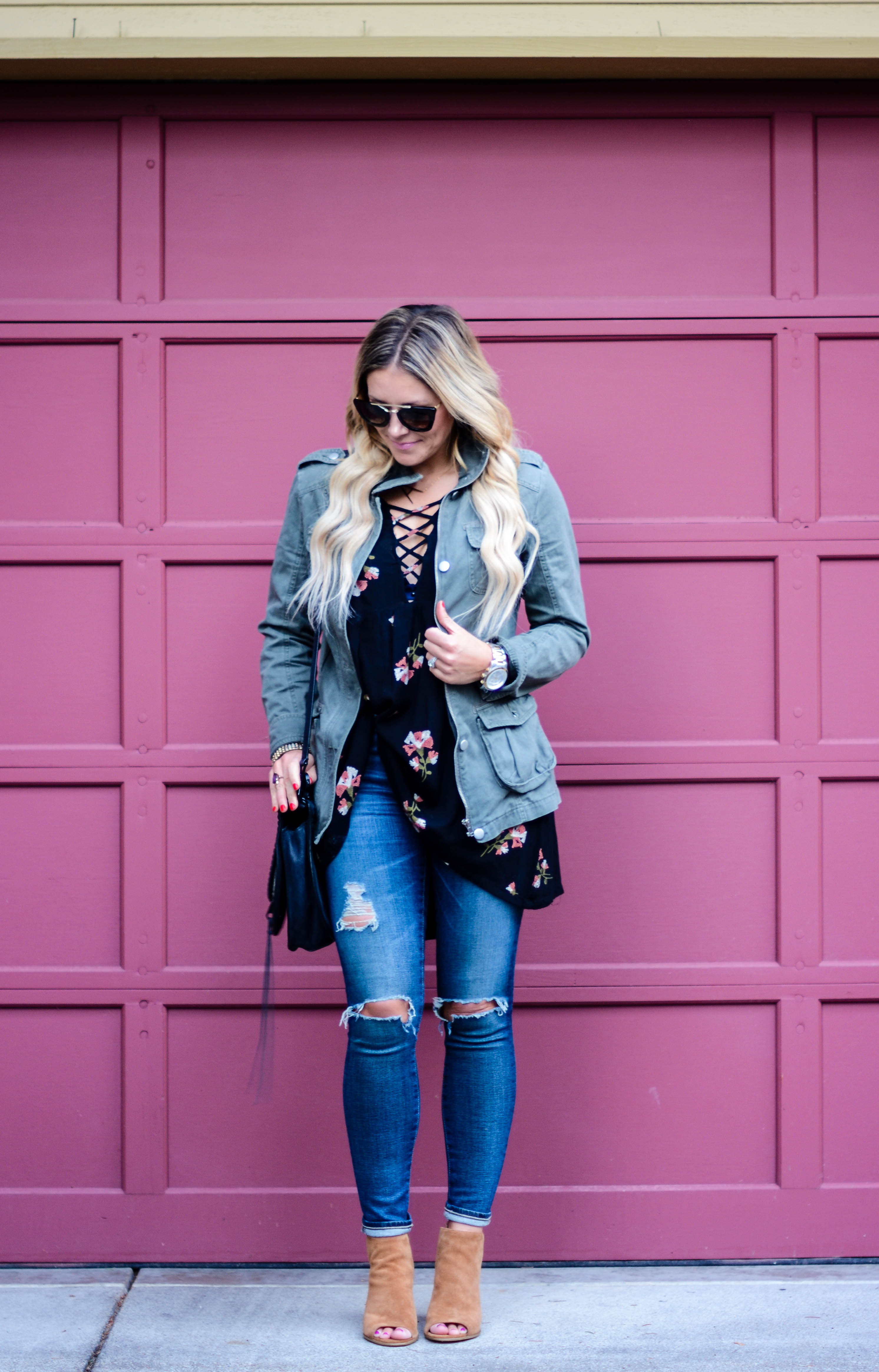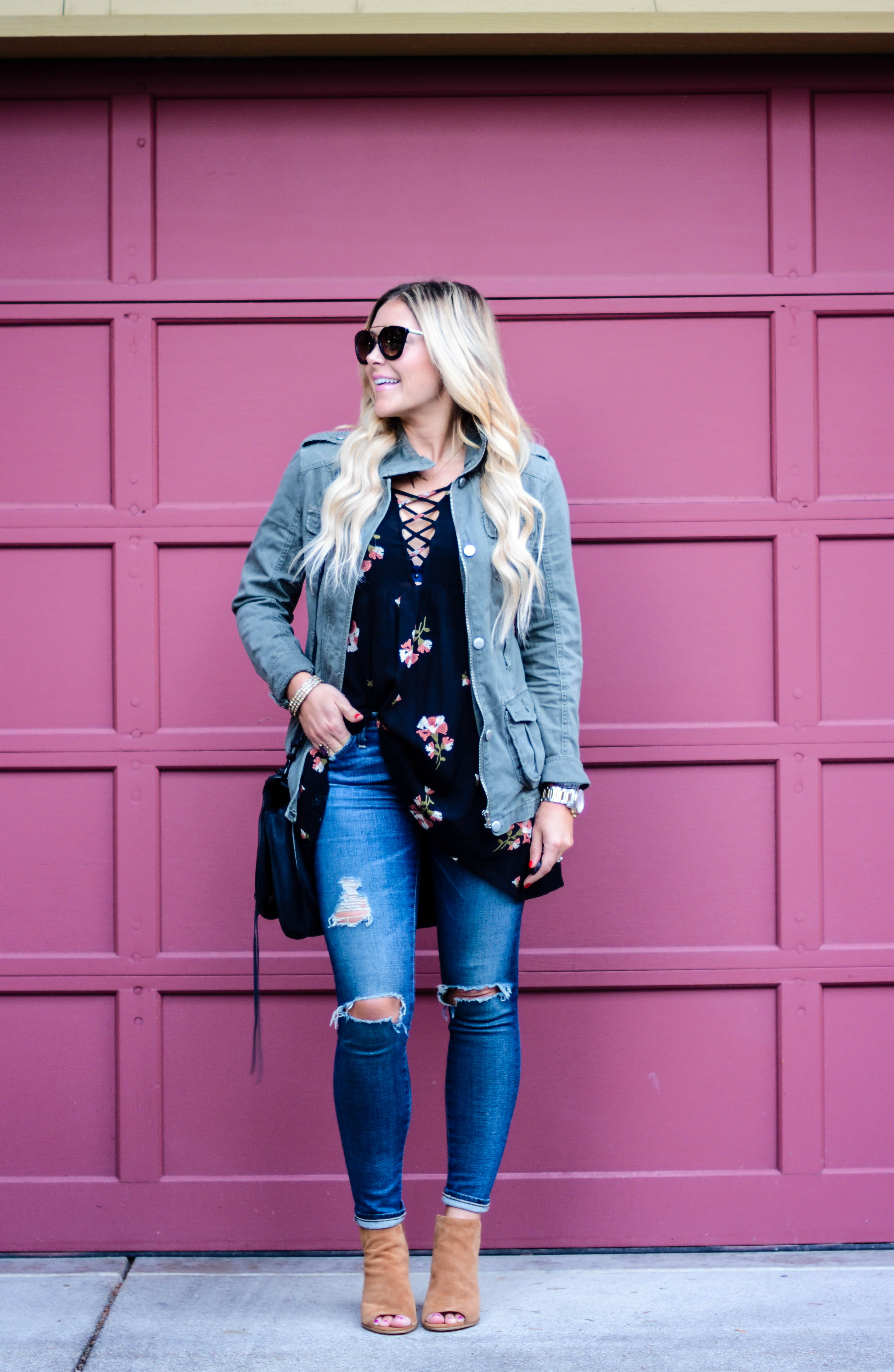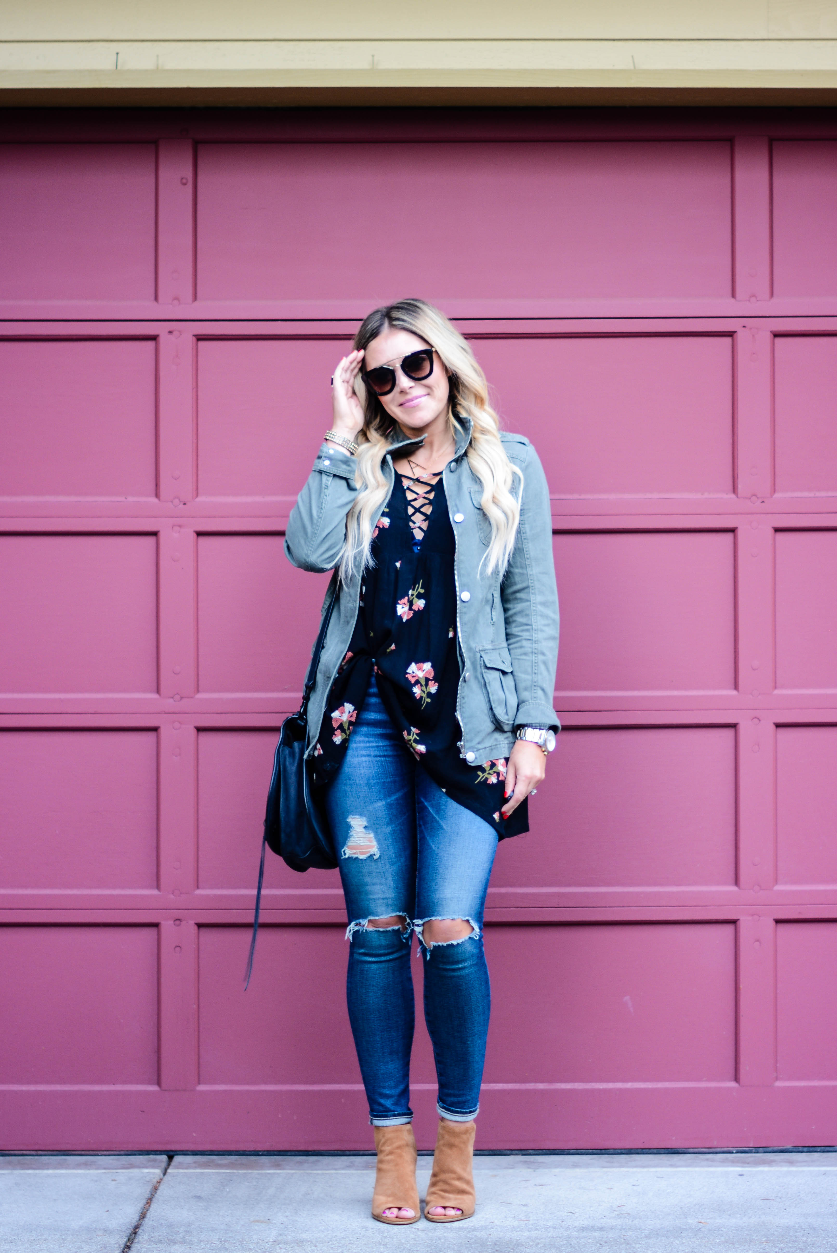 Dress: (worn as a top) Revolve | Skinnies: AG | Necklace: Gigglosophy | Bag: Rebecca Minkoff | Sunnies: Prada c/o Ditto (try them for free for one month with code: ALLDOLLEDUPBLOG at checkout) | Booties: Steve Madden, similar, similar