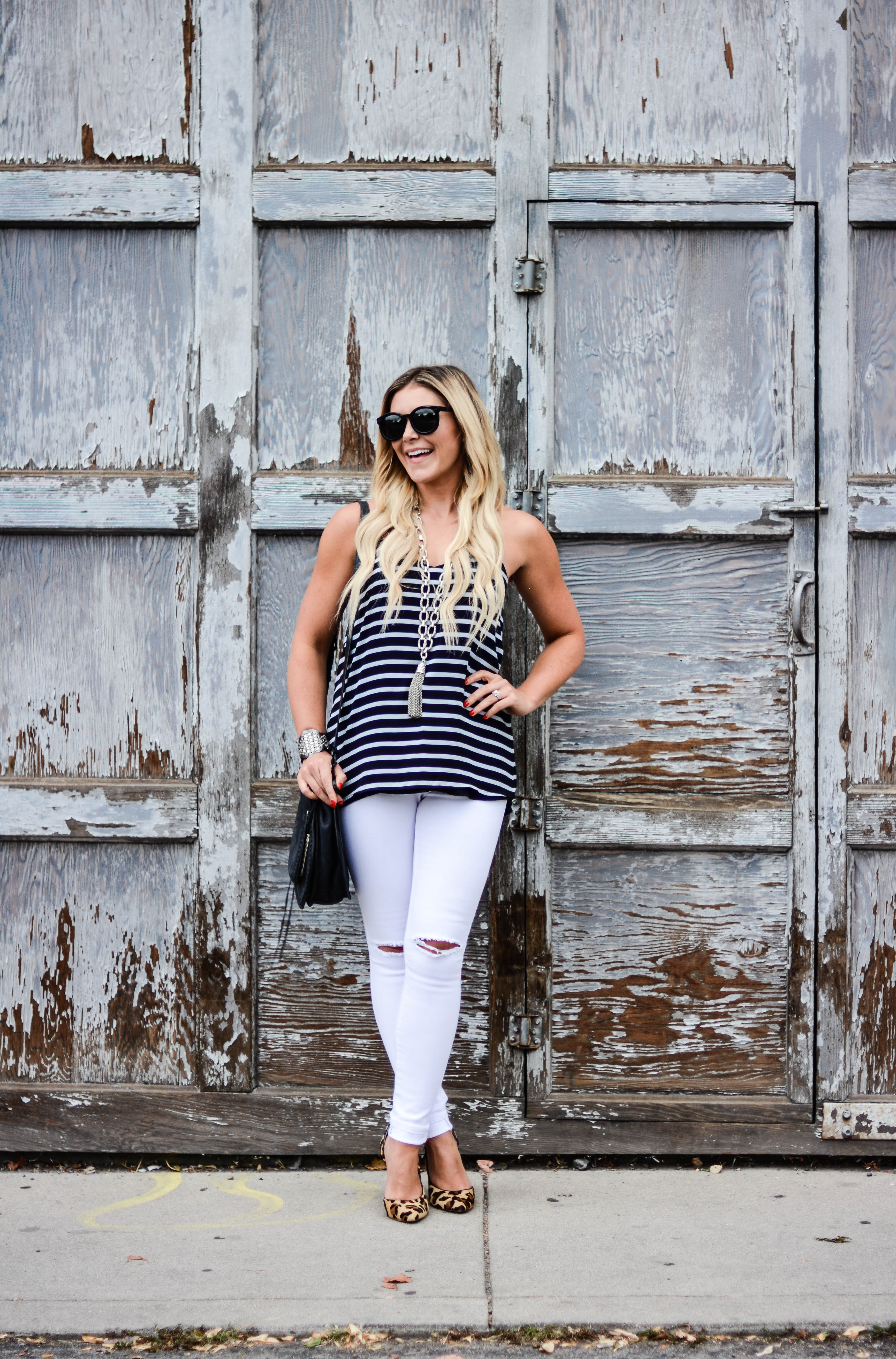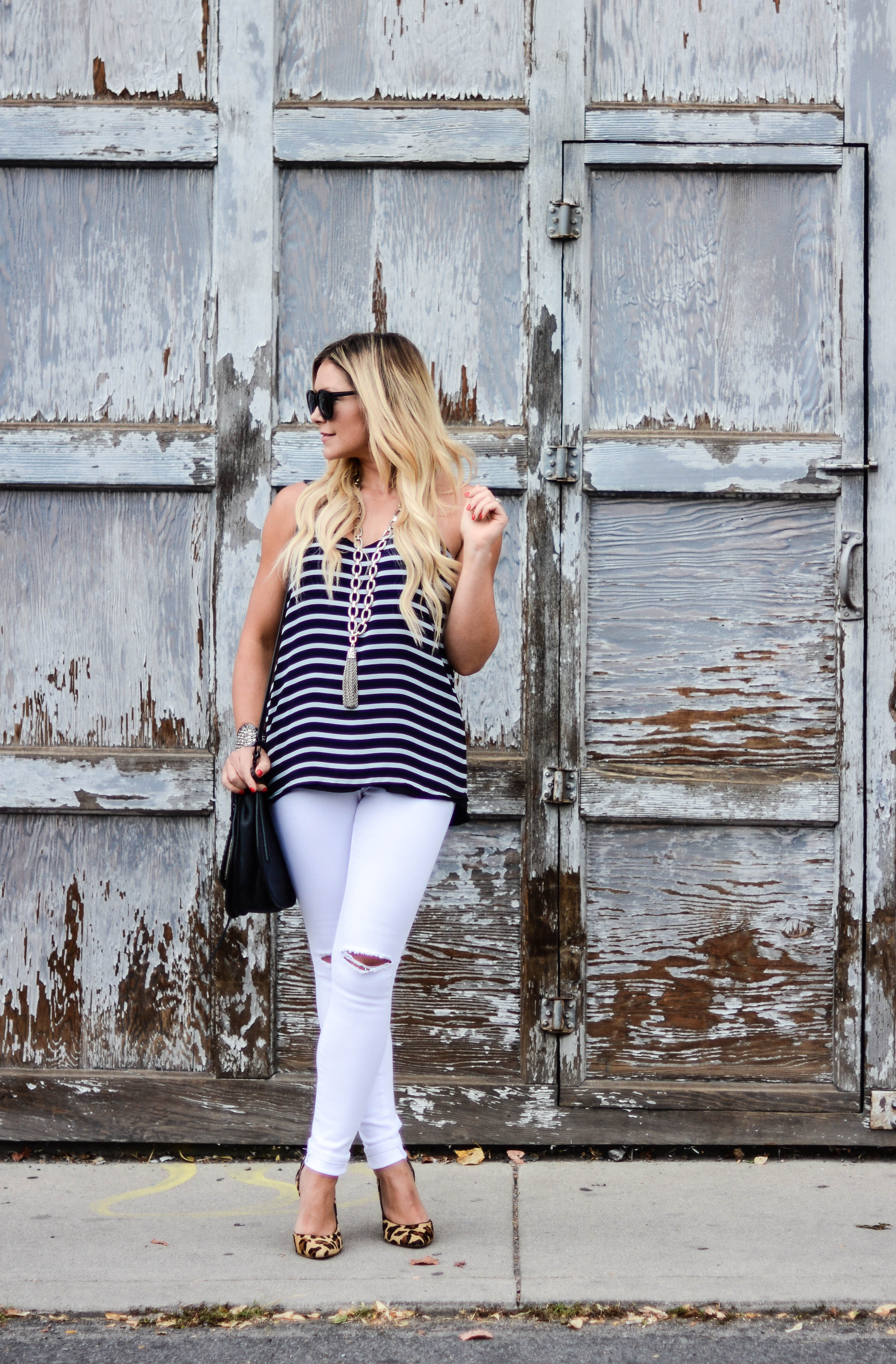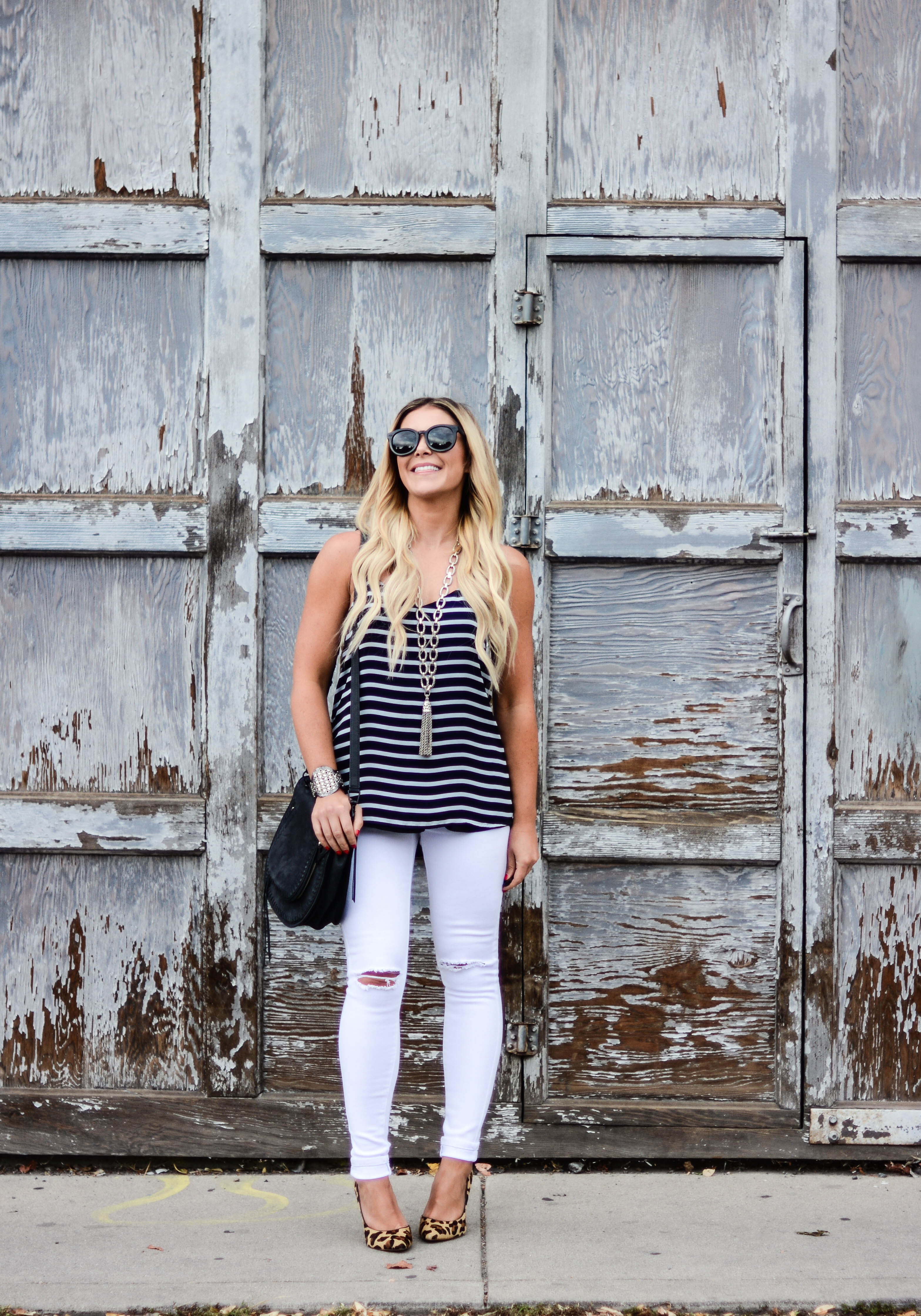 Dress: (worn as a top) Revolve | Skinnies: AG | Necklace: Gigglosophy | Bag: Rebecca Minkoff | Sunnies: Prada c/o Ditto (try them for free for one month with code: ALLDOLLEDUPBLOG at checkout) | Booties: Steve Madden, similar, similar