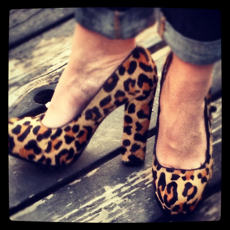I LOVE animal prints (and when I say love, I mean LOVE). As I have talked about in previous posts, they can be a great neutral due to their grounding colors, but because they are a print, they also have the ability to create an element of interest and creativity. As a matter of fact, I use them frequently in both home decor and in fashion. But the print that has really drawn me in as of late is leopard-and even more specifically, leopard shoes. I have actually collected a small assortment of them over the last couple of months, and due to the variation in style and color, I use each pair for different intents and purposes (you can catch a peek of a couple of them in my shoe closet shown here).