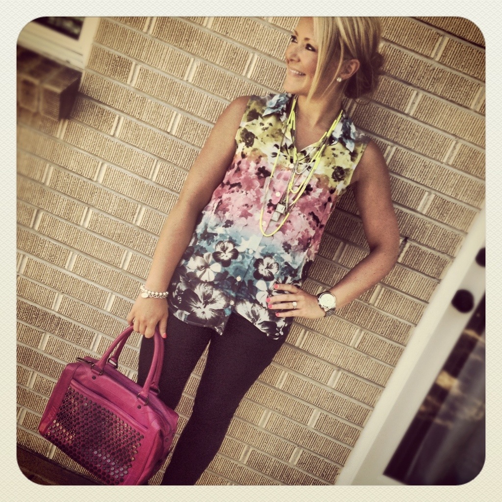 In addition to being pretty, and feminine, and versatile, I also love that this top is a very unique multi-color ombre-essentially it goes with just about everything. So when you are out shopping for prints, try to look for something similar to this top that will not only allow you to be creative, but will also function as an easy piece to accessorize and pair with multiple items in your closet.