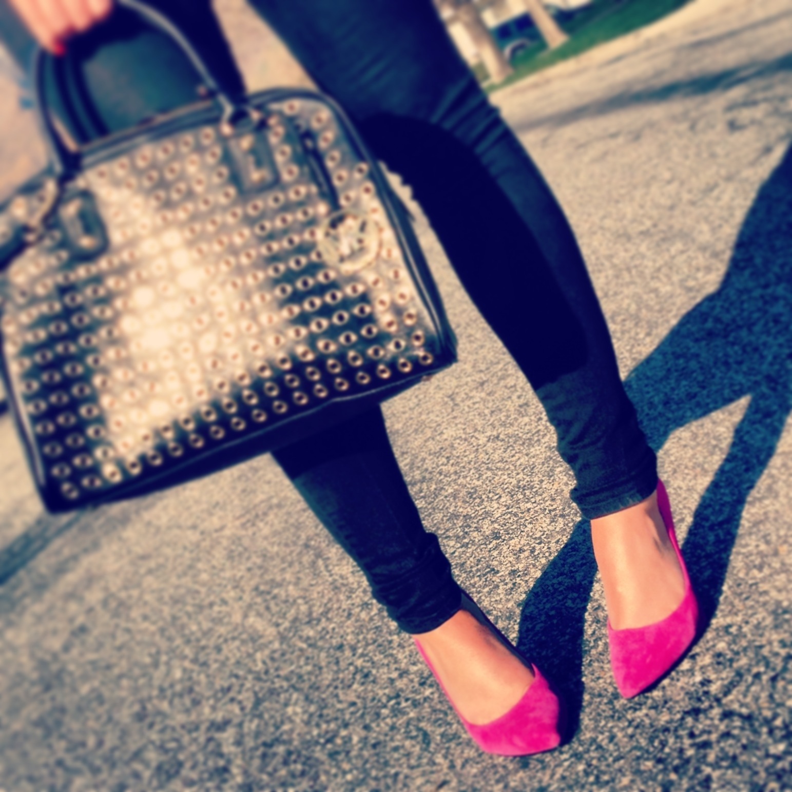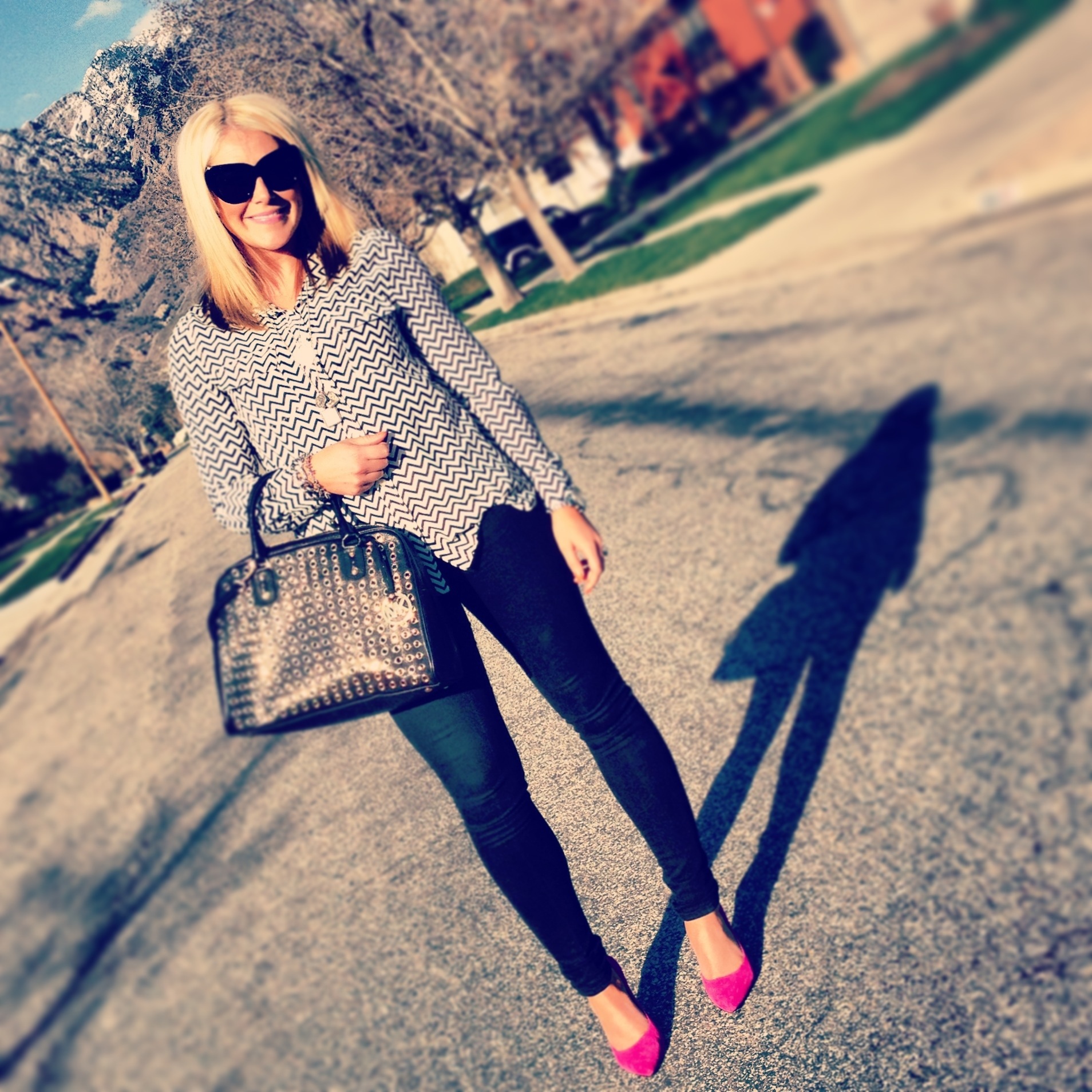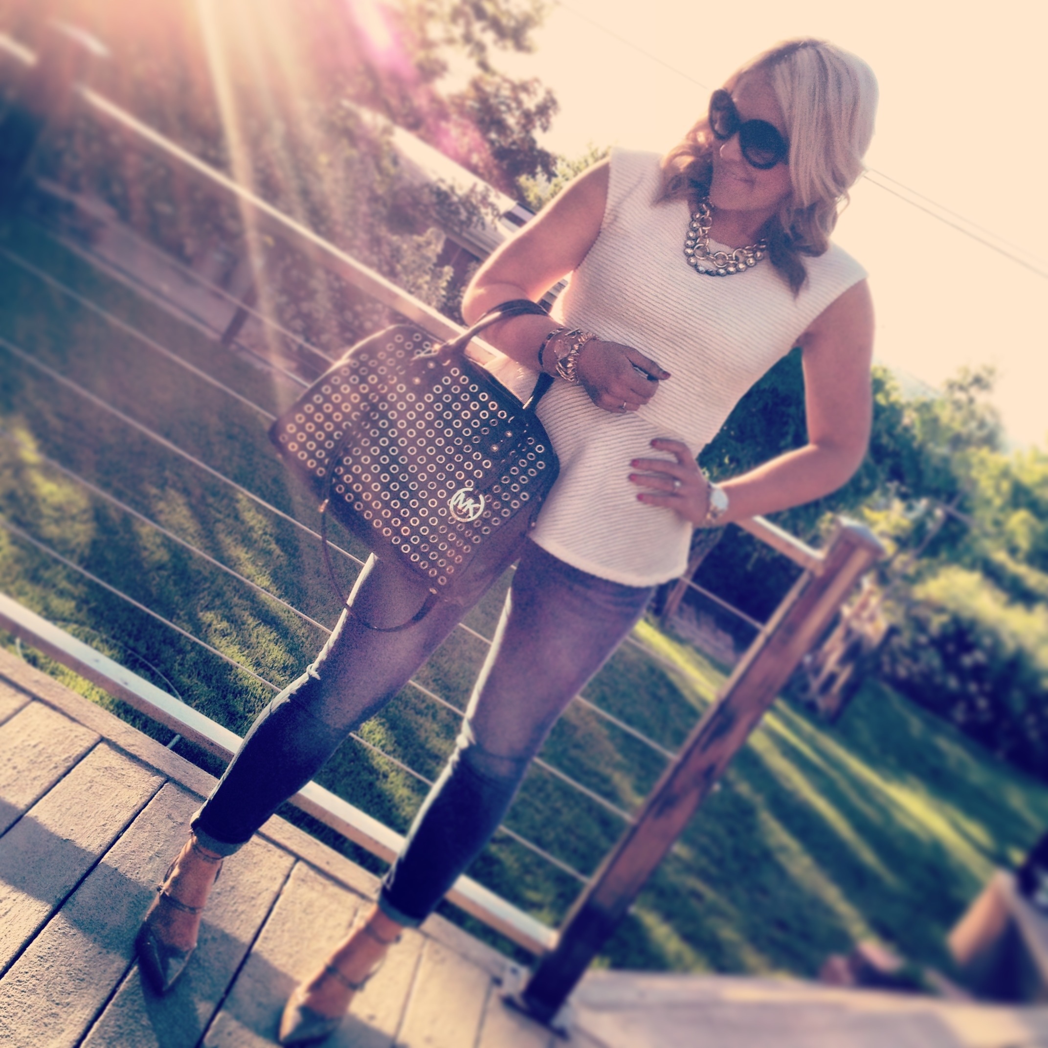 Top: JCrew (on sale!) | Shorts: JCrew (on sale for under $30!) | Necklace: Stella & Dot (last season), similar, similar | Cuffs: Nordstrom, Forever21 (old), similar, LOVE this one | Ring: KiraKira | Sunnies: Karen Walker, similar (under$10!) | Bag: Michael Kors Selma (last season), LOVE this and this (both on sale!) | Heels: Jessica Simpson (soooo comfy and they’re on sale!)