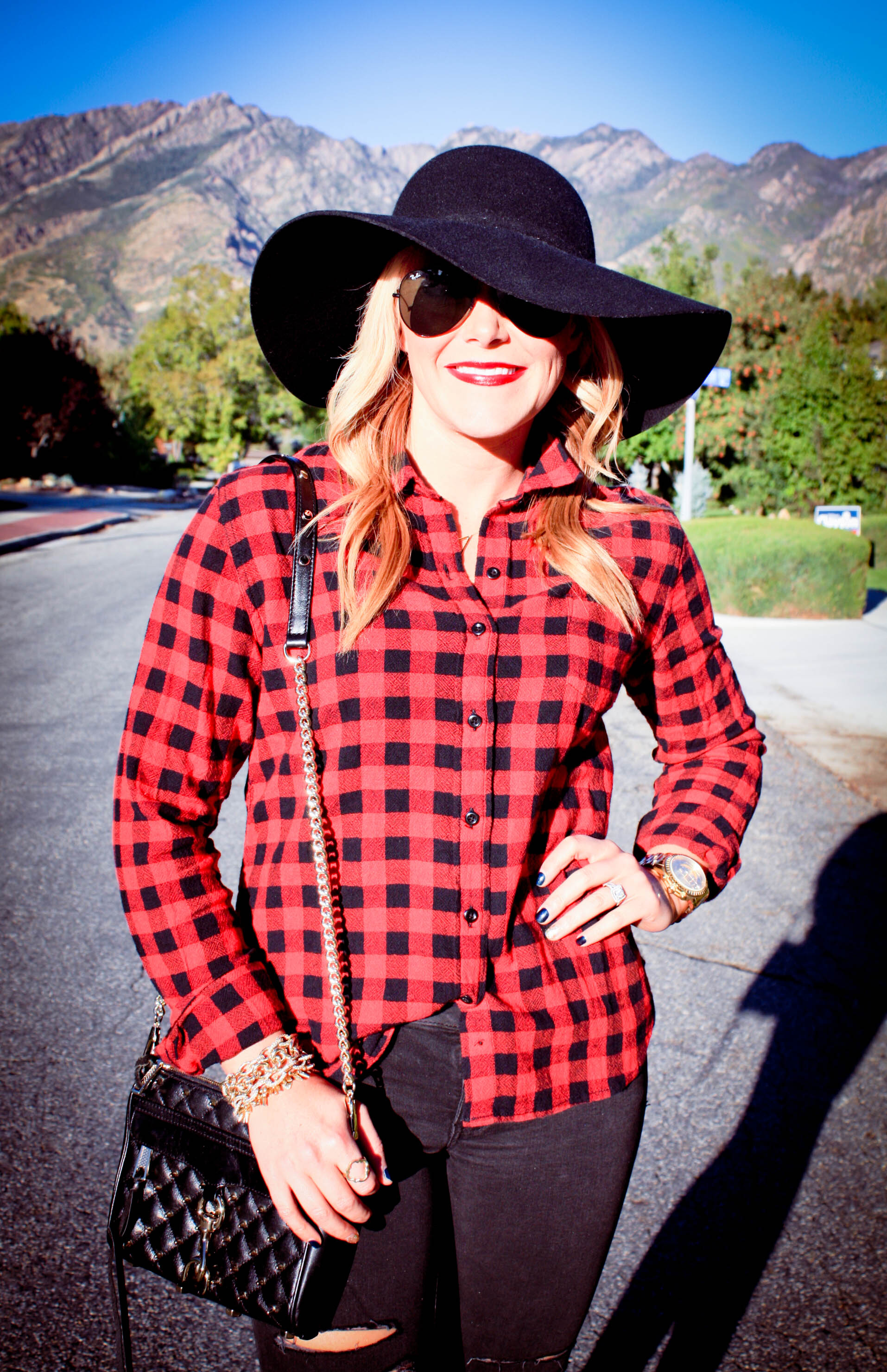 Tee | Flannel | Skinnies | Necklace | Sunnies | Hat | Bag | Booties
